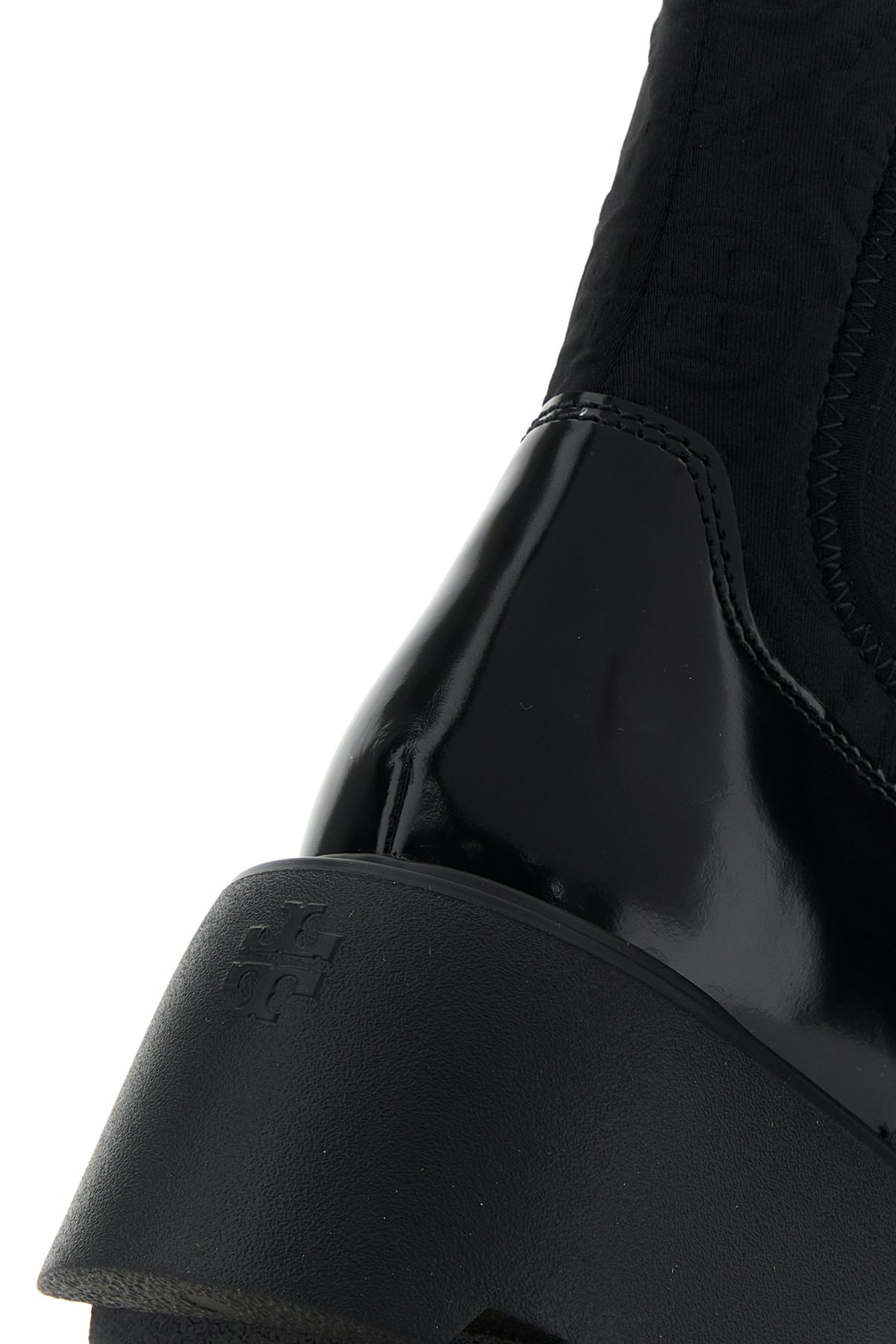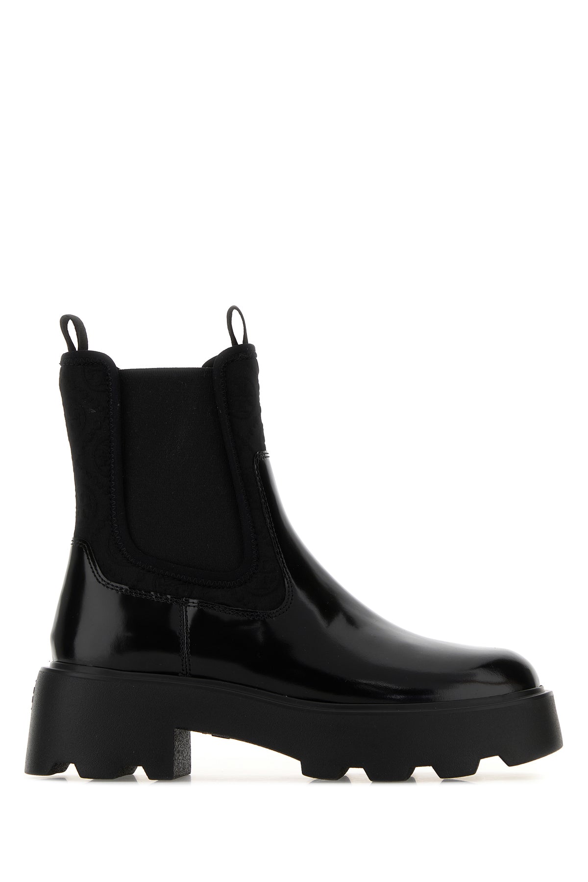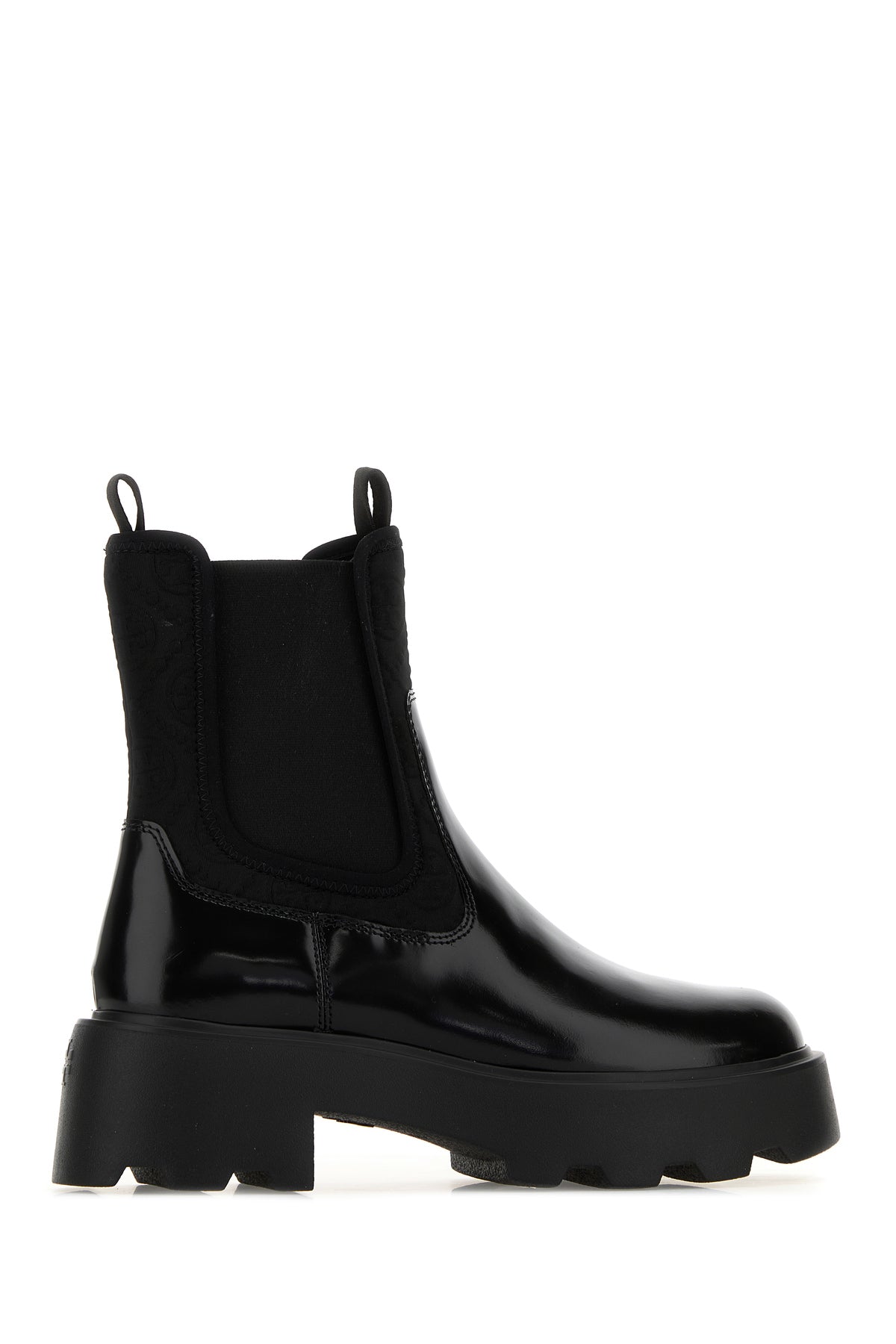 Black leather and fabric Chelsea ankle boots