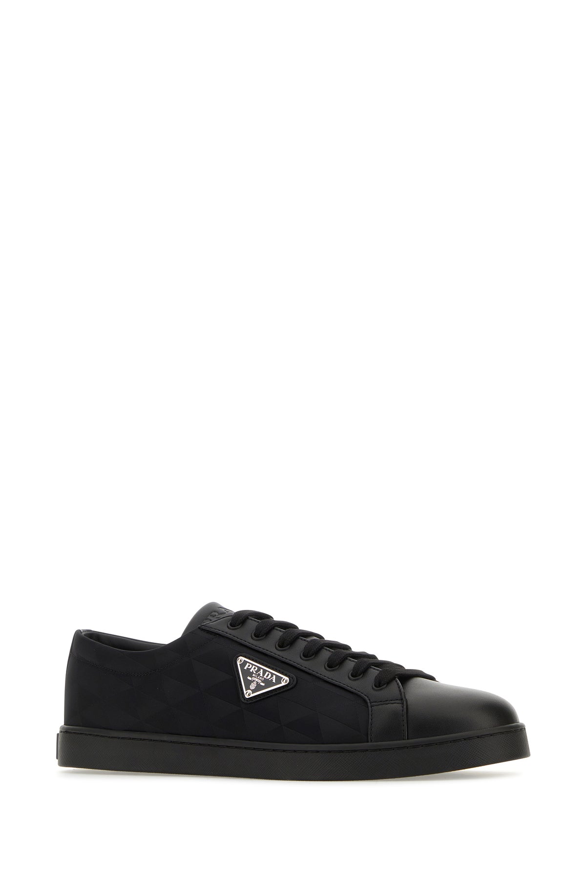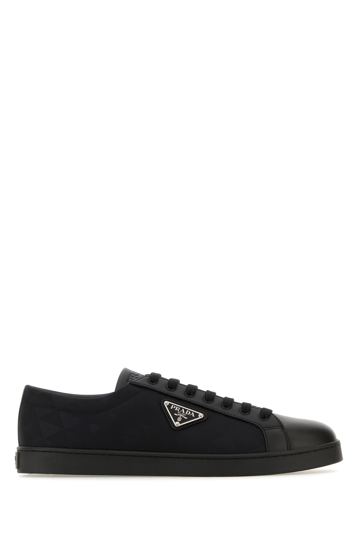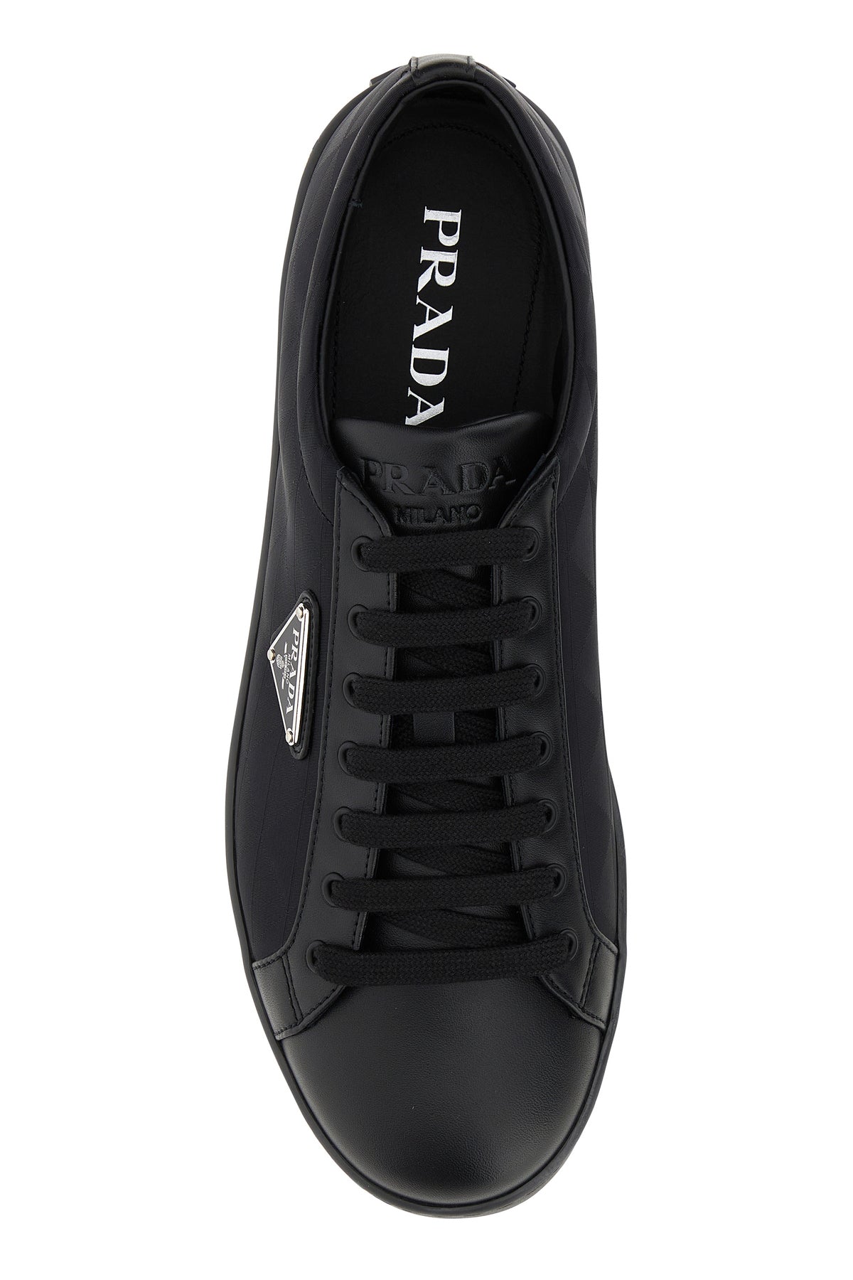 Sneakers realized in leather and Re-Nylon characterized tonal Triangles embroidery enriched by iconic logoed triangle on the side.