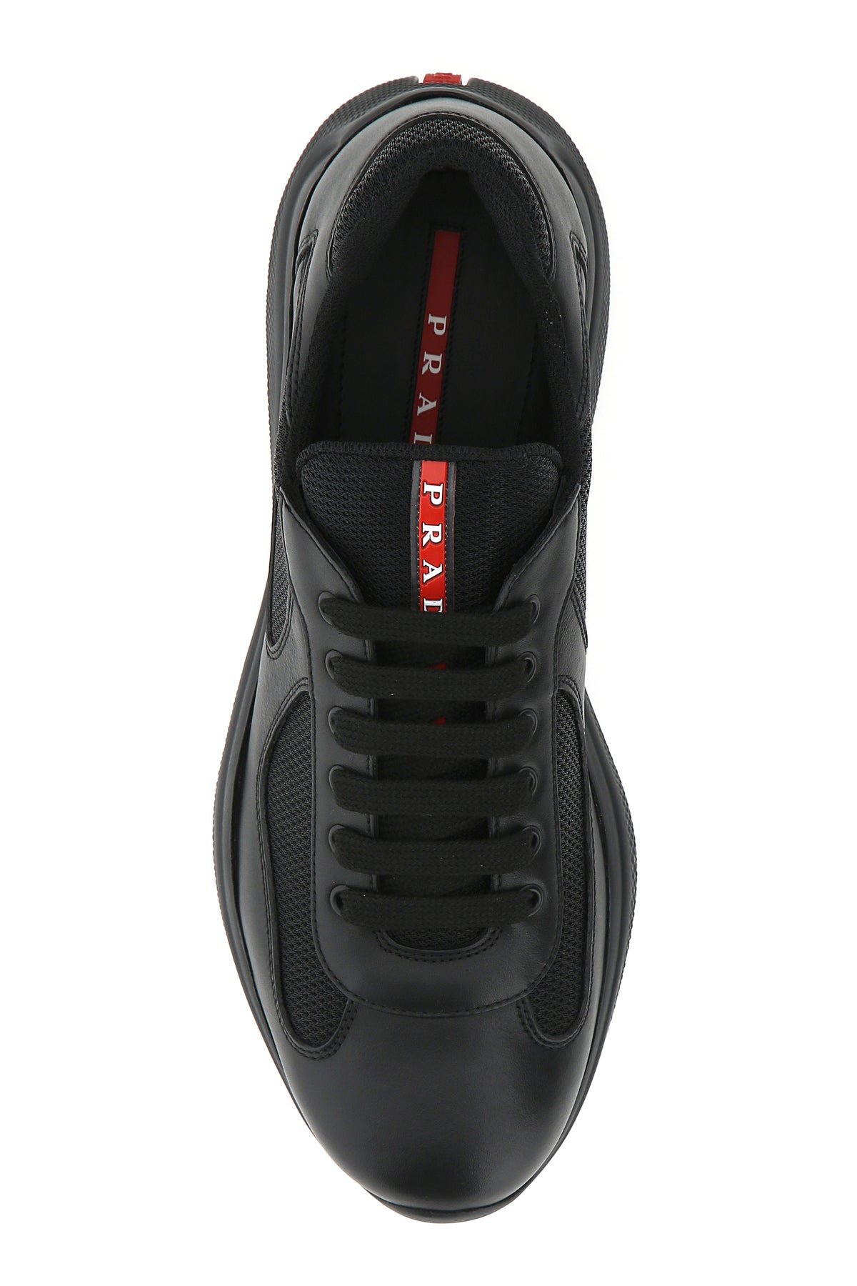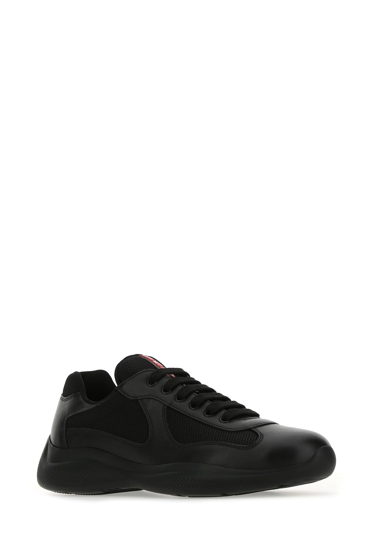 Sneakers realized in opaque-finish smooth leather and tech fabric enriched by rubberized logoed patch on the padded tongue.