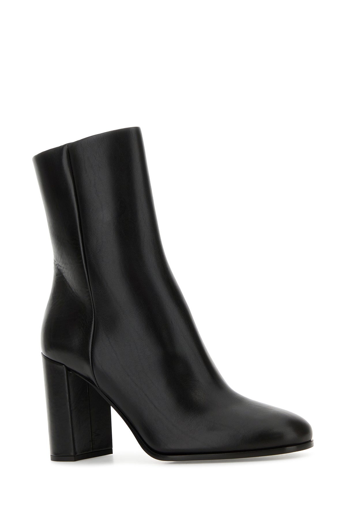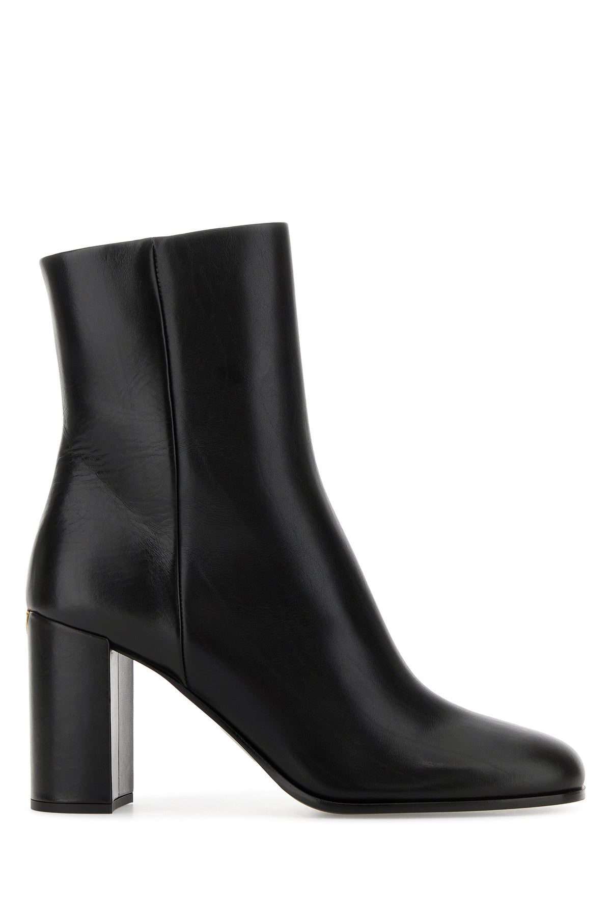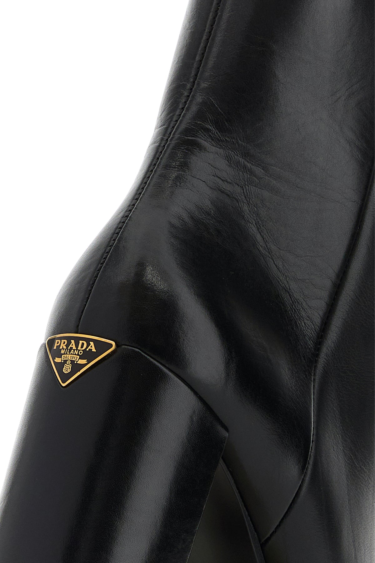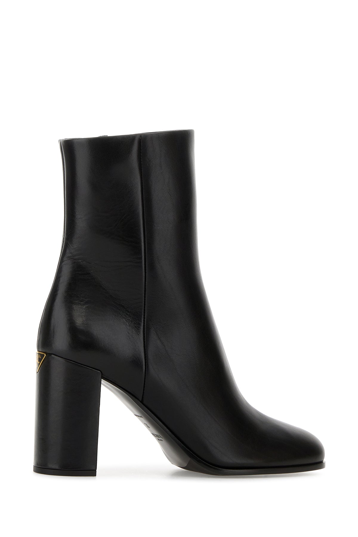 Ankle boots realized in pebble leather enriched by iconic logoed metal triangle at the back.