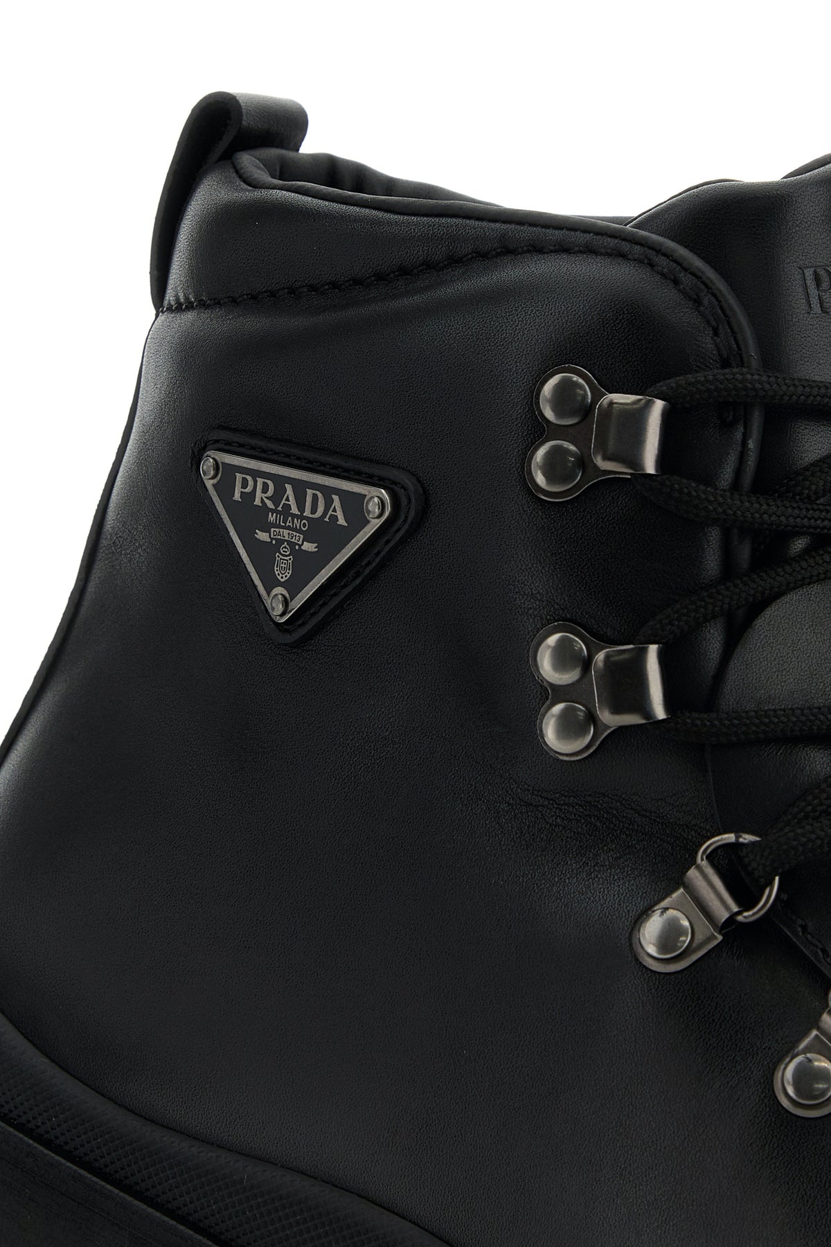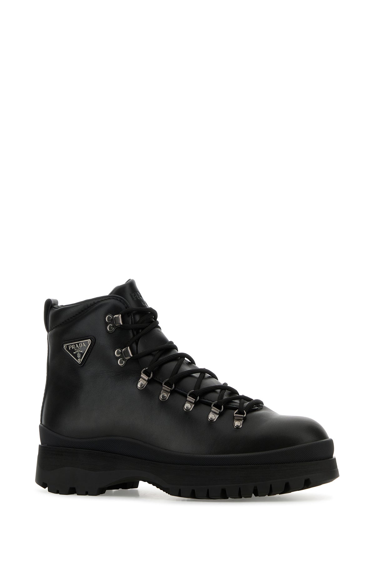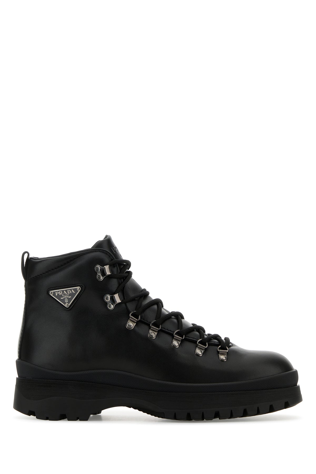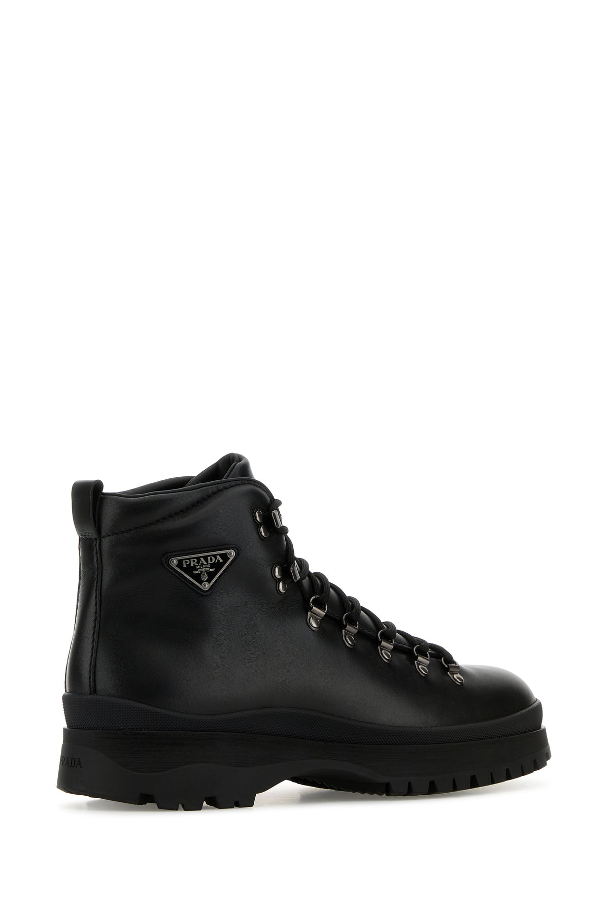 Anke boots realized in pebble calf leather enriched by iconic logoed metal triangle on the side.