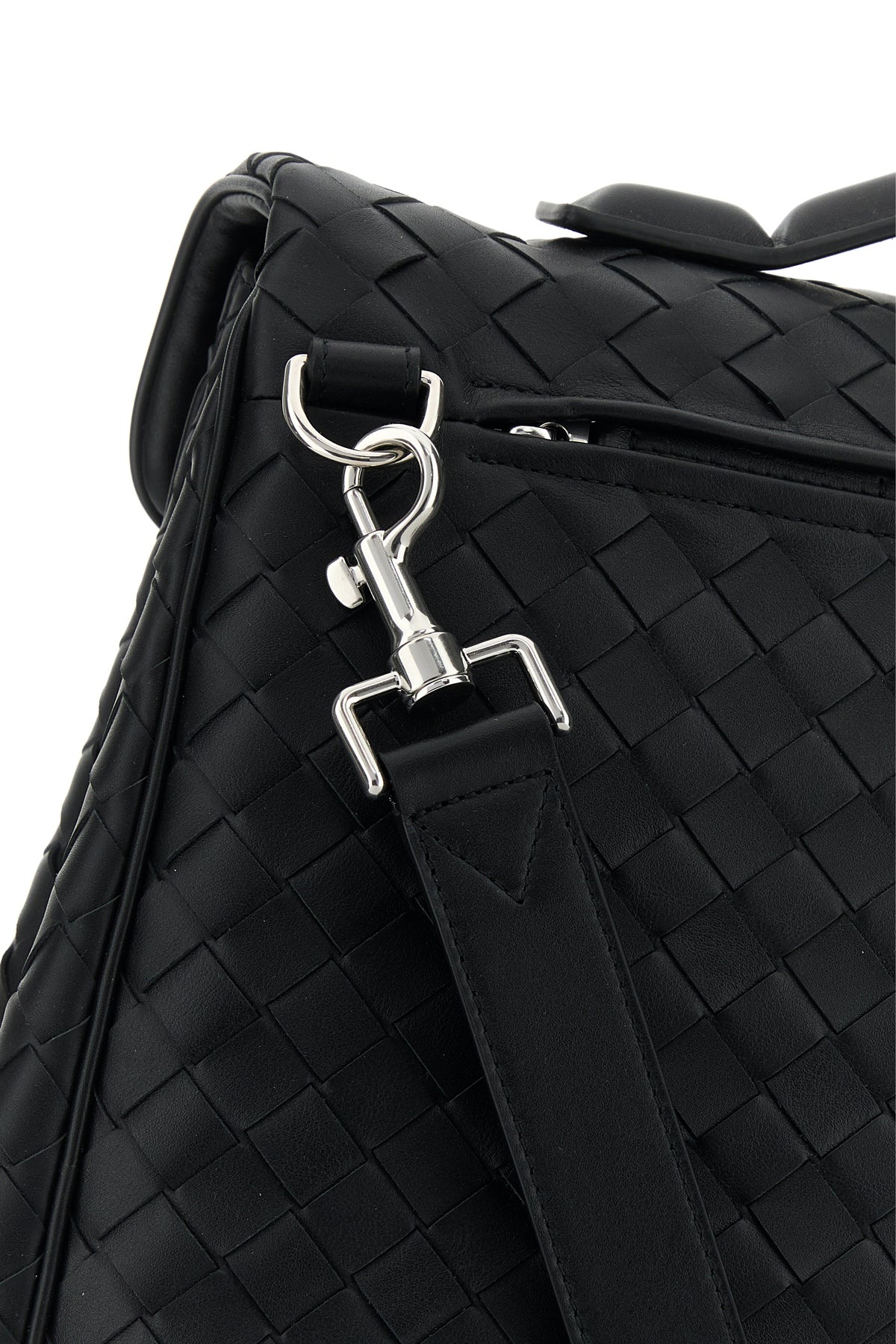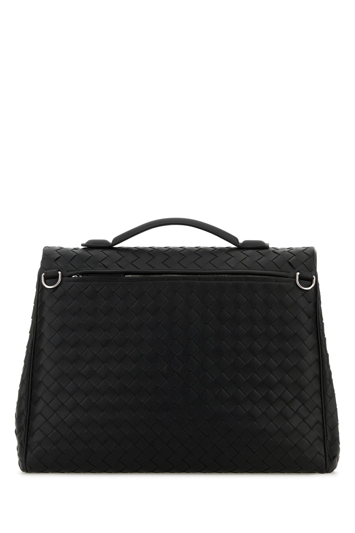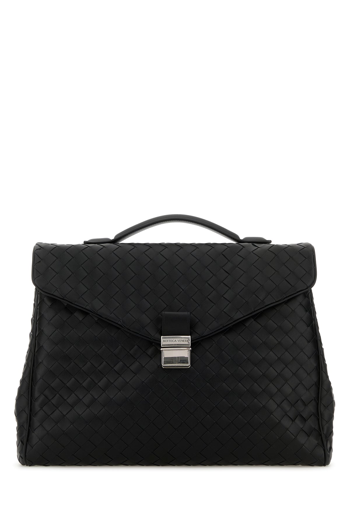 Briefcase realized in calf leather characterized by iconic Intrecciato motif on the entire surface.