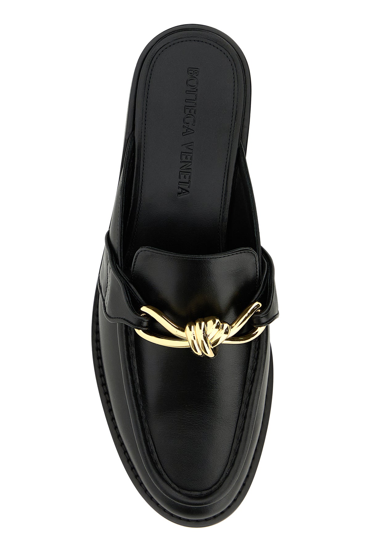 Slippers realized in calf leather enriched by Knot metal detail on the instep.