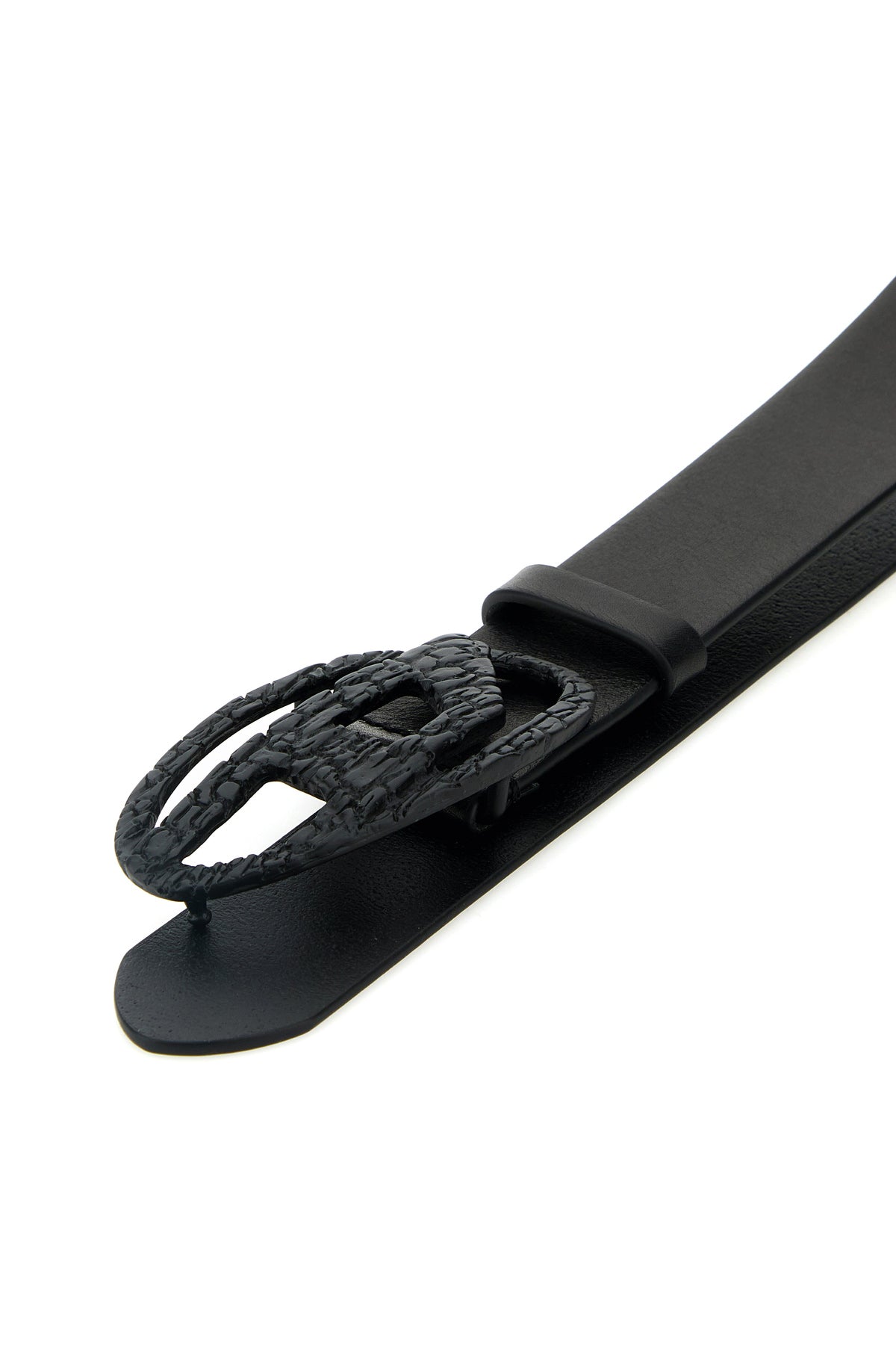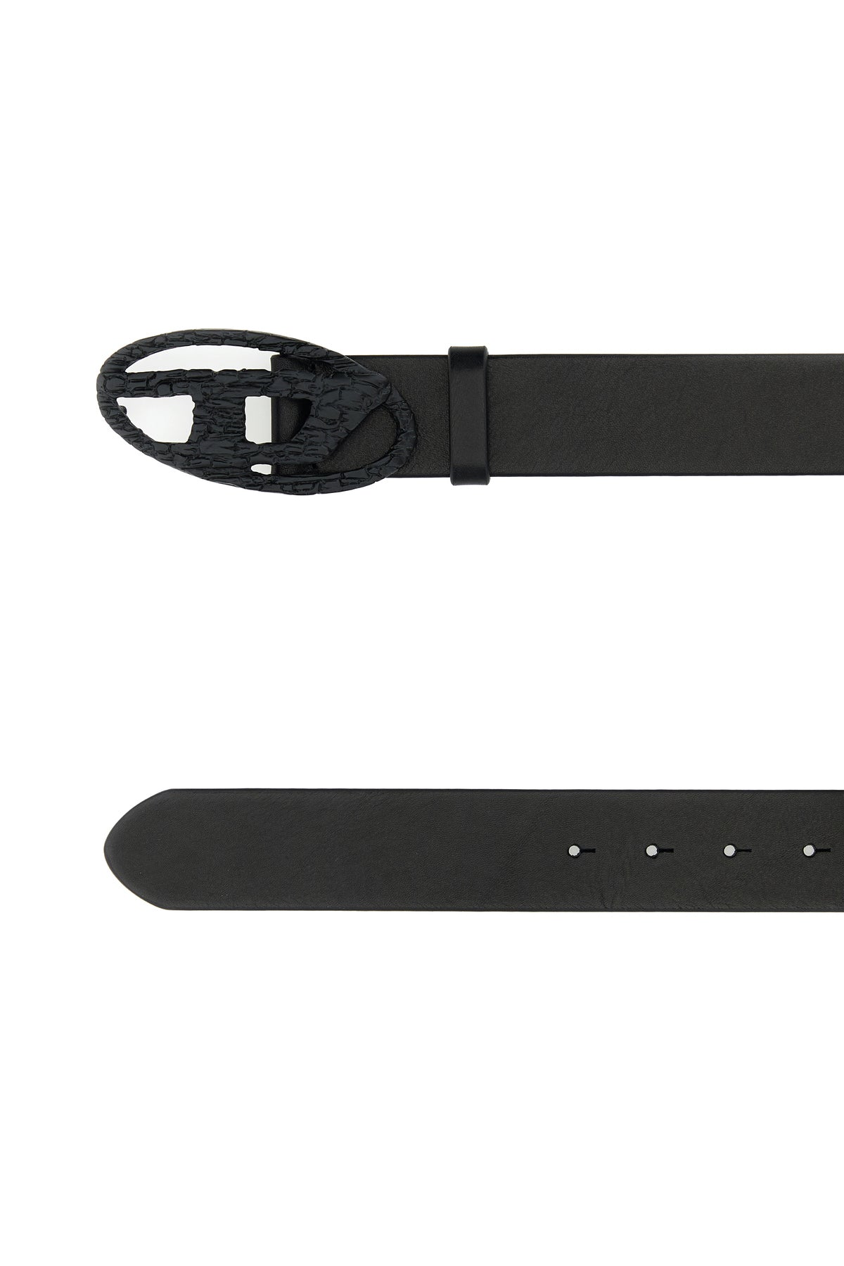 Belt realized in bovine leather enriched by metal D buckle.