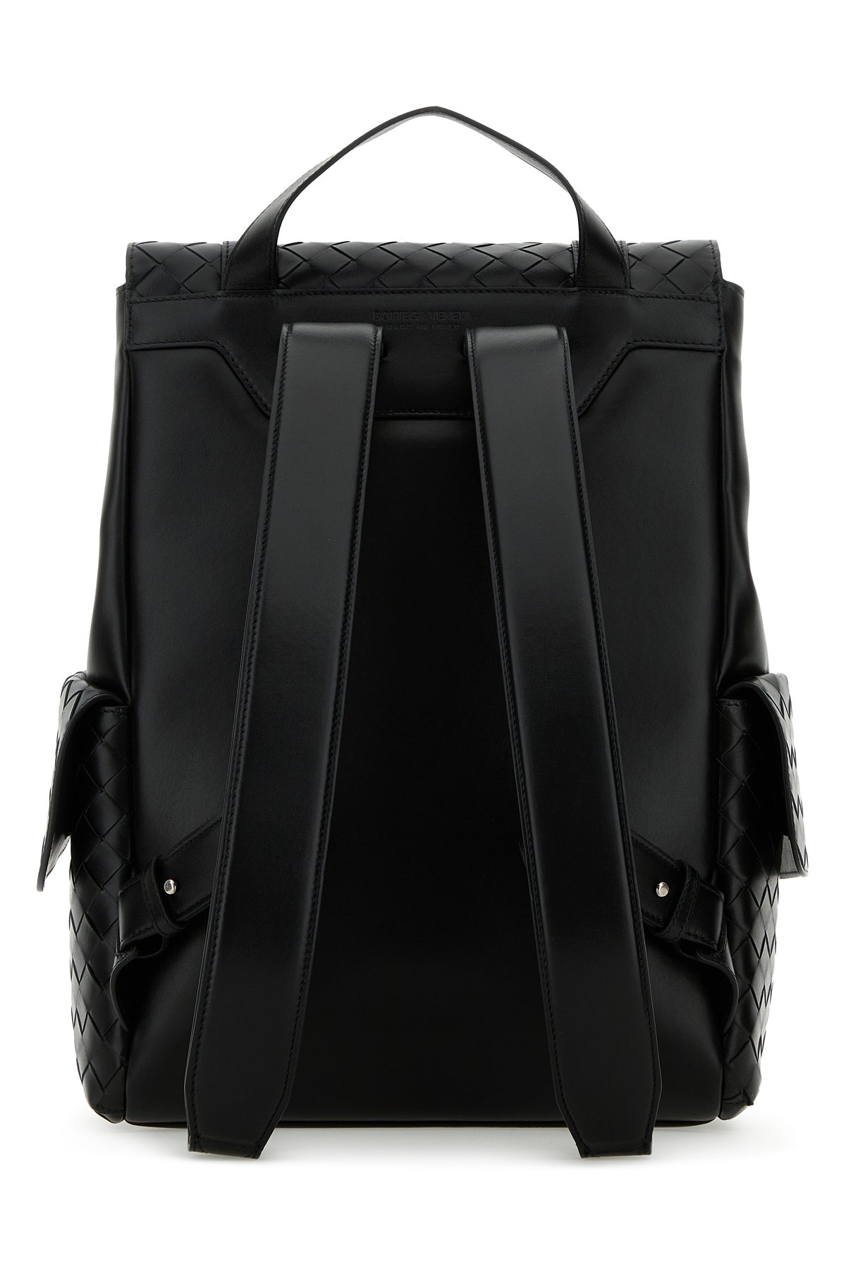 Backpack realized in calf leather characterized by iconic Intrecciato motif on the entire surface.