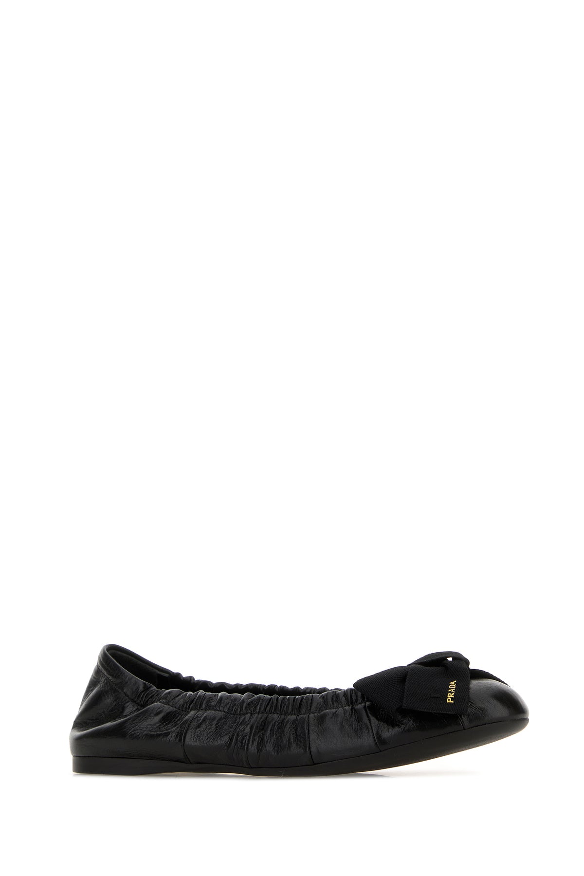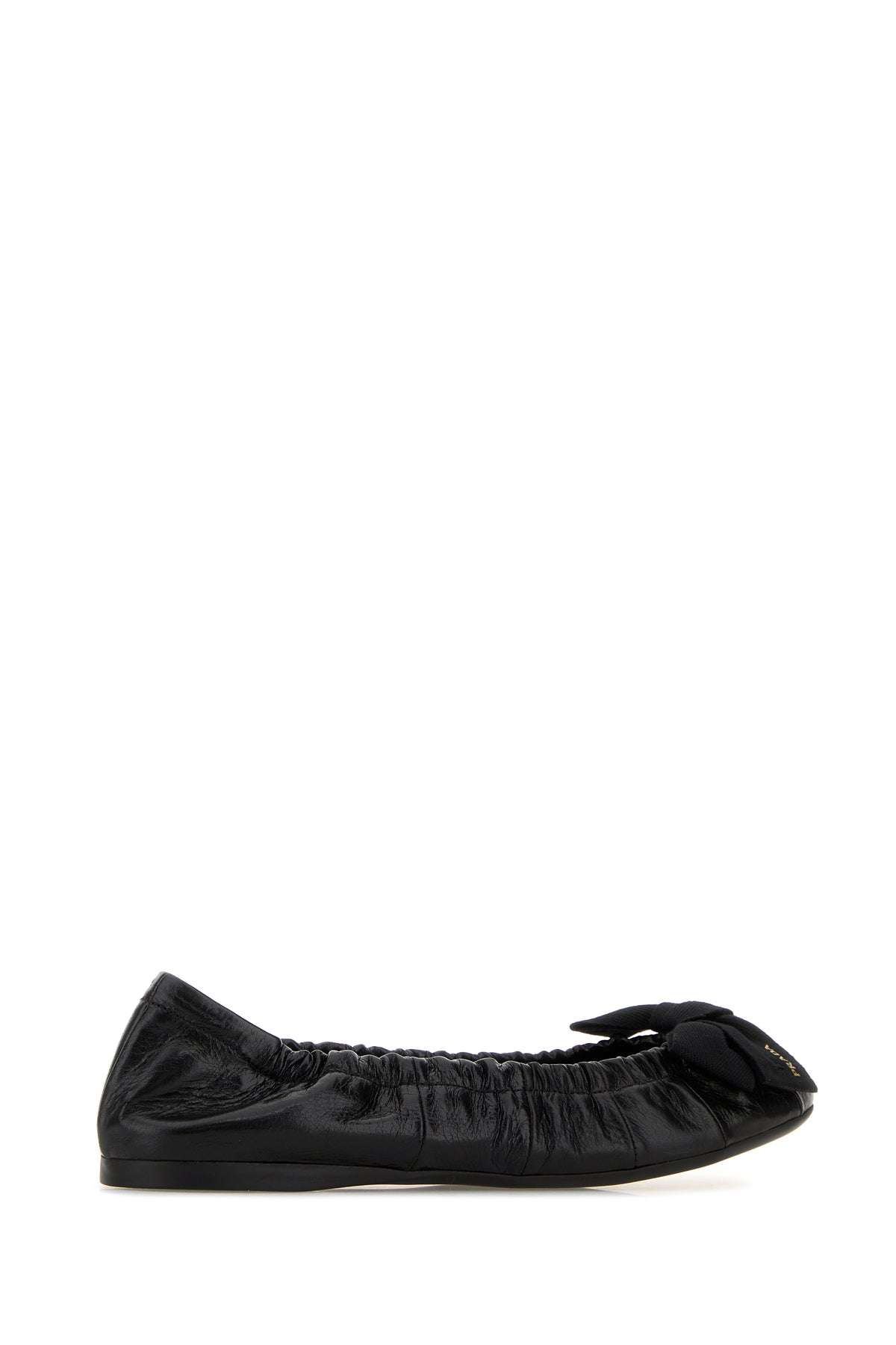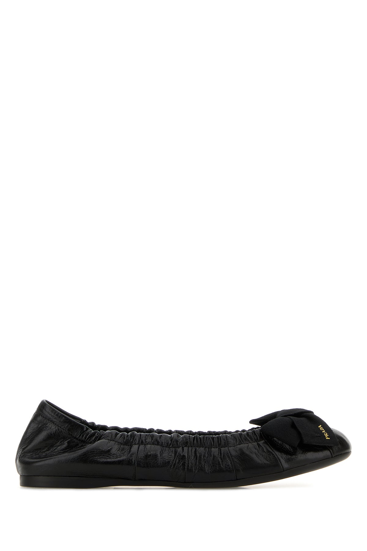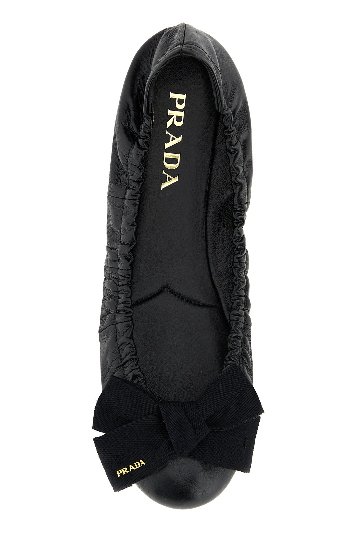 Ballerinas realized in pebble leather characterized by printed logo on the decorative bow.