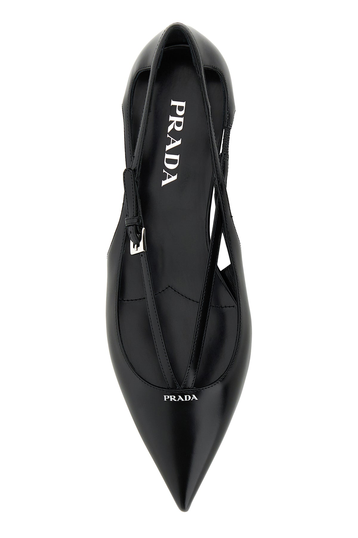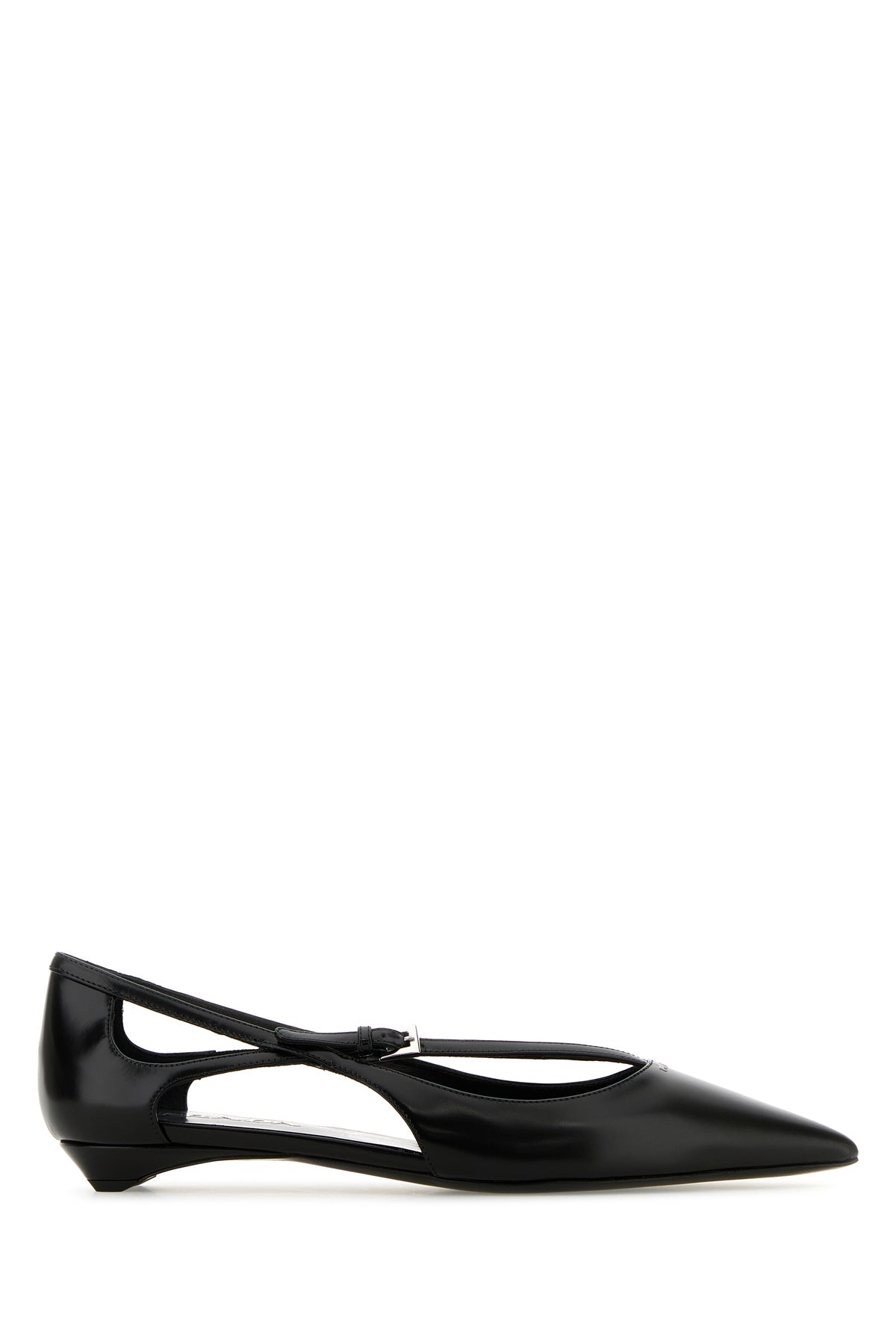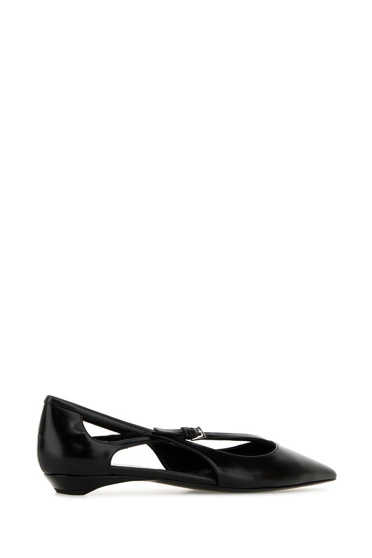 Ballerinas realized in smooth leather characterized by contrasting printed logo on the toe.