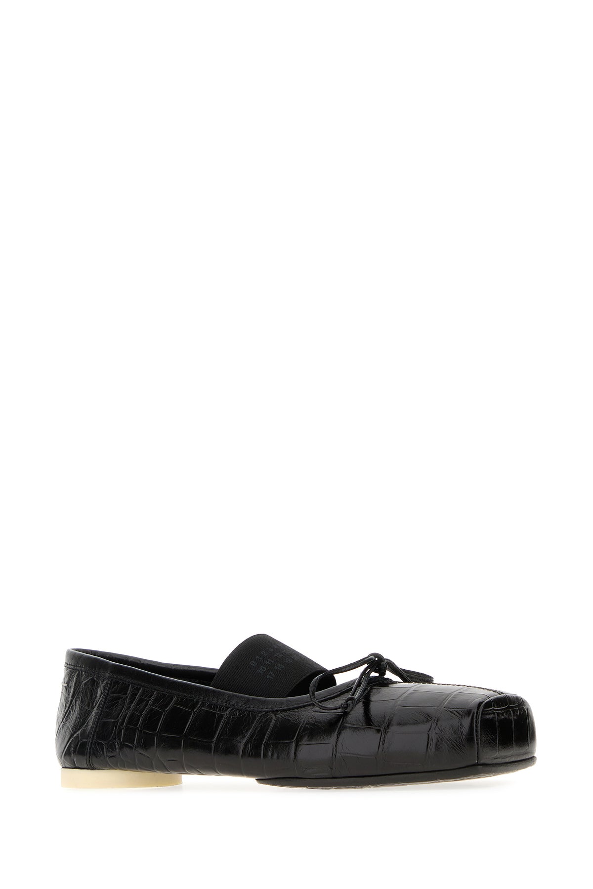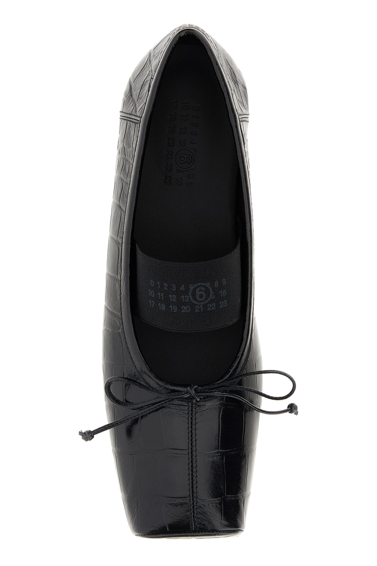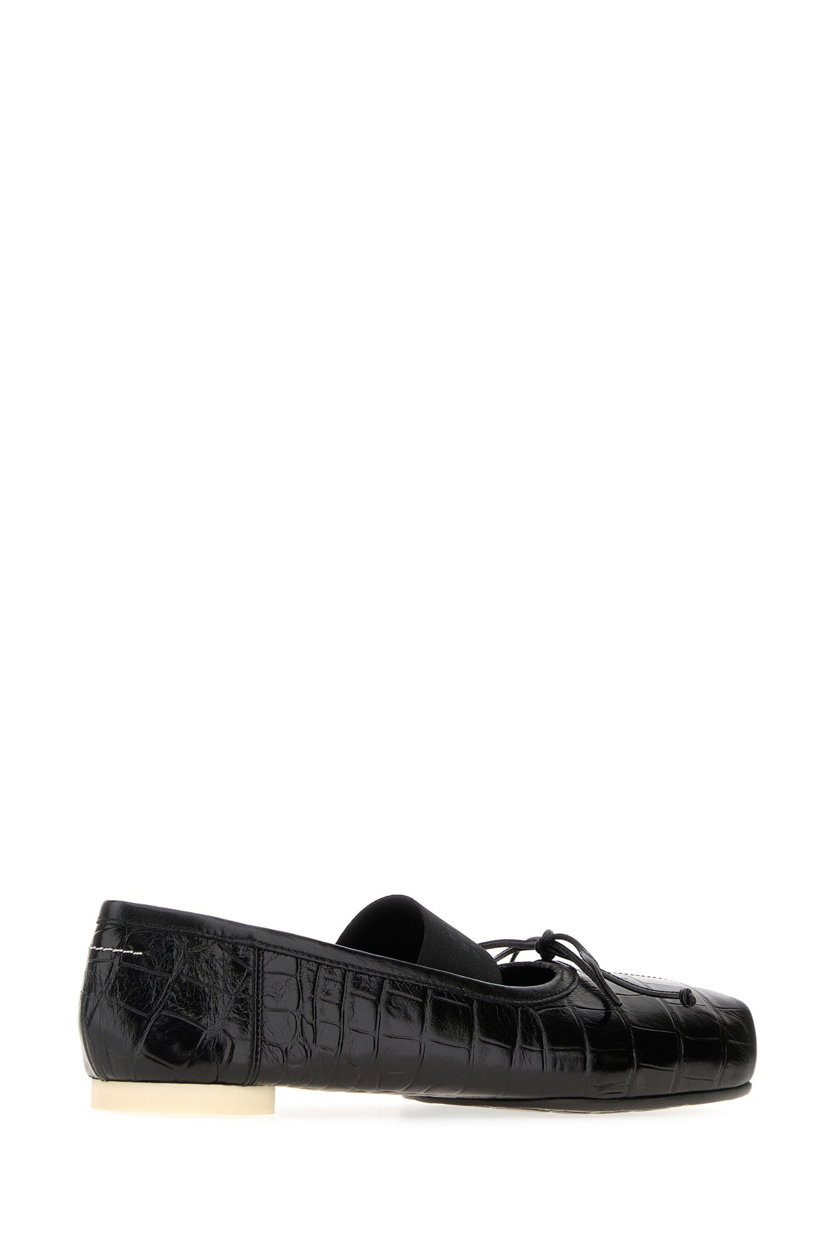 Ballerinas realized in crocodile embossed leather enriched by iconic contrasting stitching at the back.