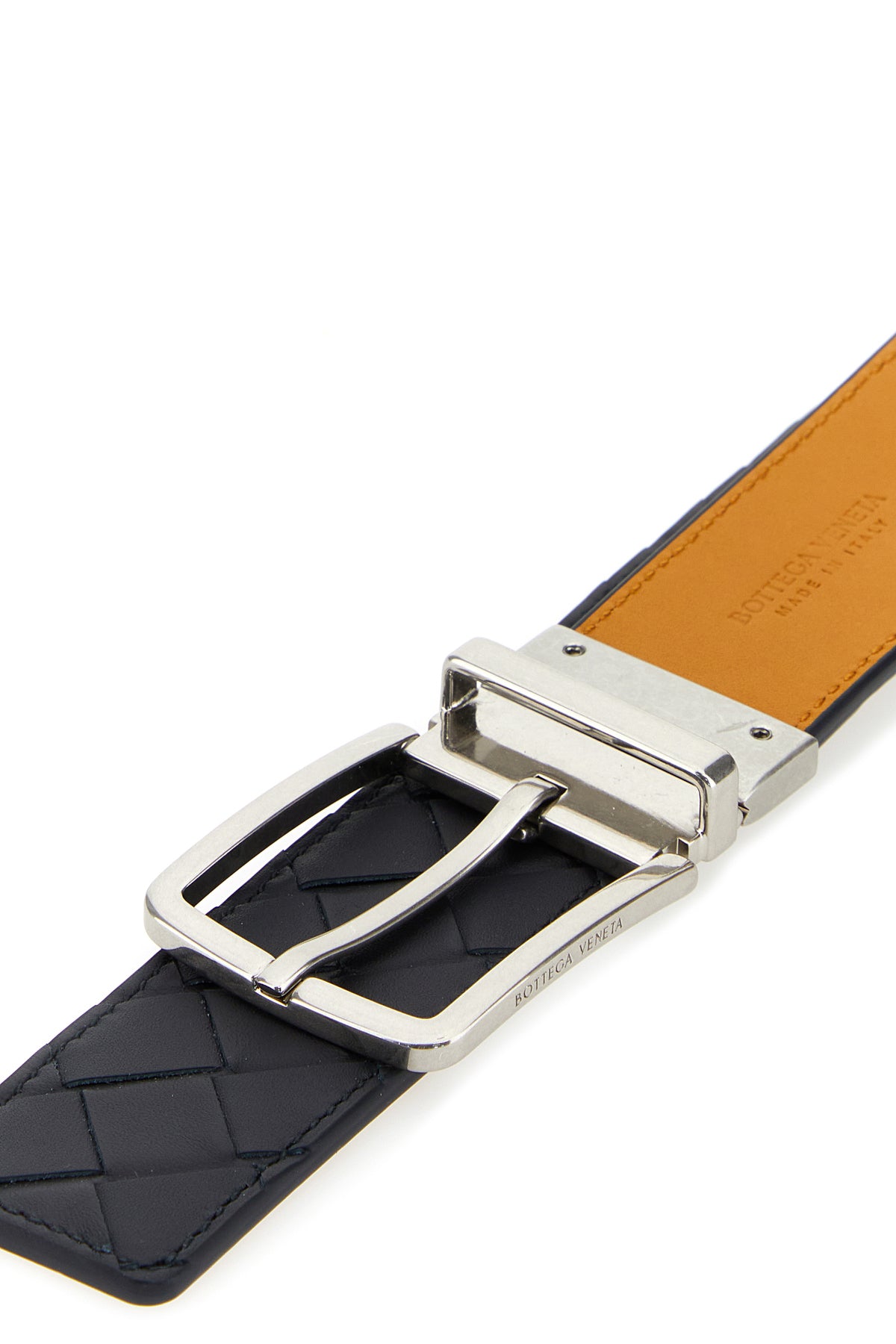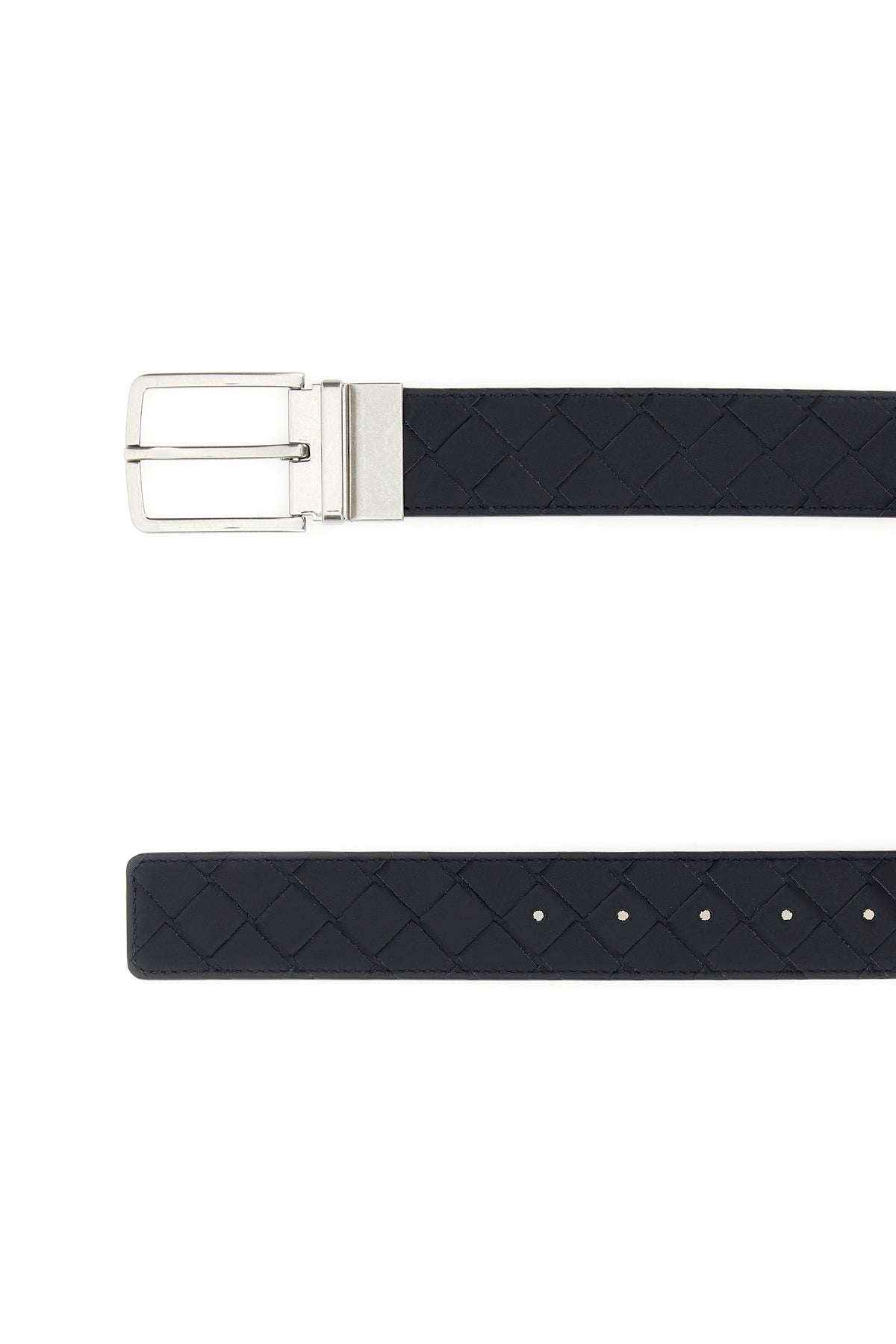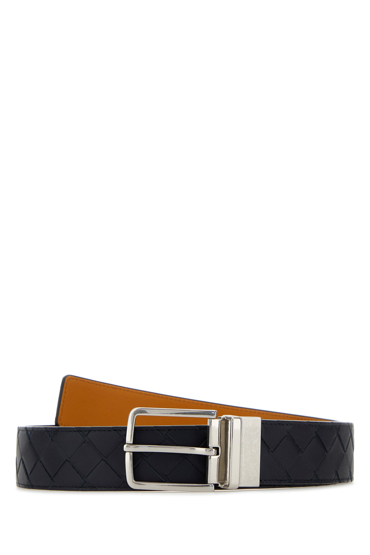 Belt realized in leather characterized by iconic Intrecciato motif on the entire surface.
