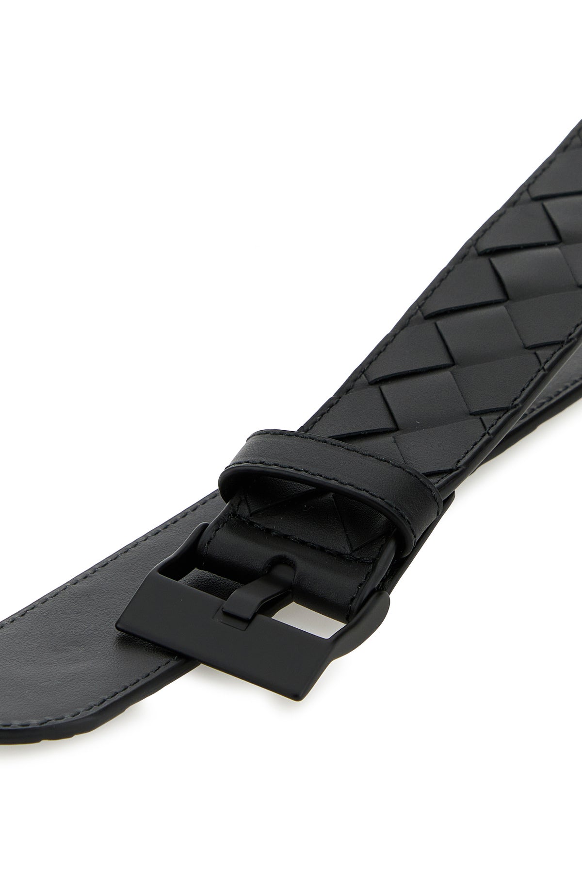 Belt realized in leather characterized by iconic Intrecciato motif on the entire surface.