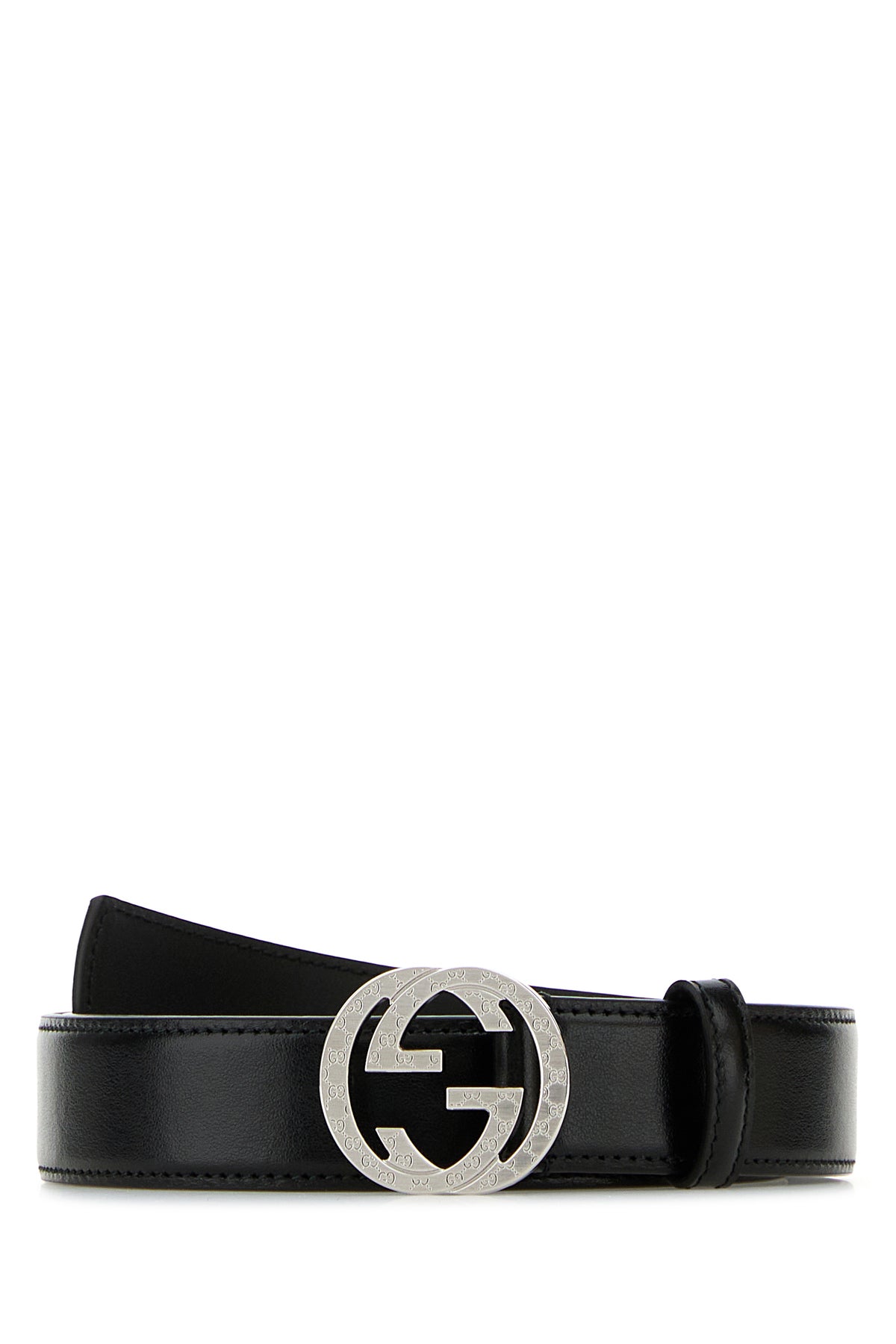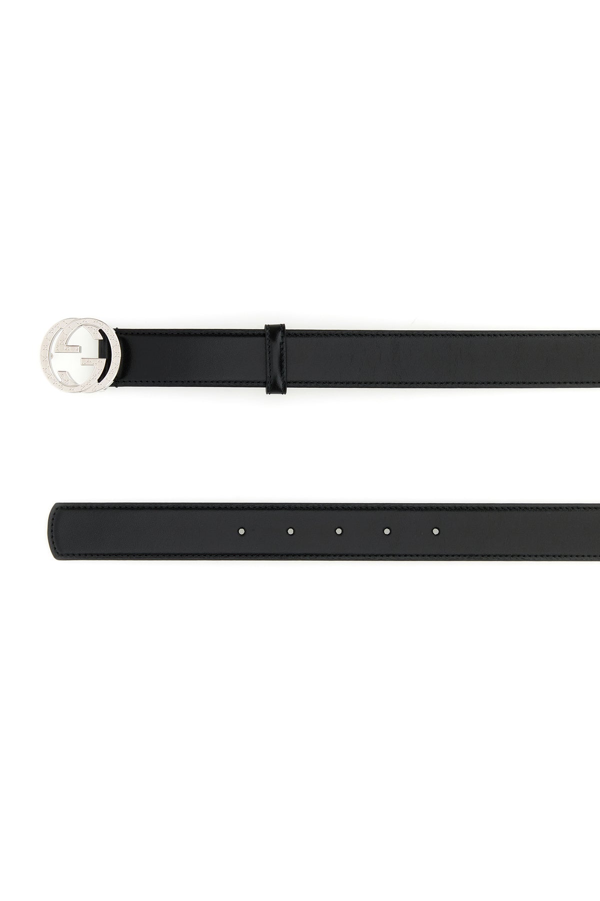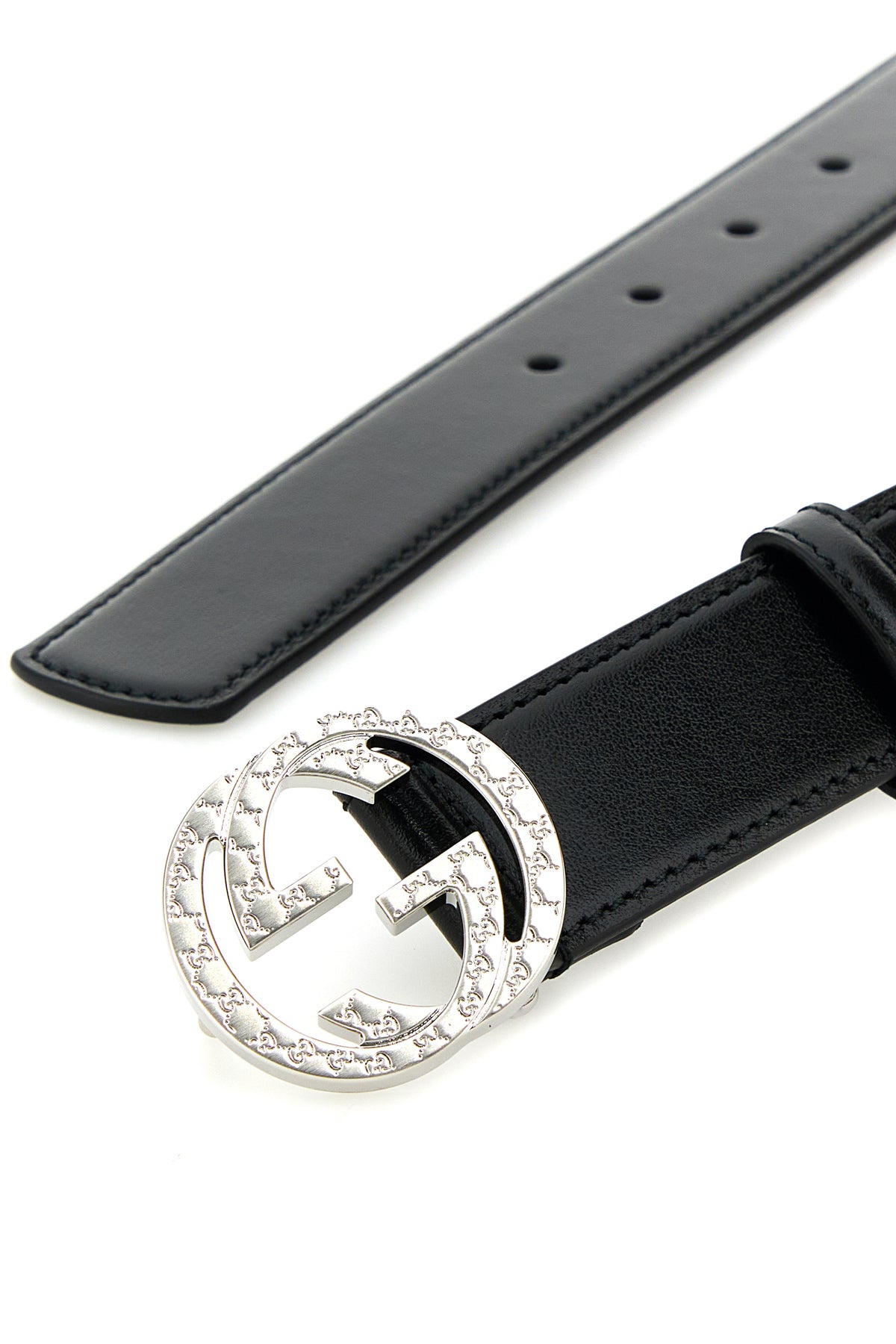 Reversible belt realized in polished-finish smooth leather characterized by engraved metal GG buckle.
