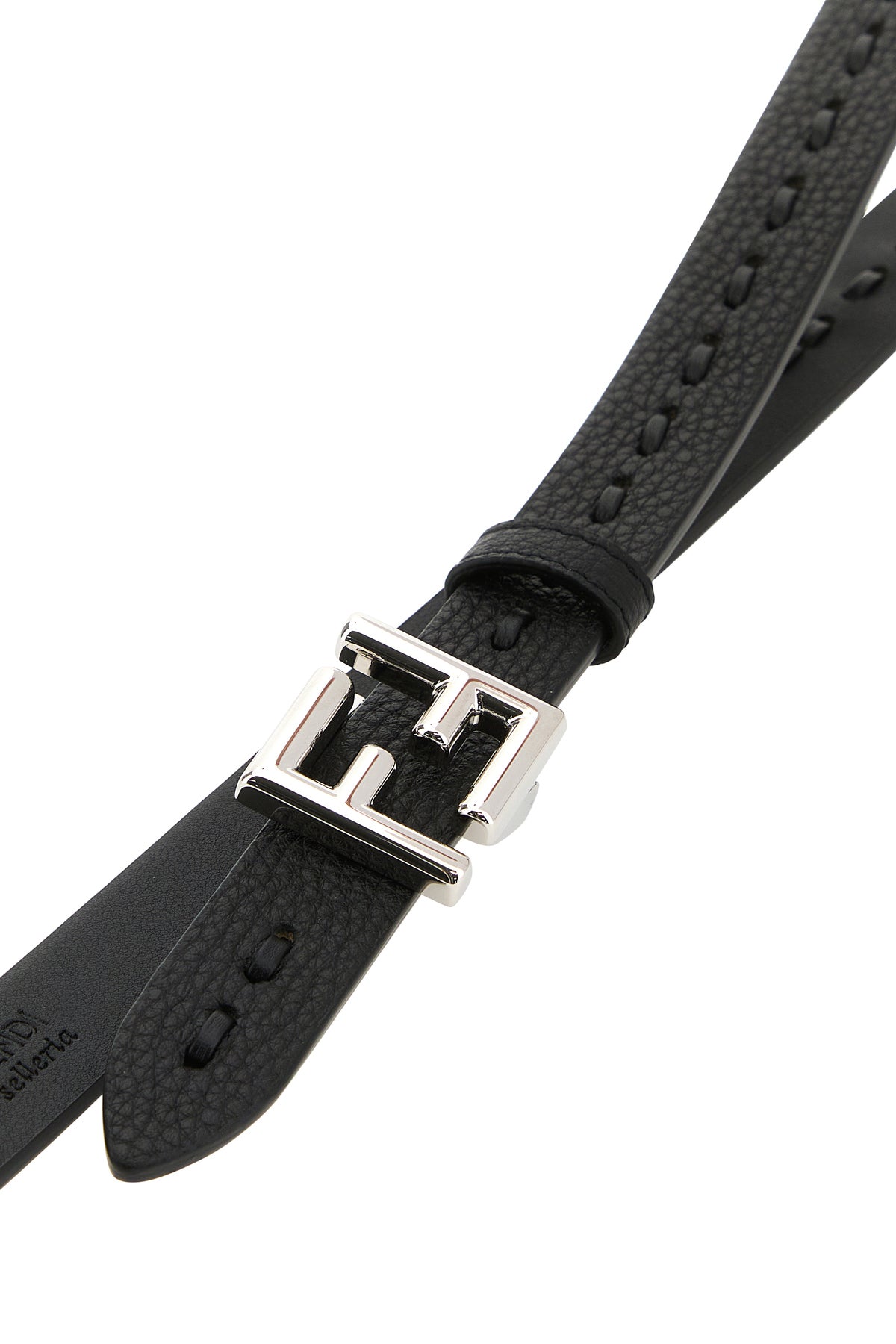 Belt realized in pebble leather enriched by metal FF detail.