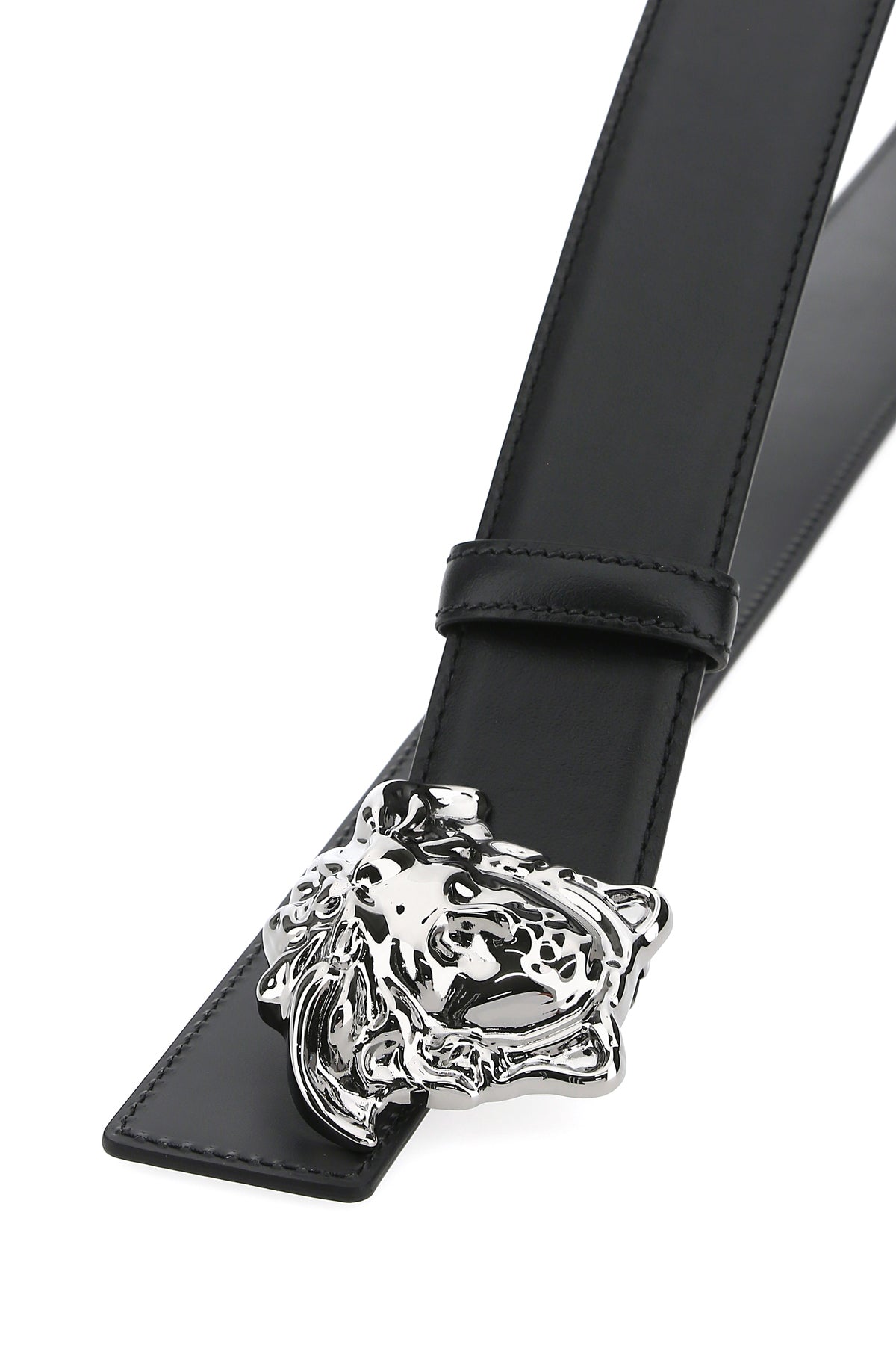 Belt realized in calf leather characterized by iconic Meduse Head metal buckle.