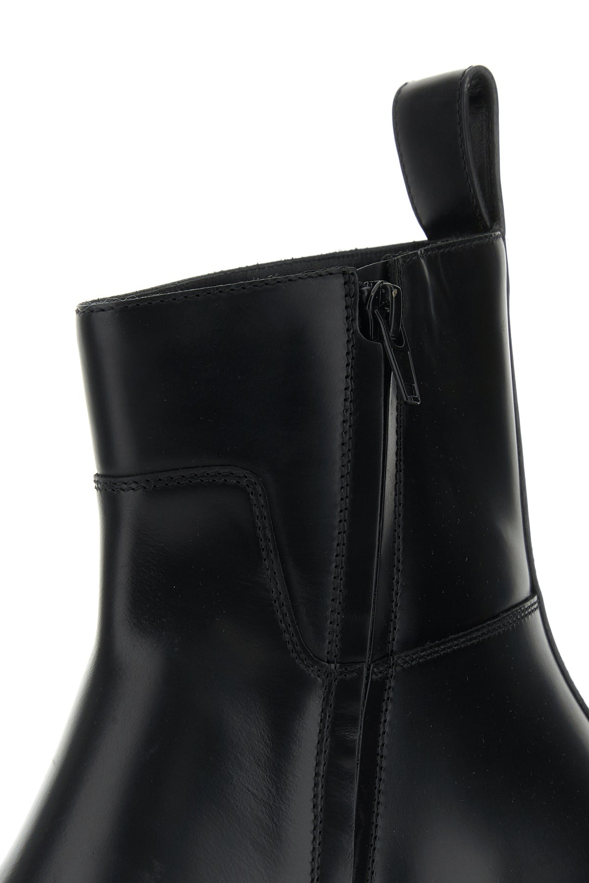 Ankle boots realized in smooth leather characterized by squared toe.