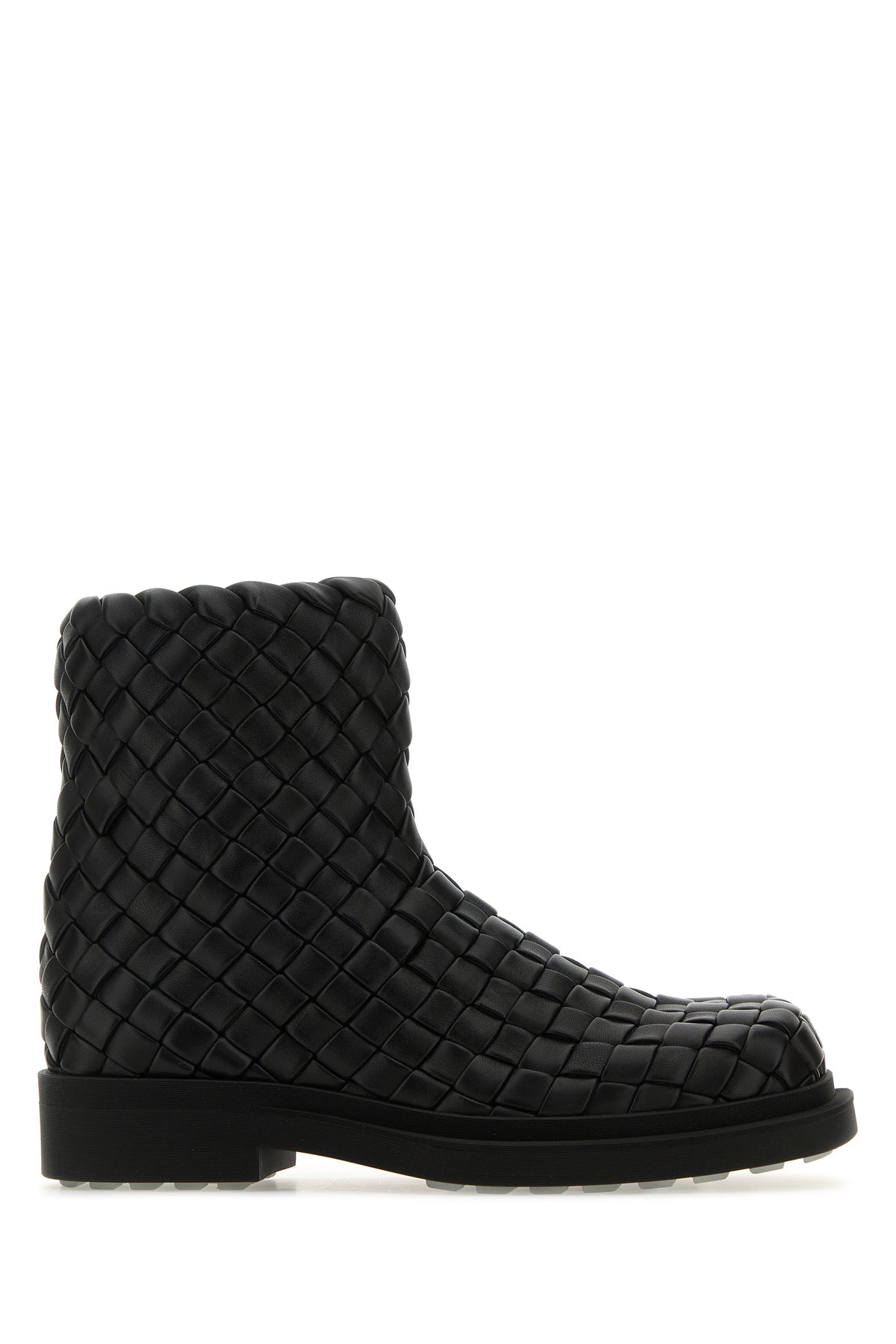 Ankle boots realized in lamb leather characterized by iconic Intrecciato motif on the neutre surface.