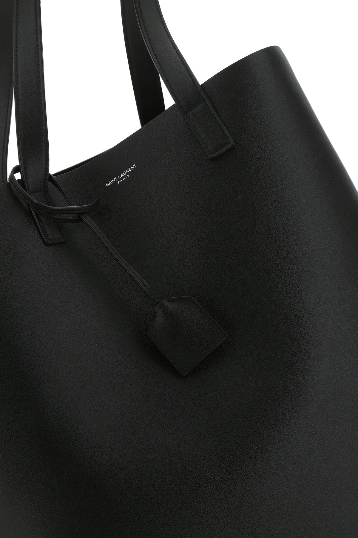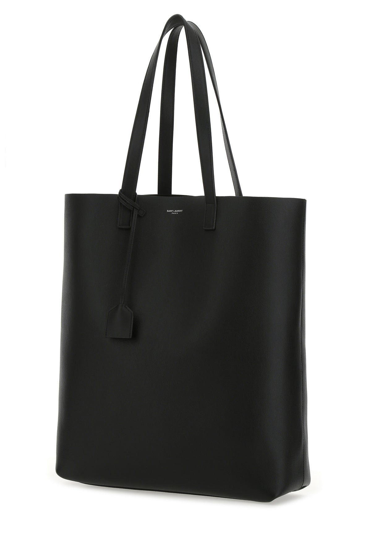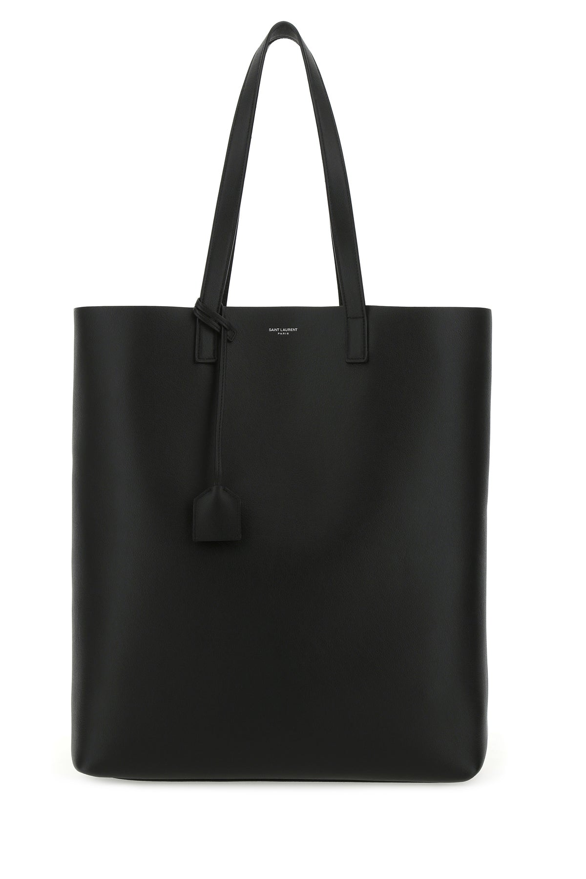 Shopping bag realized in pebble calf leather characterized by printed logo at the front enriched by detachable tonal leather accessory with key ring.