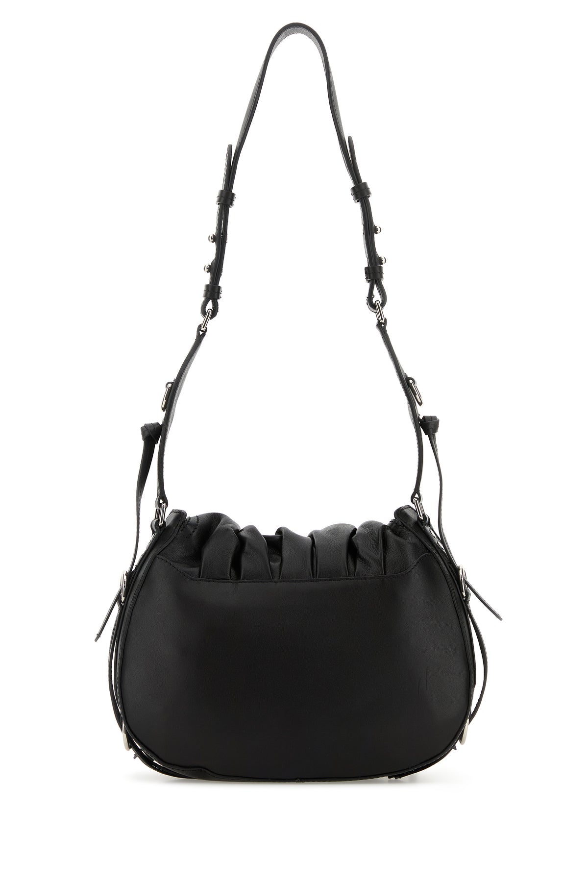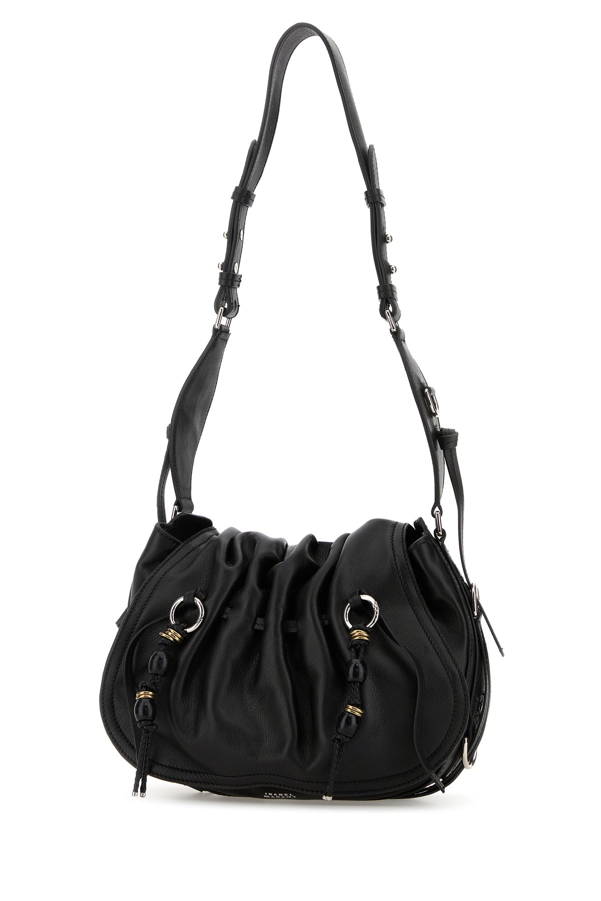 Shoulder bag realized in pebble bovine leather characterized by laminated printed logo at the front enriched by detachable charms.