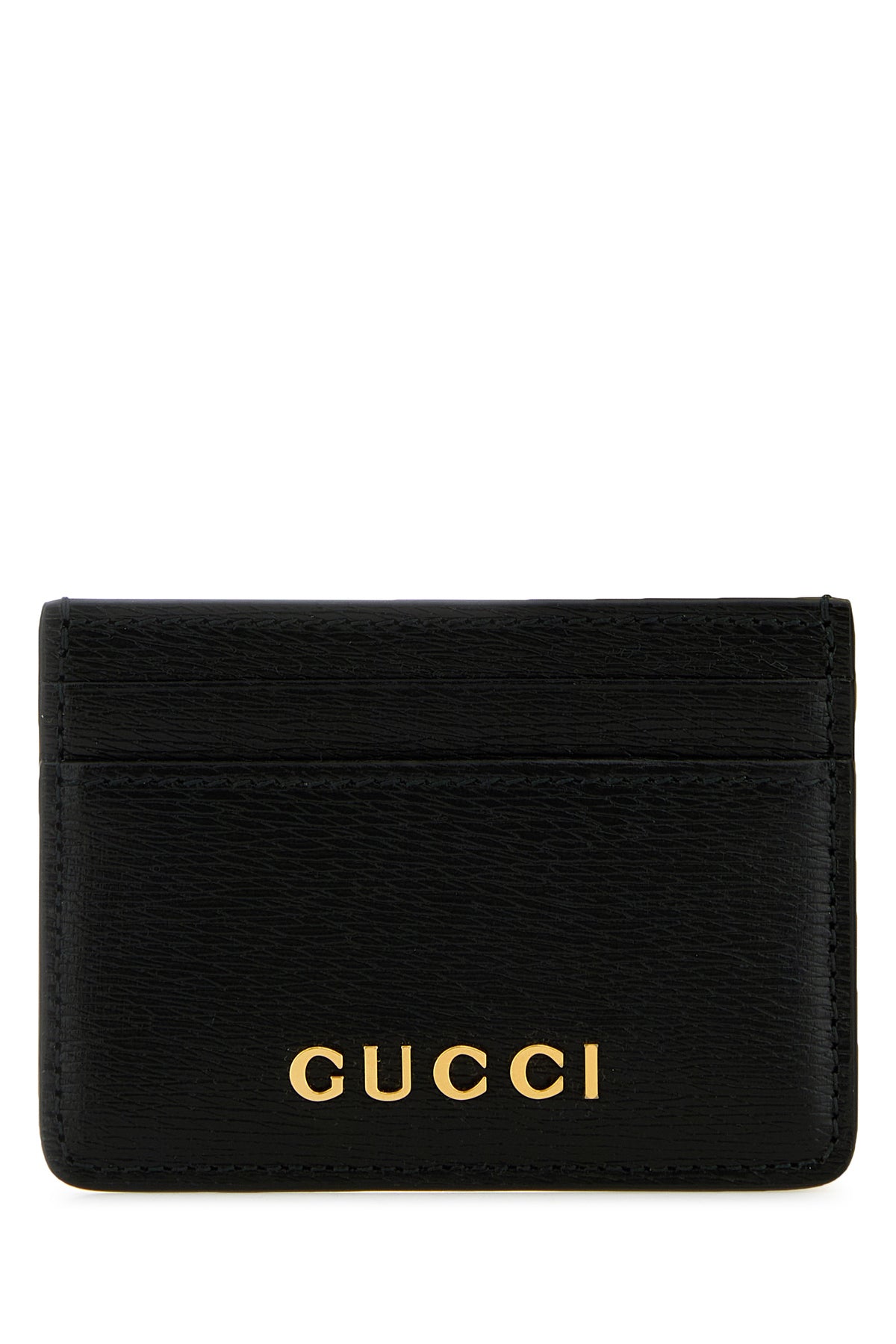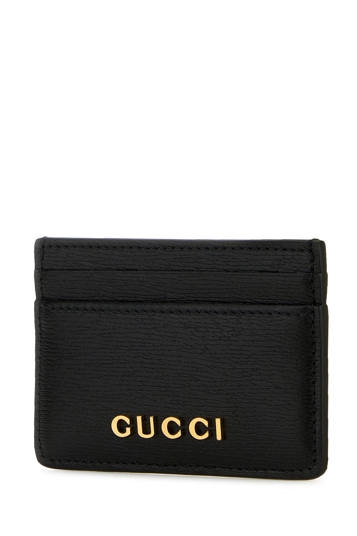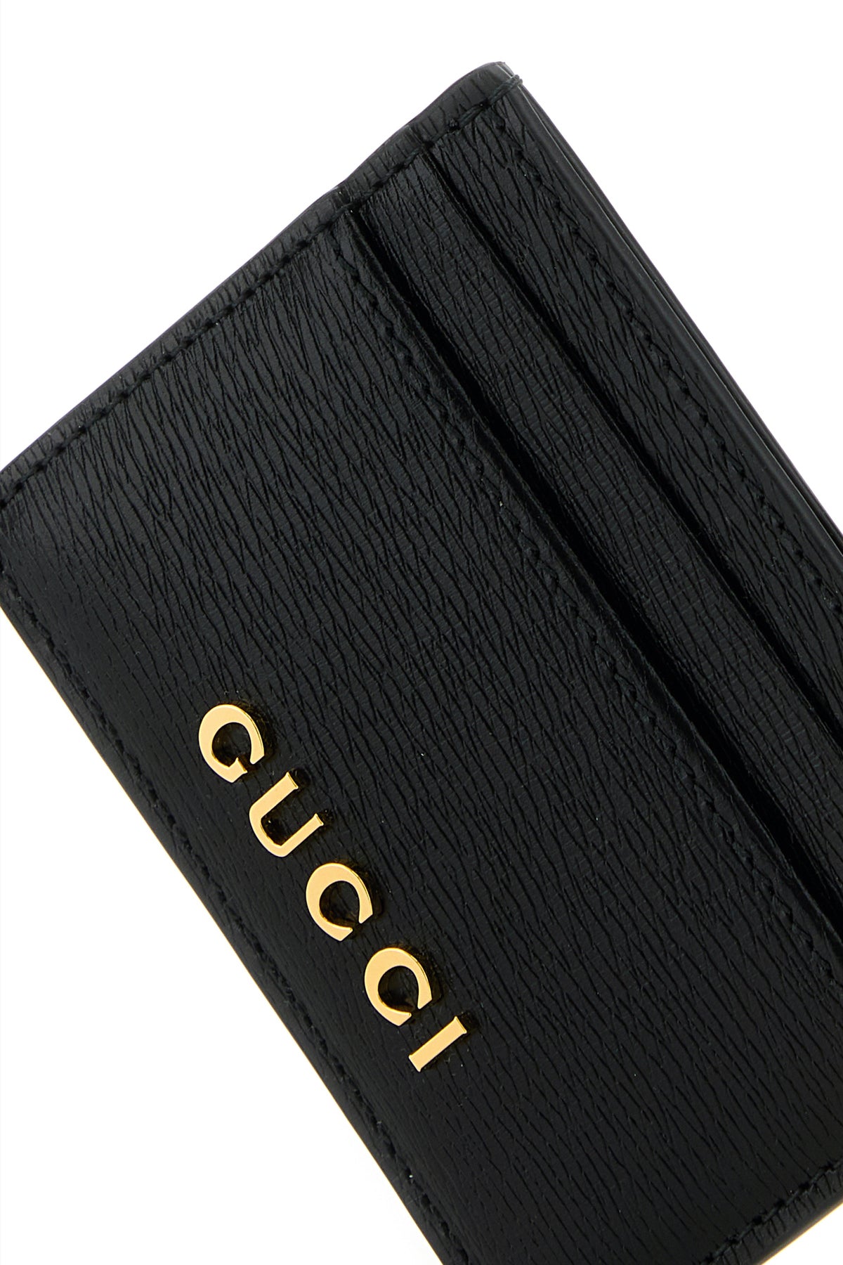 Card holder realized grained leather enriched by metal lettering logo at the front.