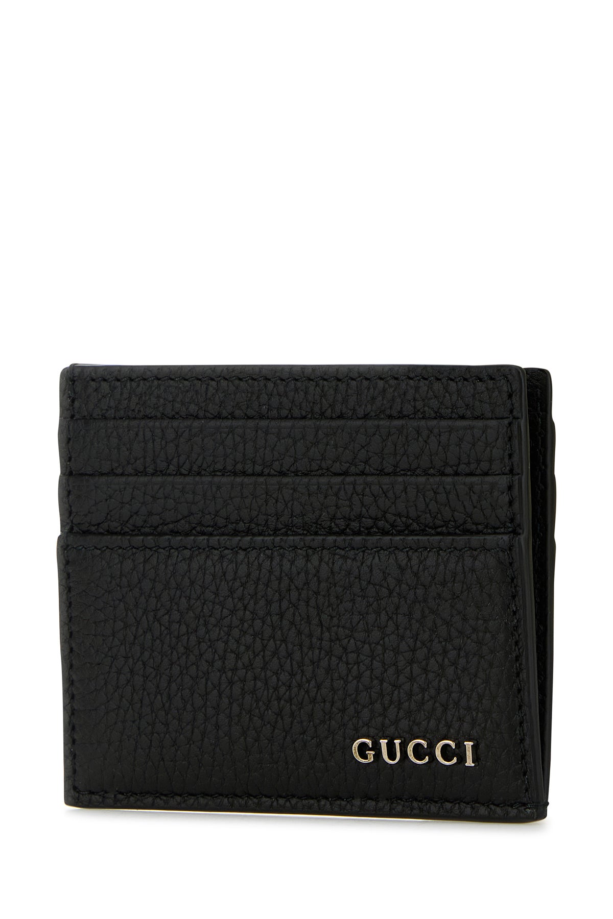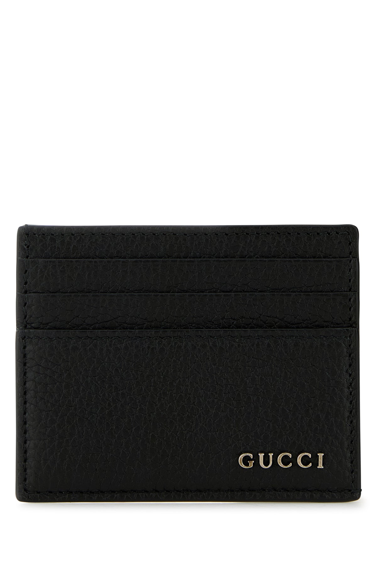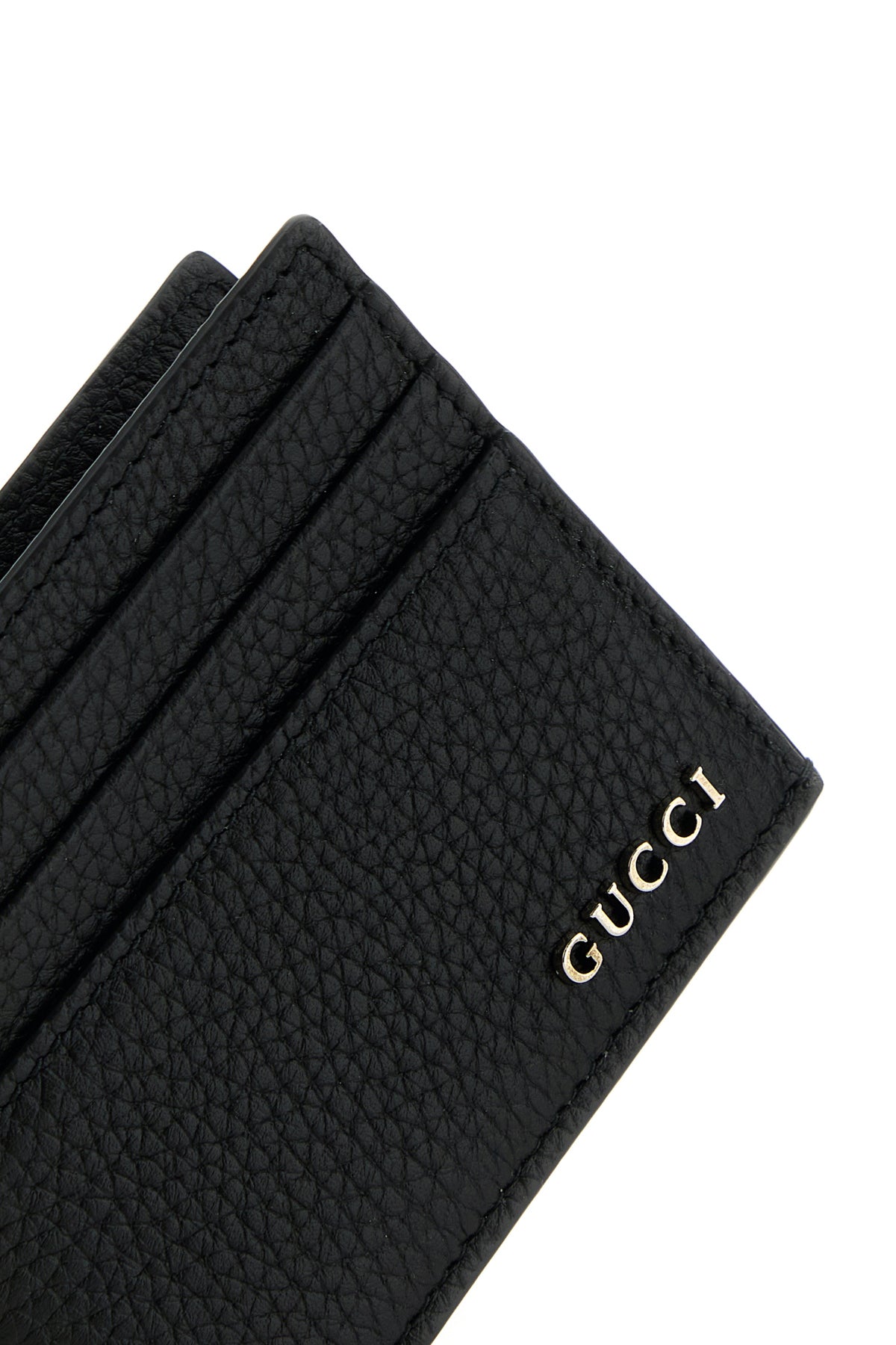 Card holder realized in pebble leather enriched by metal lettering logo at the front.