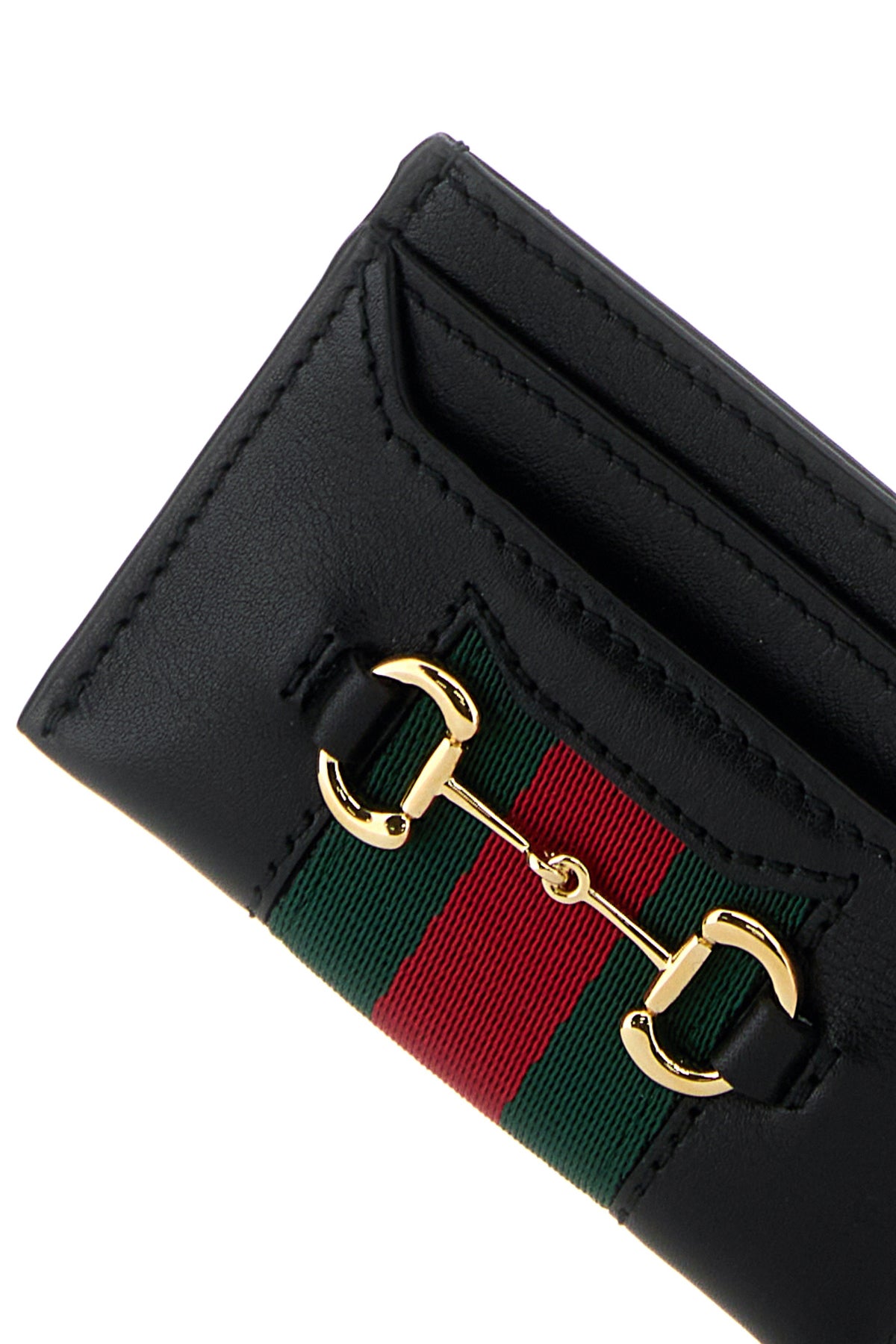 Card holder realized in leather enriched by Web patch and Horsebit metal detail.