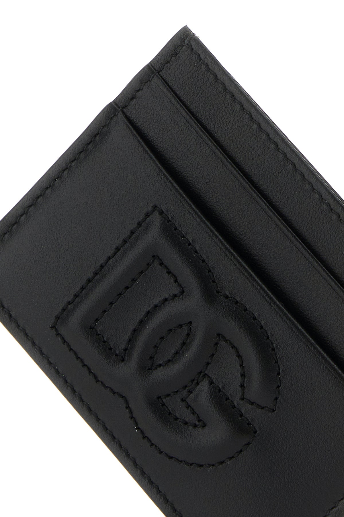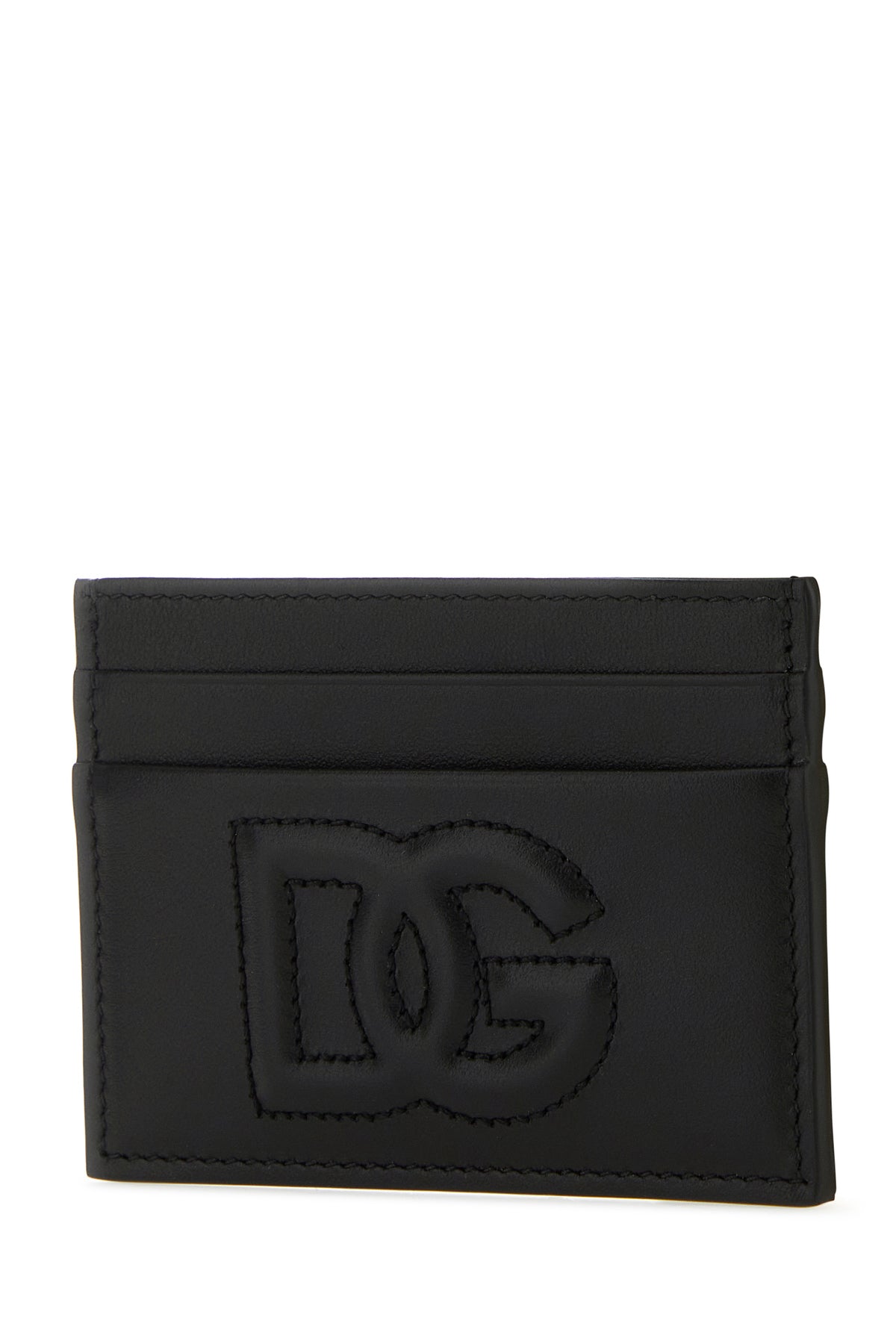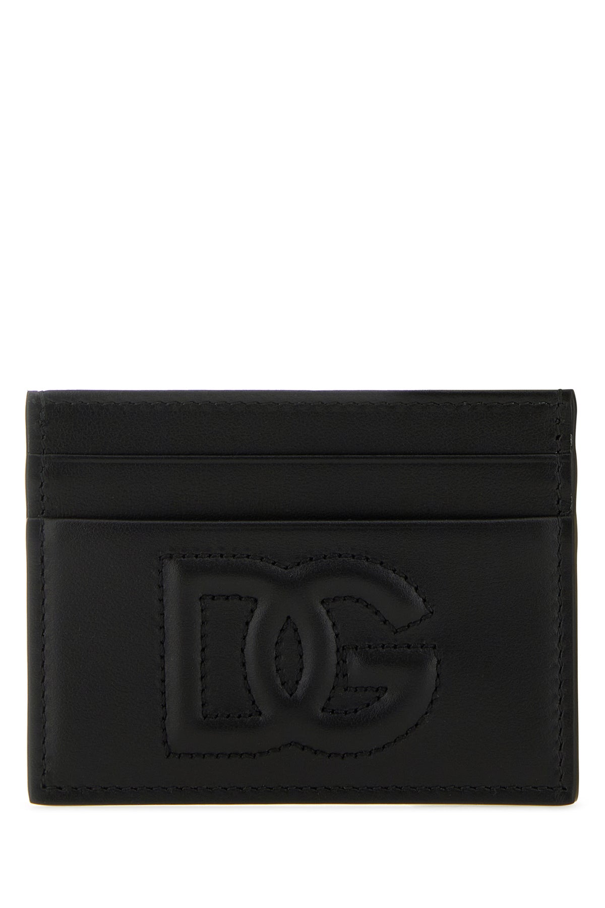 Card holder realized in pebble calf leather characterized by tonal DG embroidery in relief at the front.