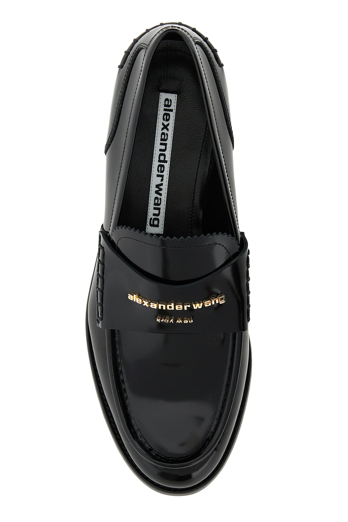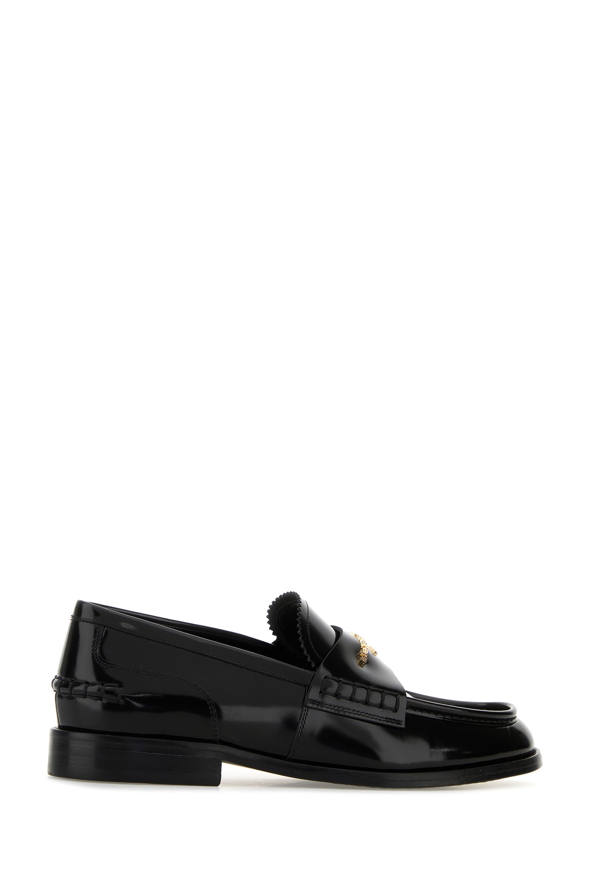 Loafers realized in polished finish leather enriched by metal lettering logo on the vamp.