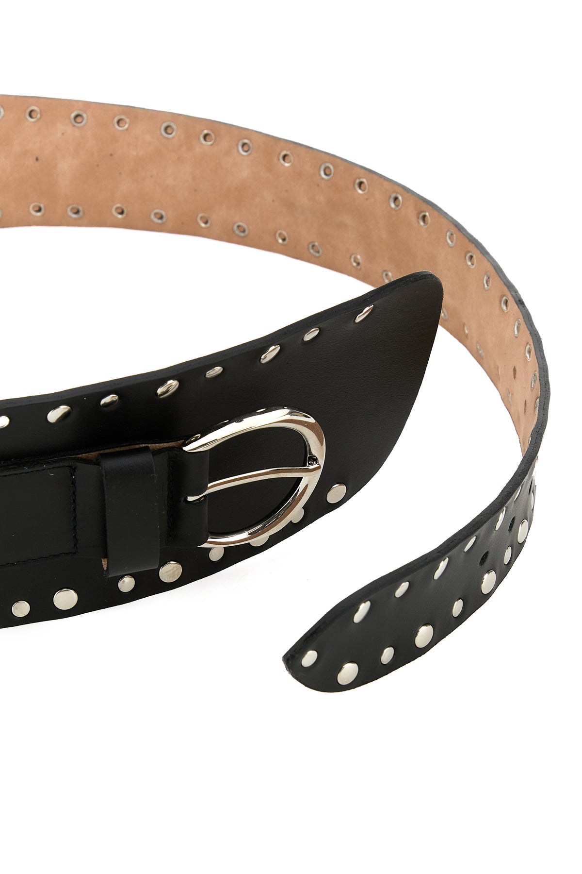 Belt realized in smooth leather enriched by metal studs.