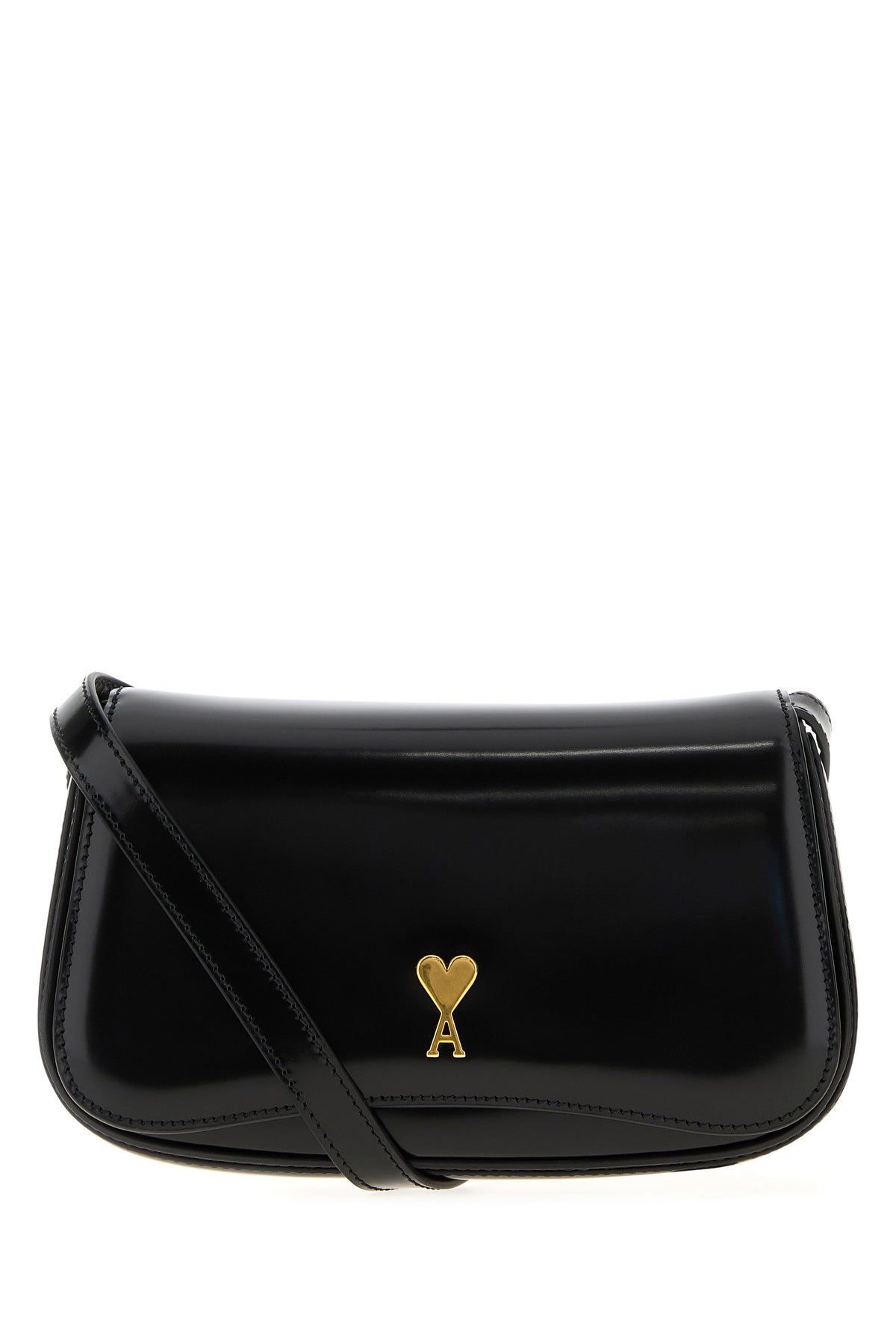 Crossbody bag realized in polished finish smooth leather enriched by Ami De Coeur metal detail at the front.