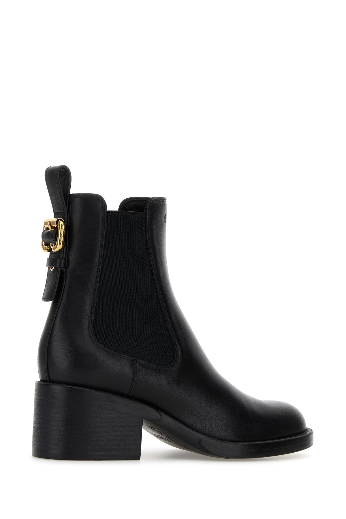 Ankle boots realized in smooth calf leather characterized by embossed logo at the front enriched by Paddington buckle at the back.