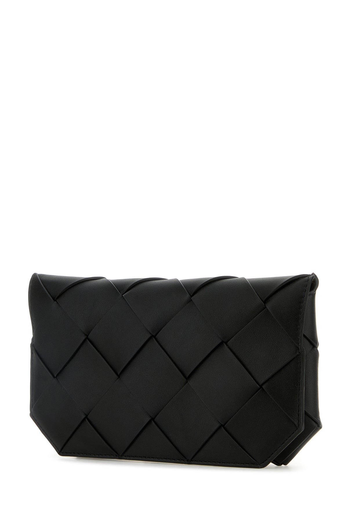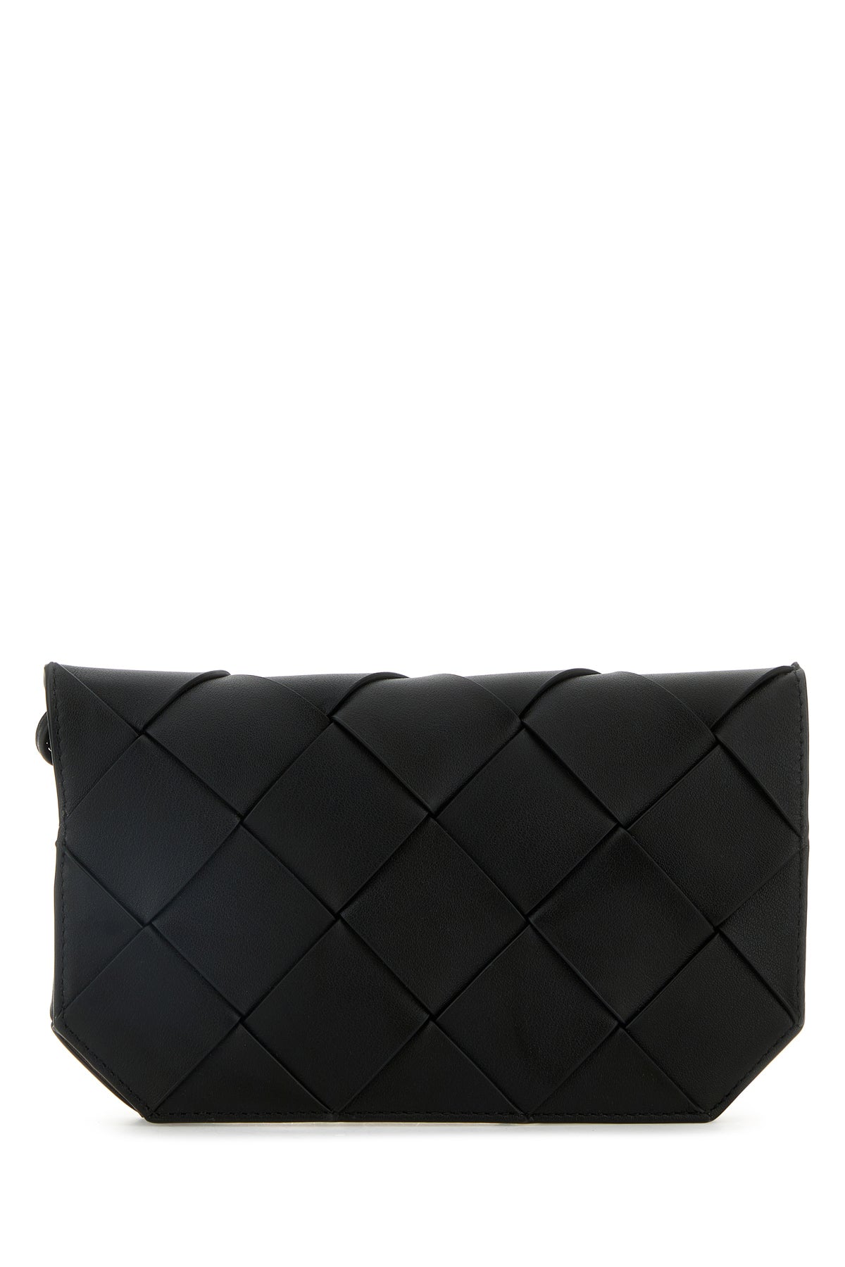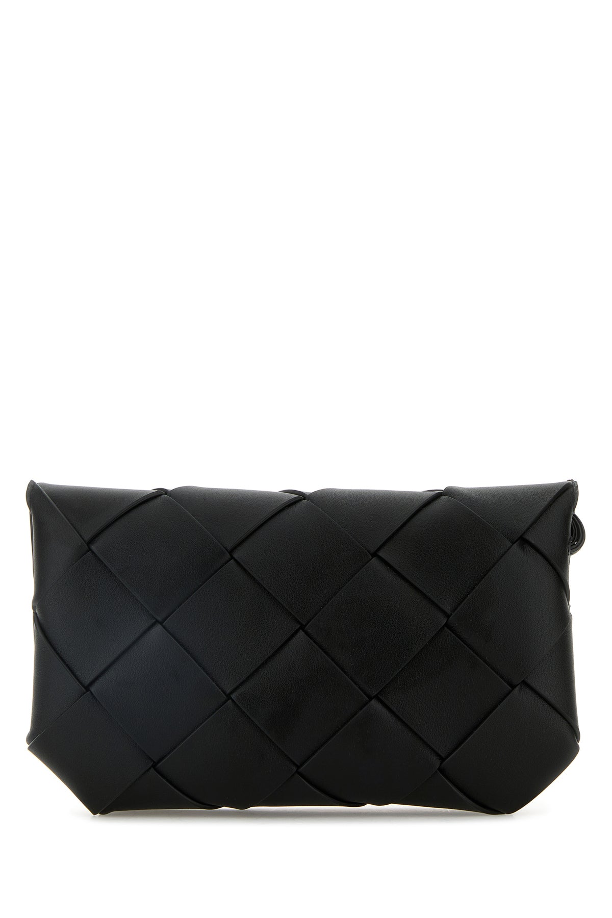 Clutch realized in slightly pebble calf leather characterized by iconic Intreccio motif on the entire surface.