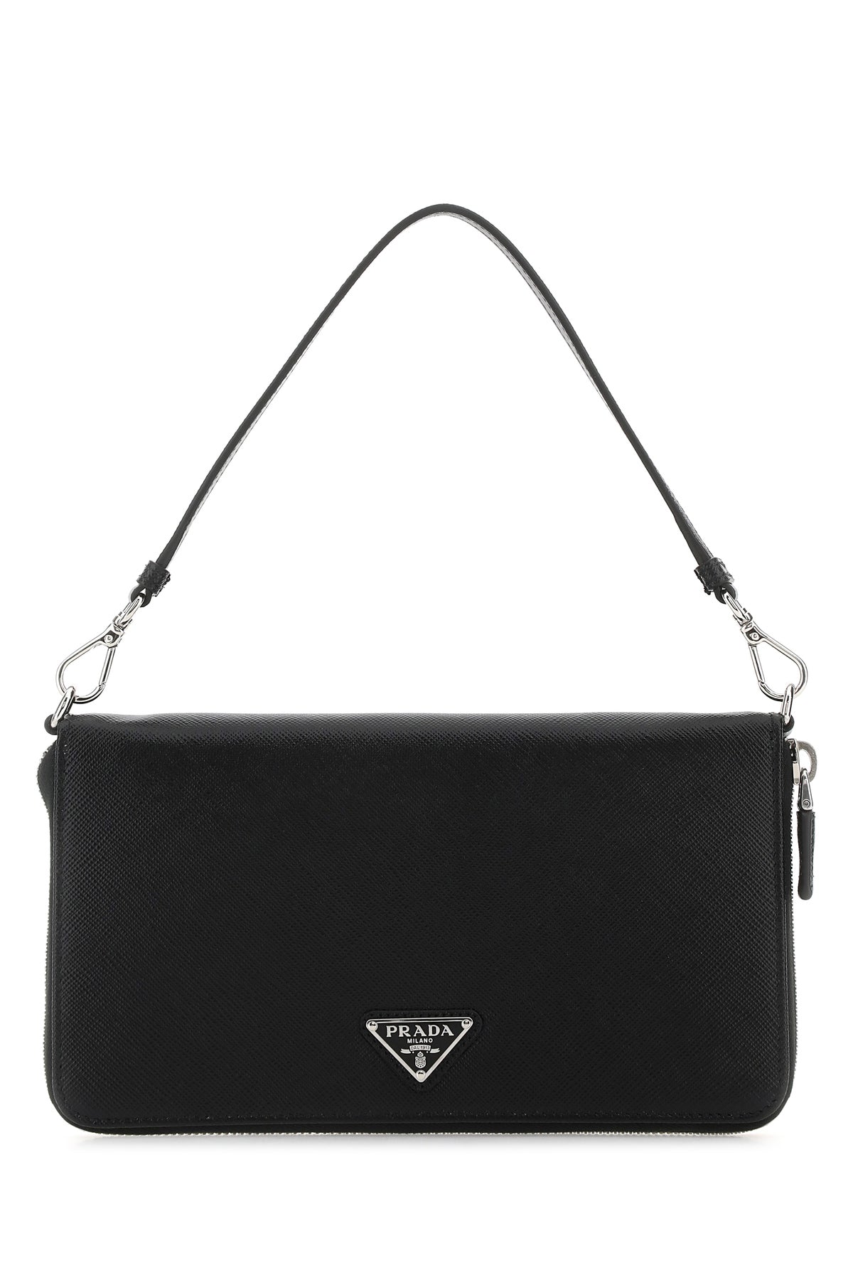Document case realized in Saffiano leather enriched by iconic metal logoed triangle at the front.