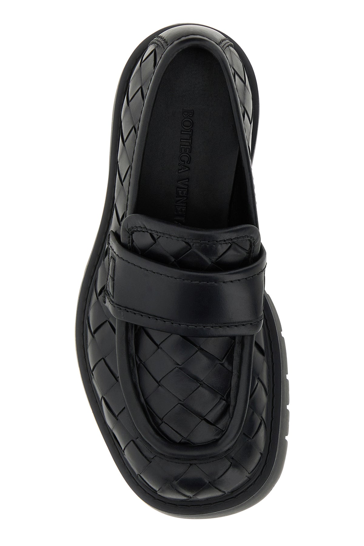 Loafers realized in smooth calf leather characterized by iconic Intrecciato motif on the entire surface.