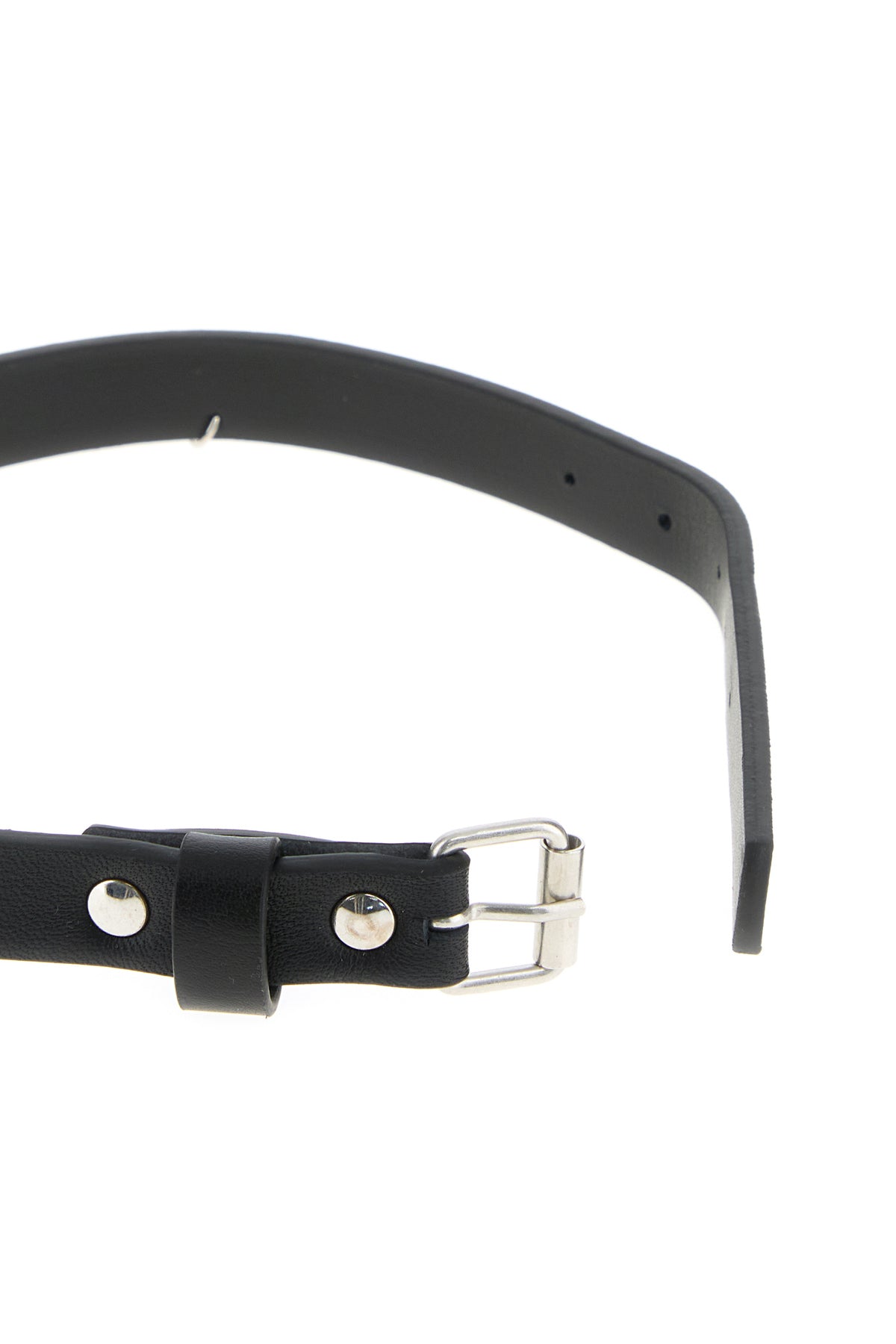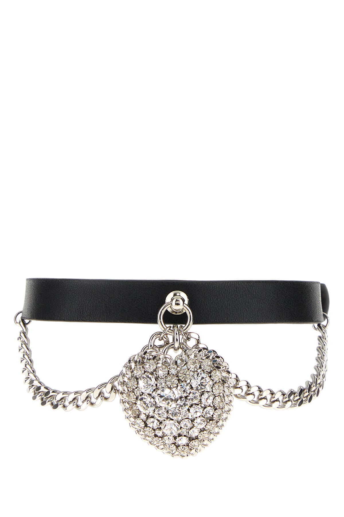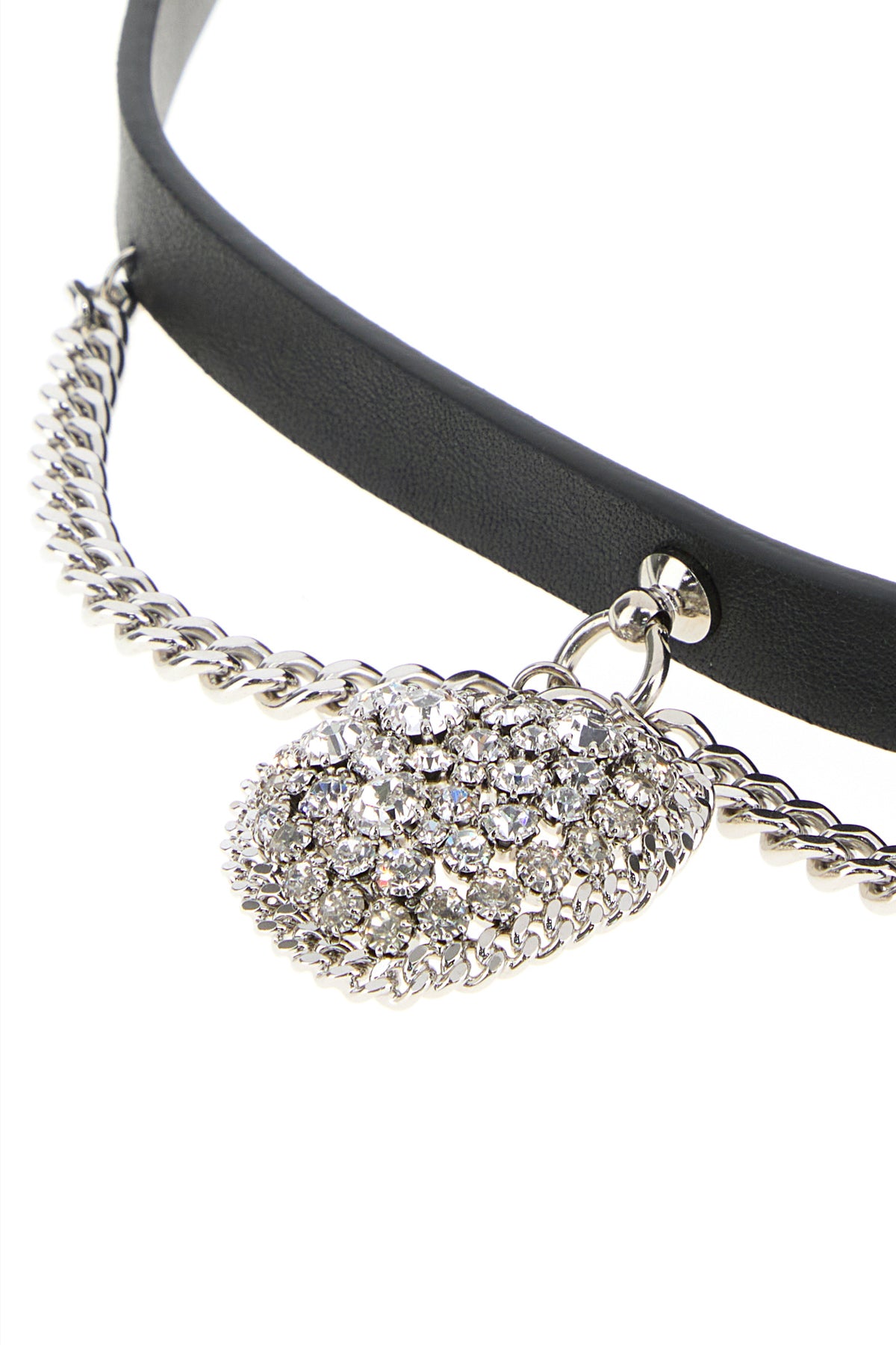 Choker realized in leather enriched by rhinestones Heart charm and metal chain.