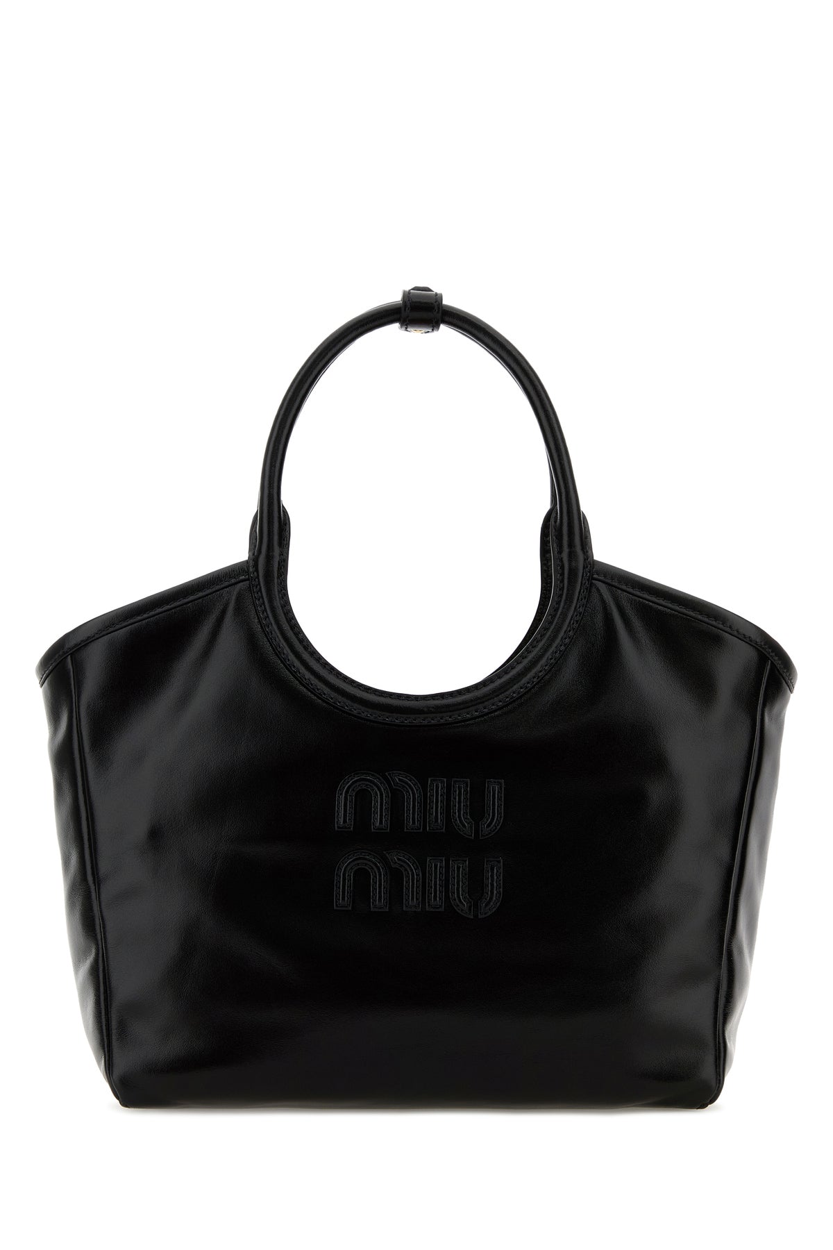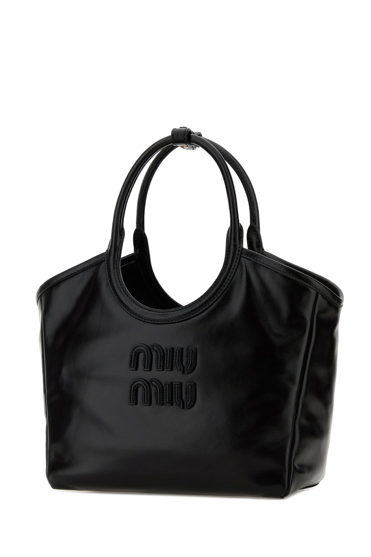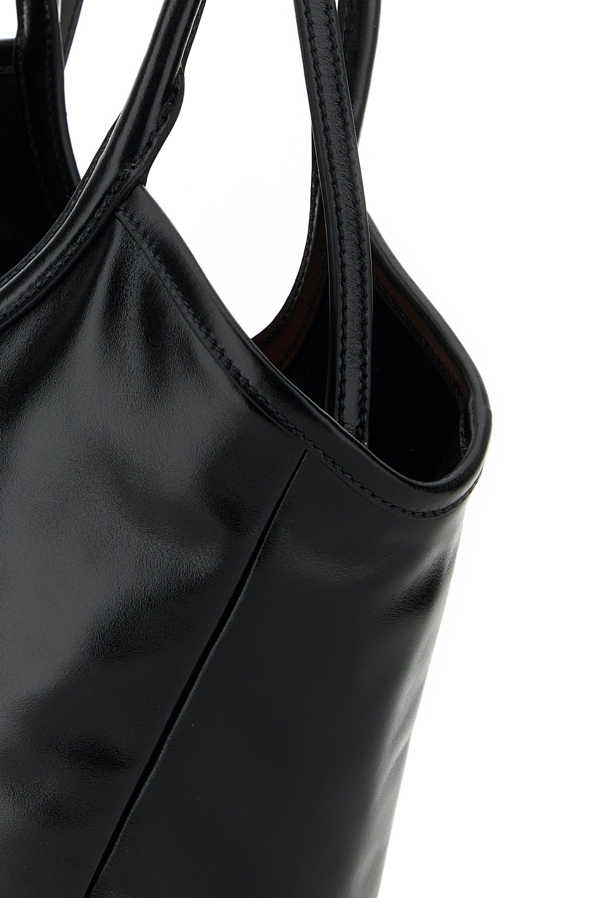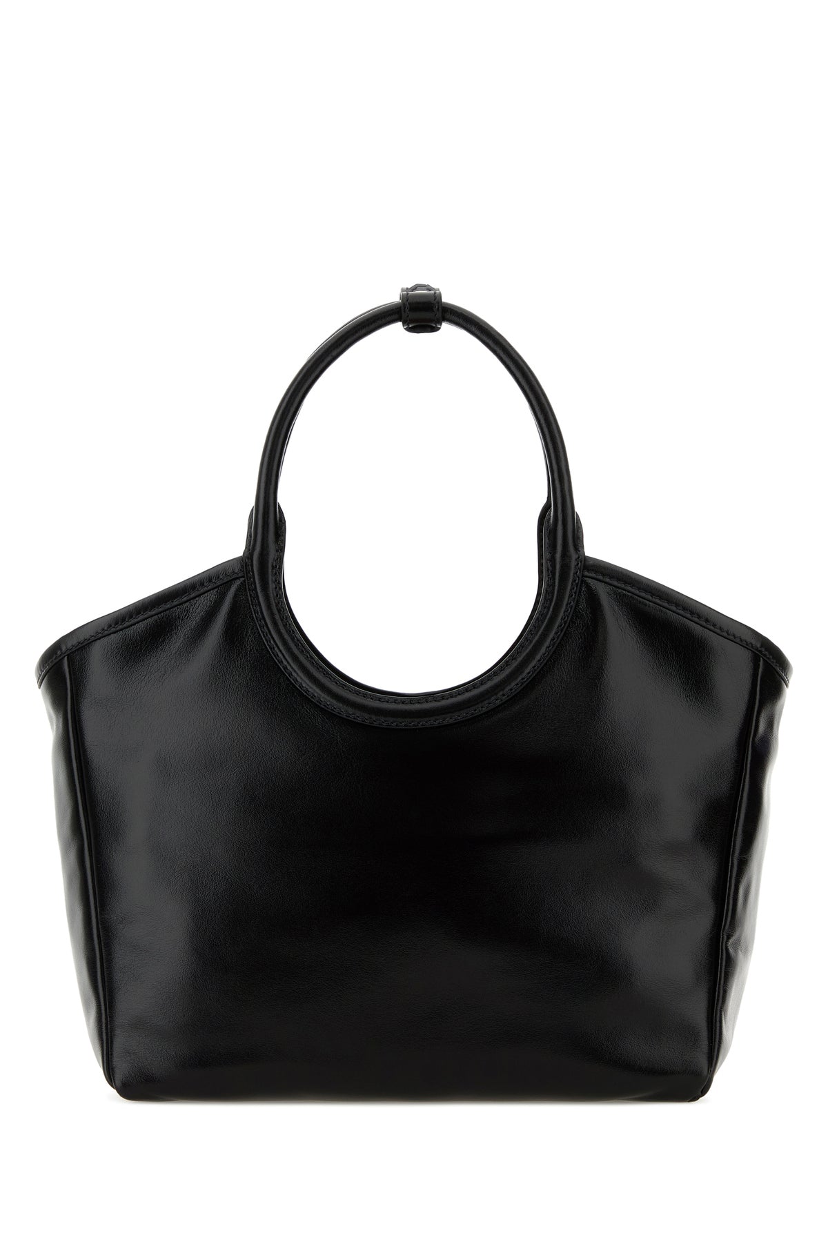 Handbag realized in slightly pebble leather enriched by logoed patch at the front.