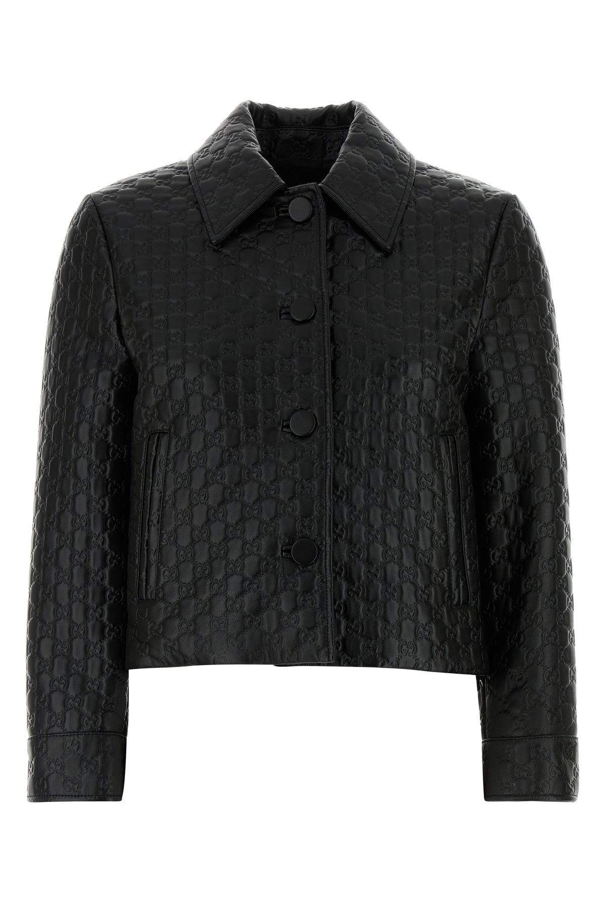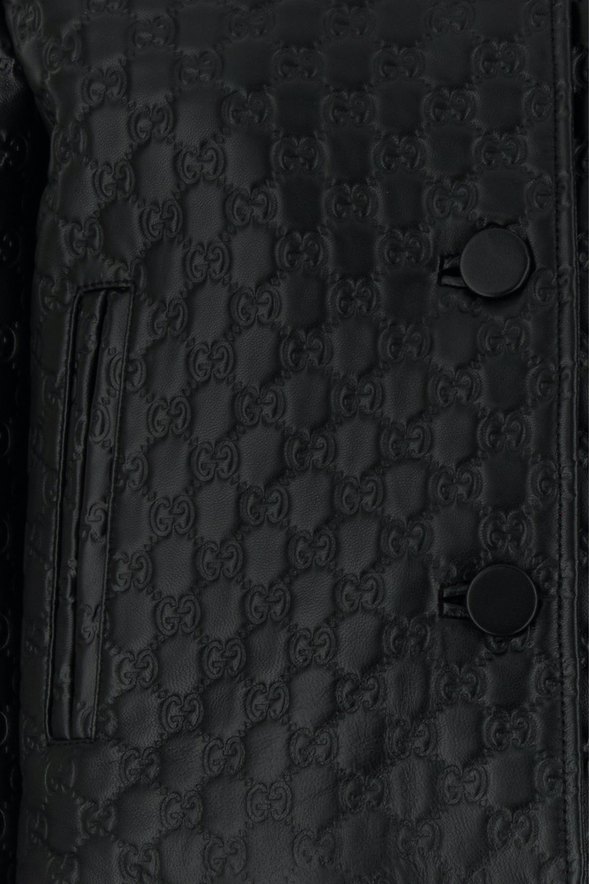 Short-cut jacket realized in lamb leather with GG motif embossed on the entire surface.