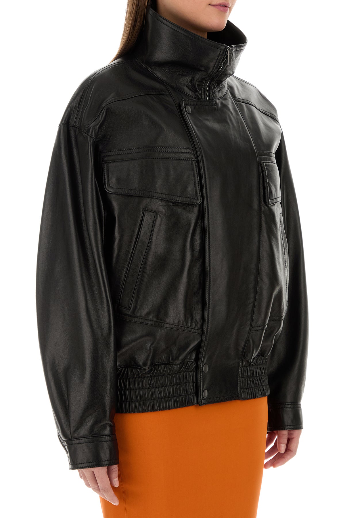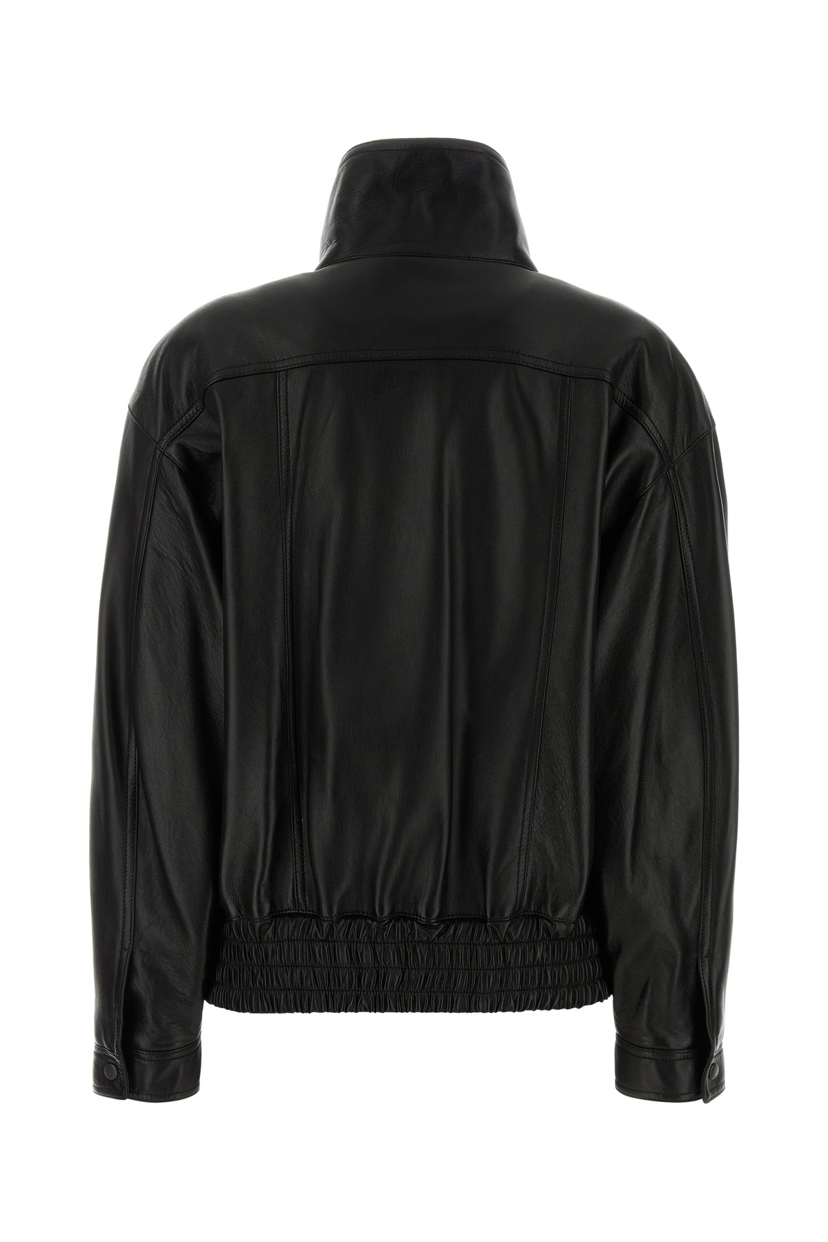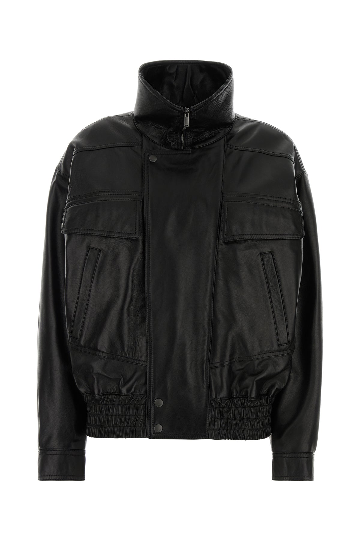 Jacket realized in lamb leather characterized by high collar.