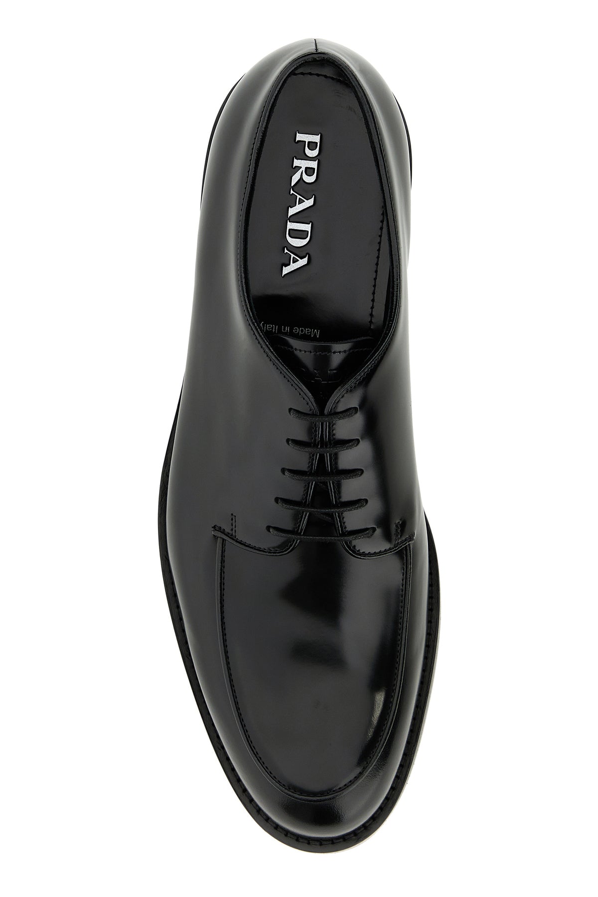 Lace-up shoes realized in polished-finish leather characterized by embossed logo on the tongue.