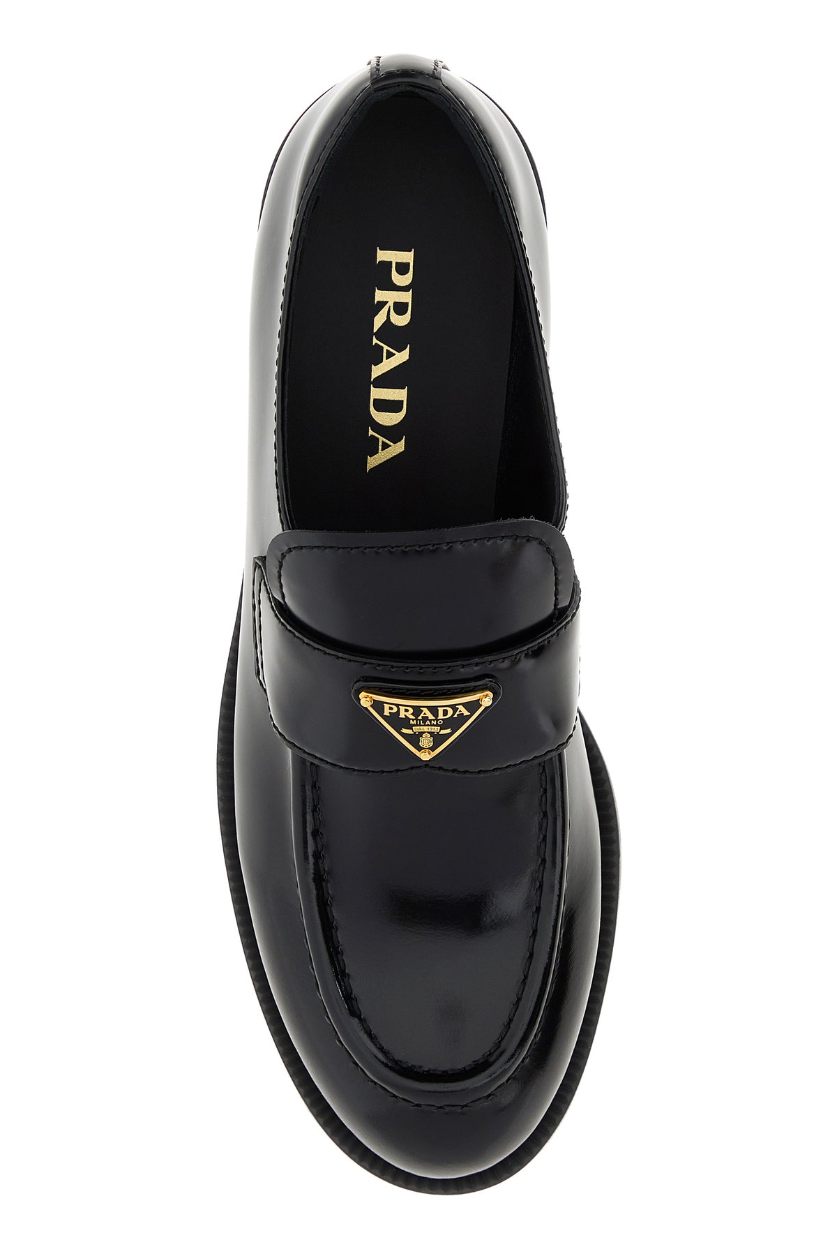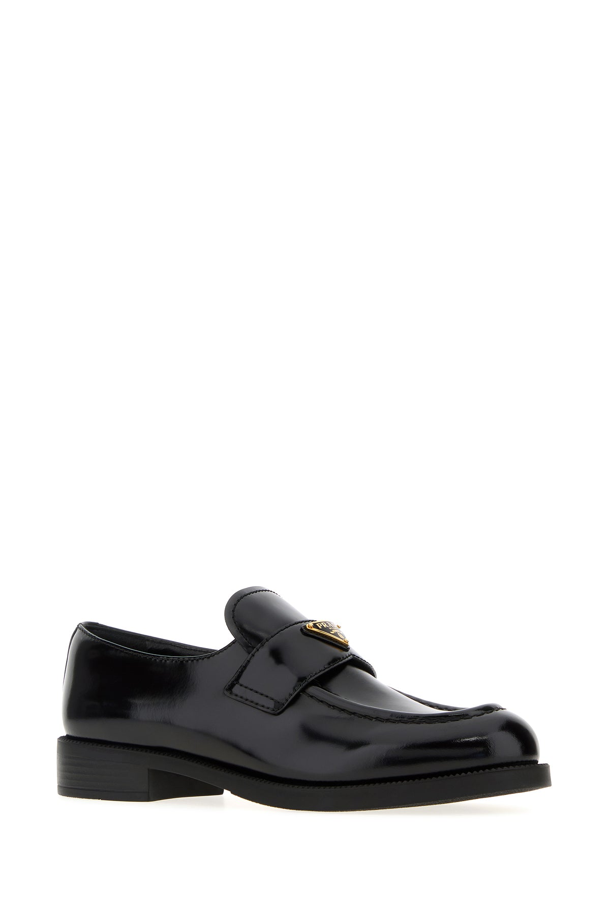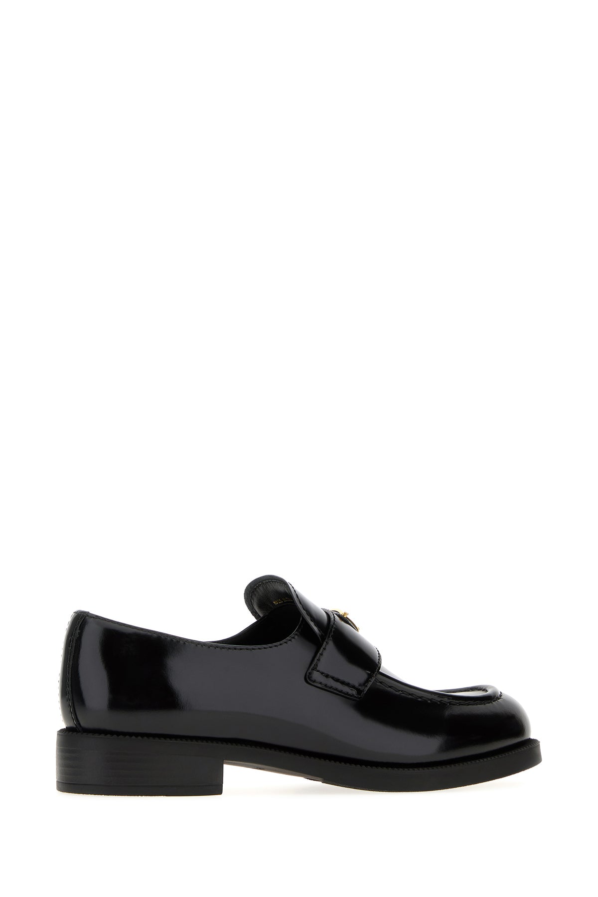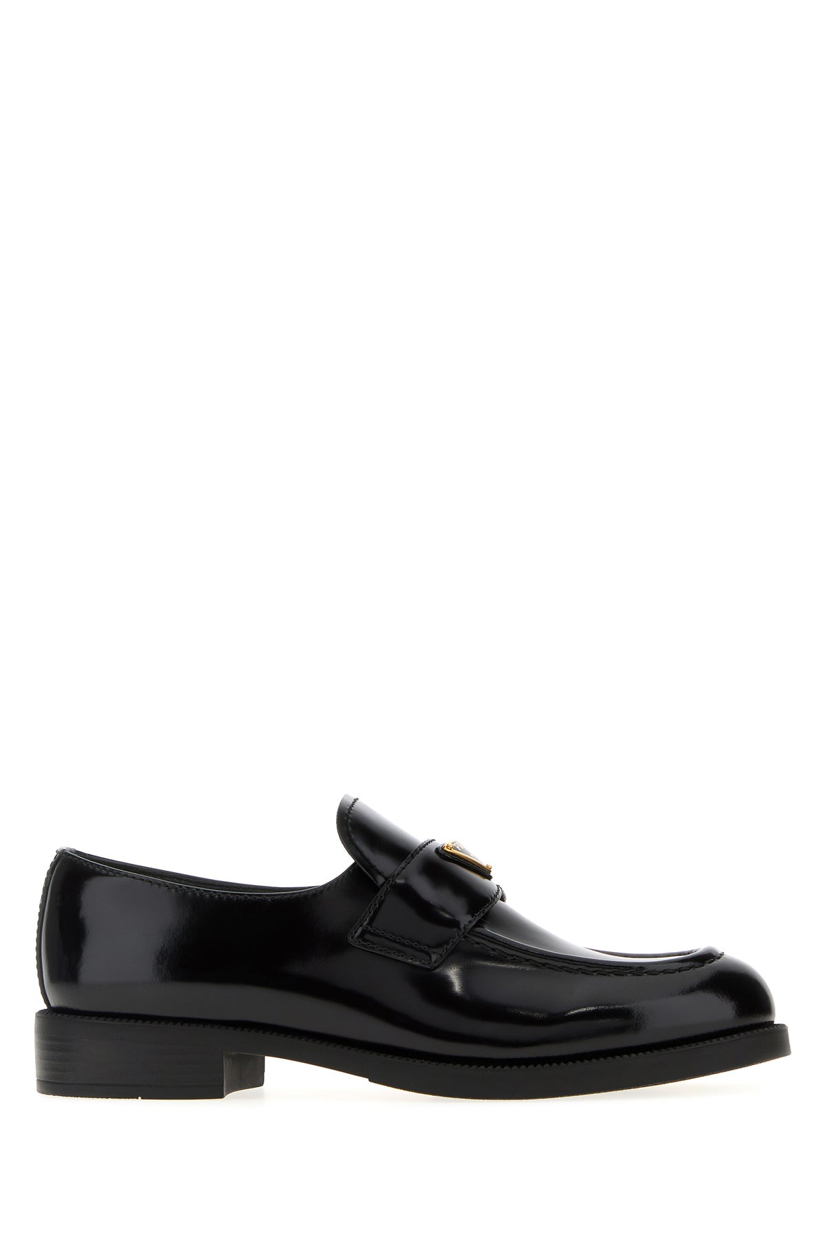 Loafers realized in polished-finish calf leather enriched by metal iconic logoed triangle on the vamp.