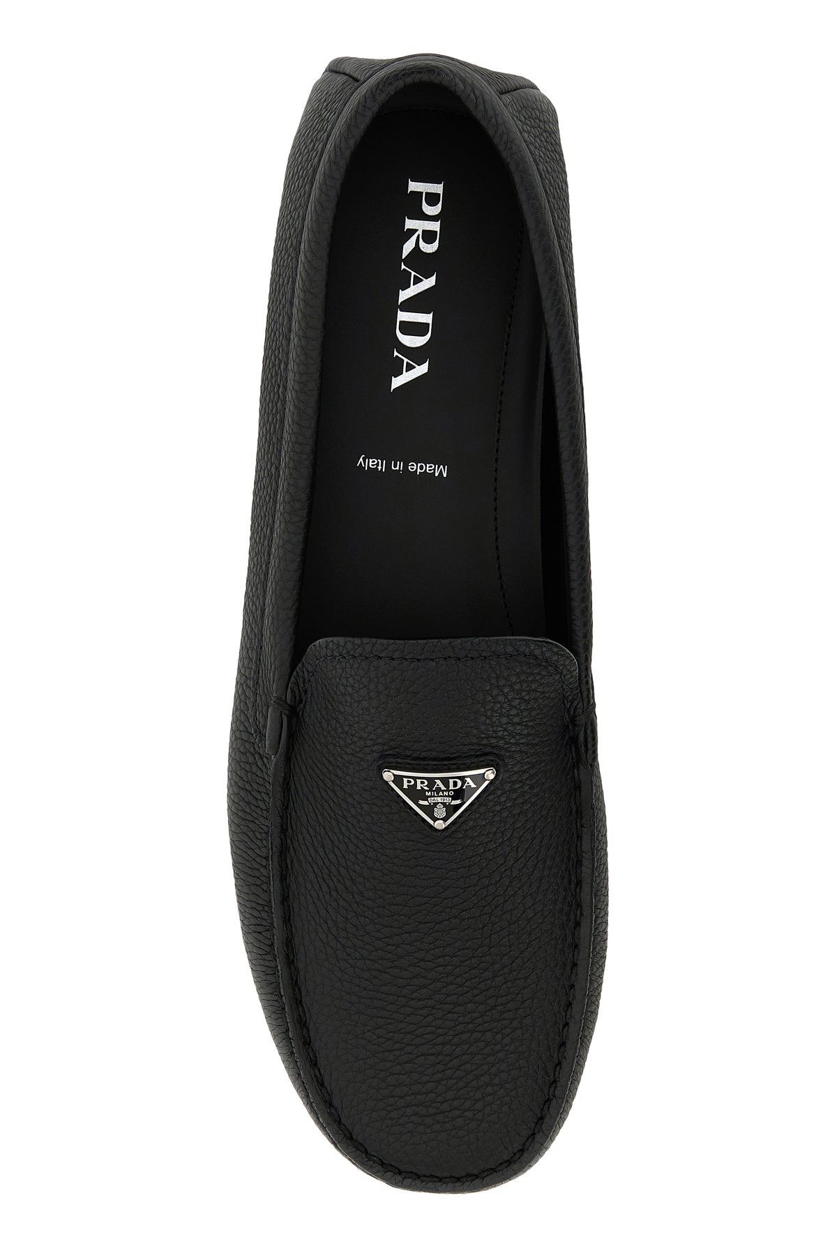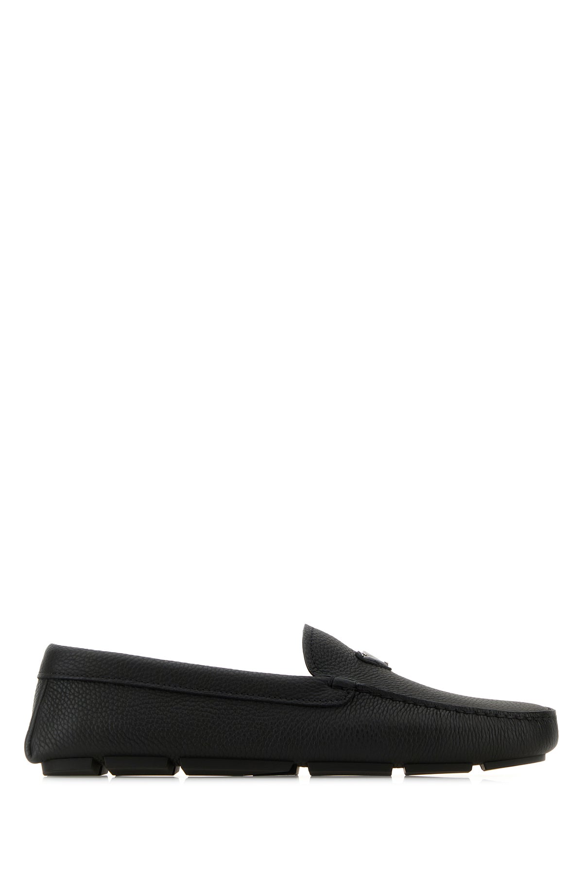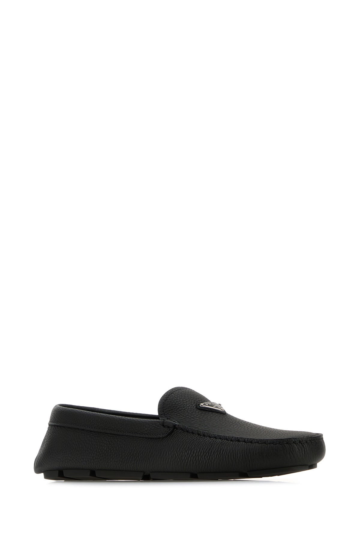 Loafers realized in deer leather enriched by iconic logoed metal triangle on the vamp.
