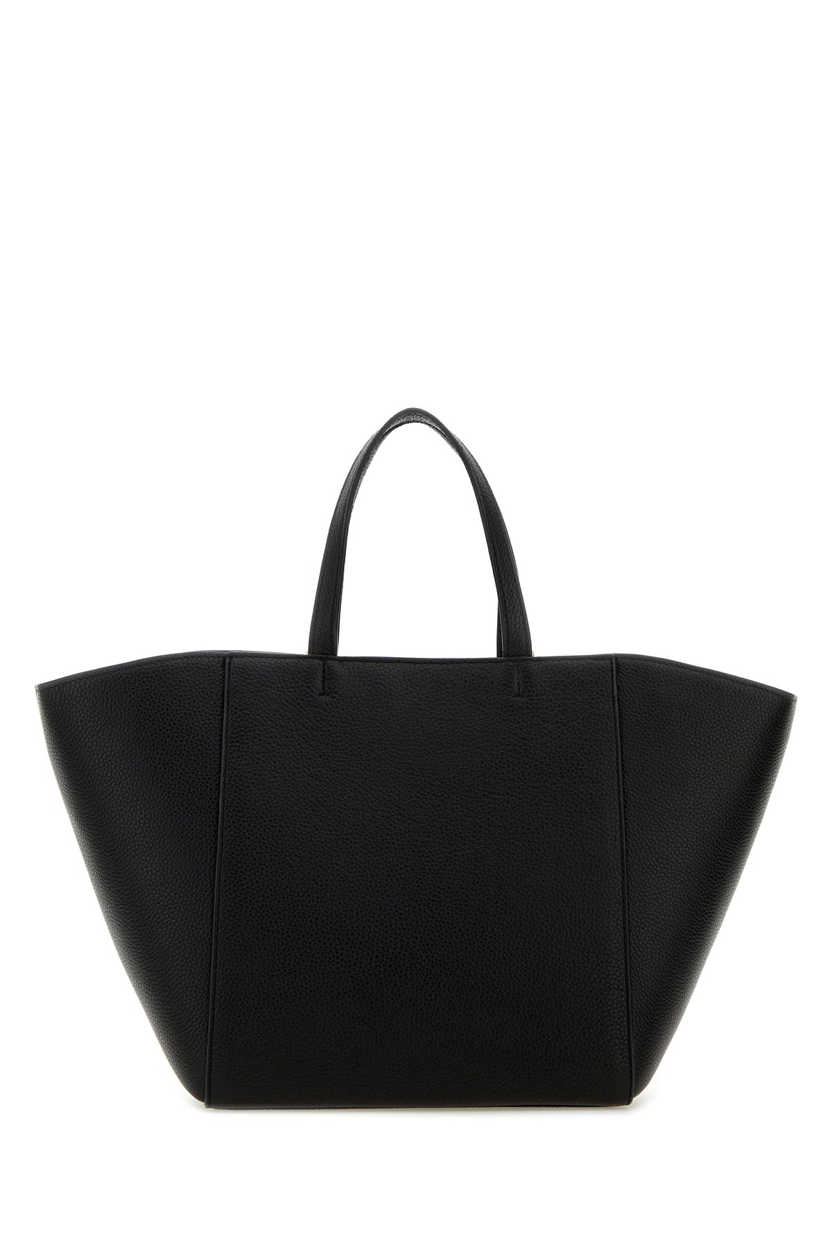 Handbag realized in pebble leather enriched by tonal leather logoed patch at the front.