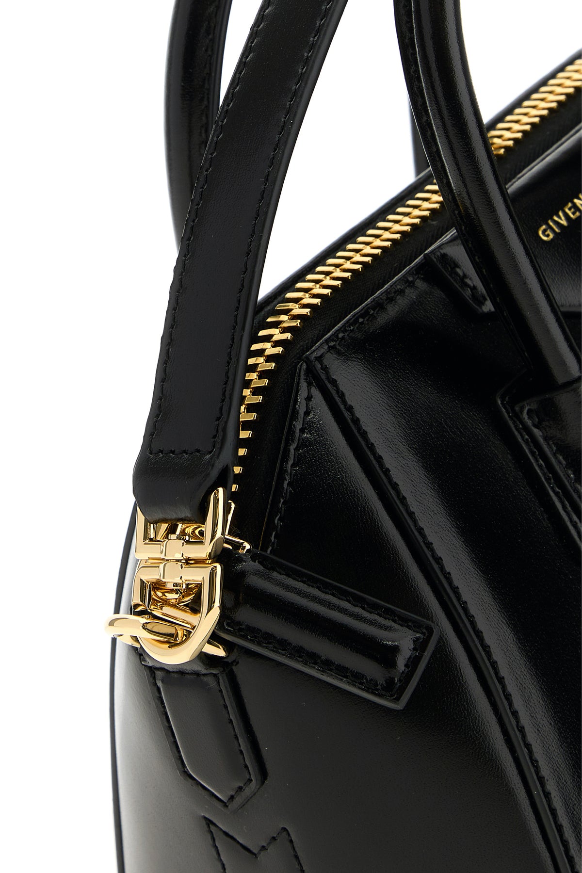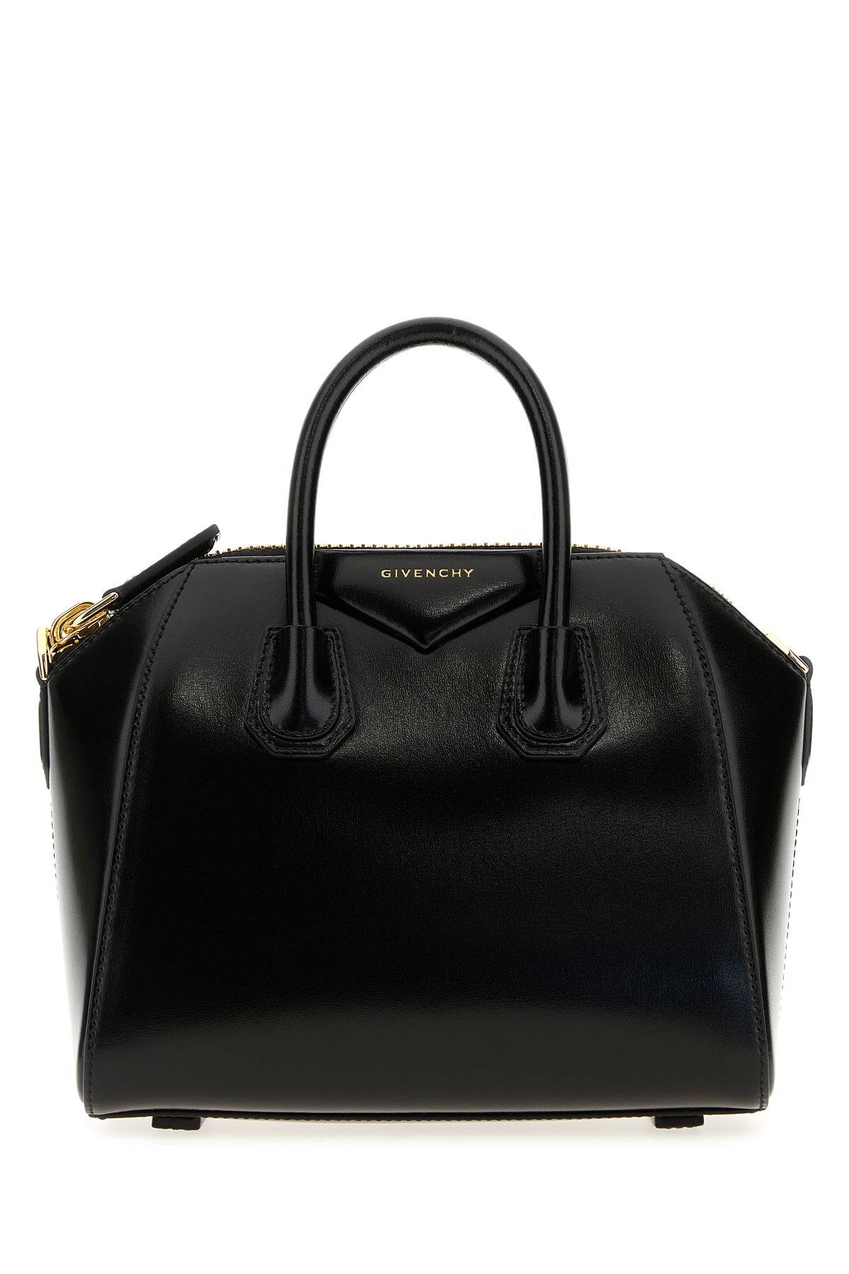Handbag realized in smooth calf leather characterized by contrasting printed logo at the front.