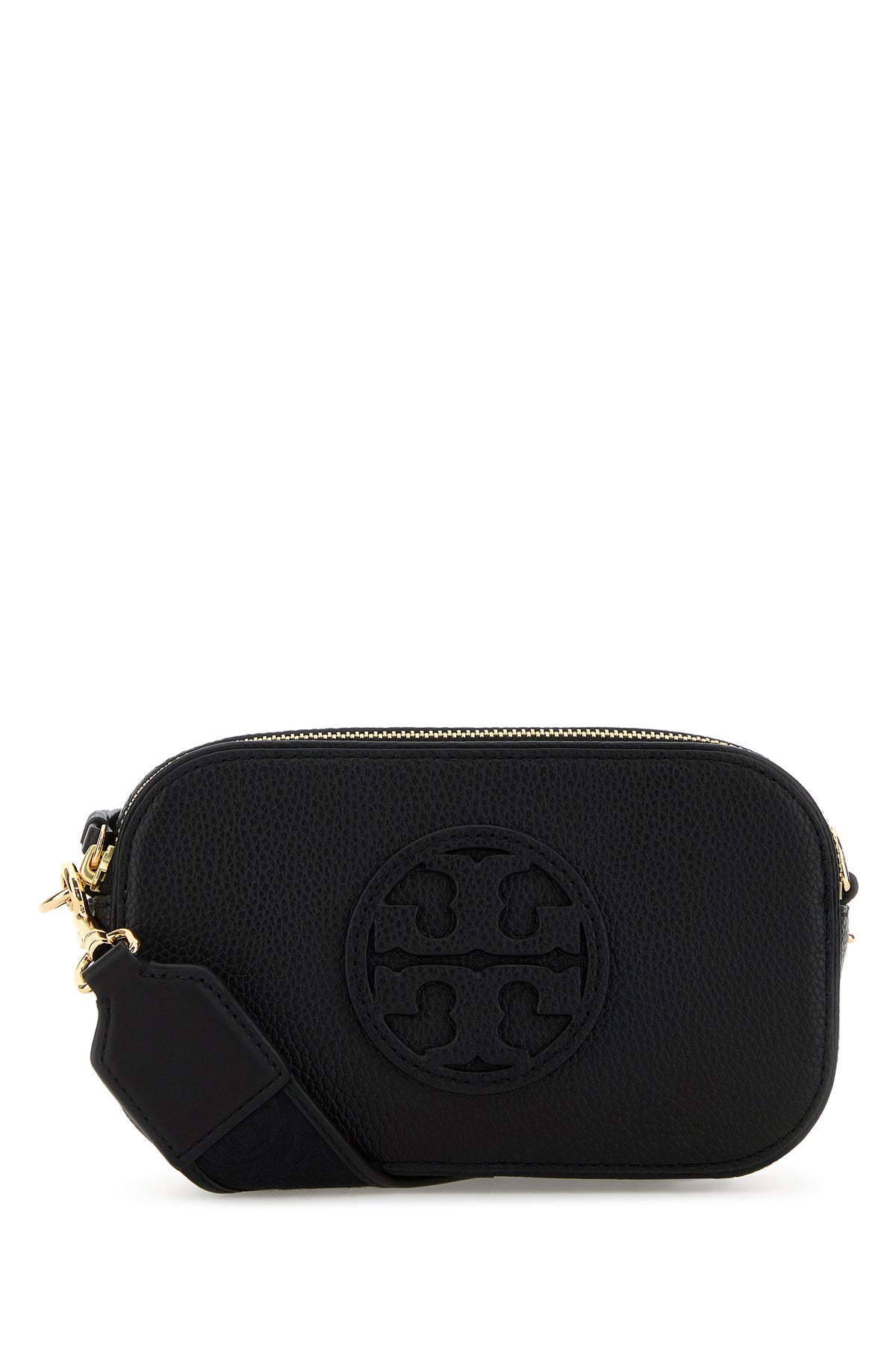 - Adjustable detachable tonal leather and logoed fabric shoulder strap