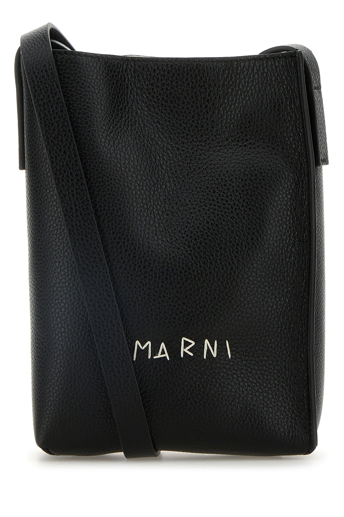 Crossbody bag realized in pebble bovine leather characterized by contrasting embroidered logo at the front.