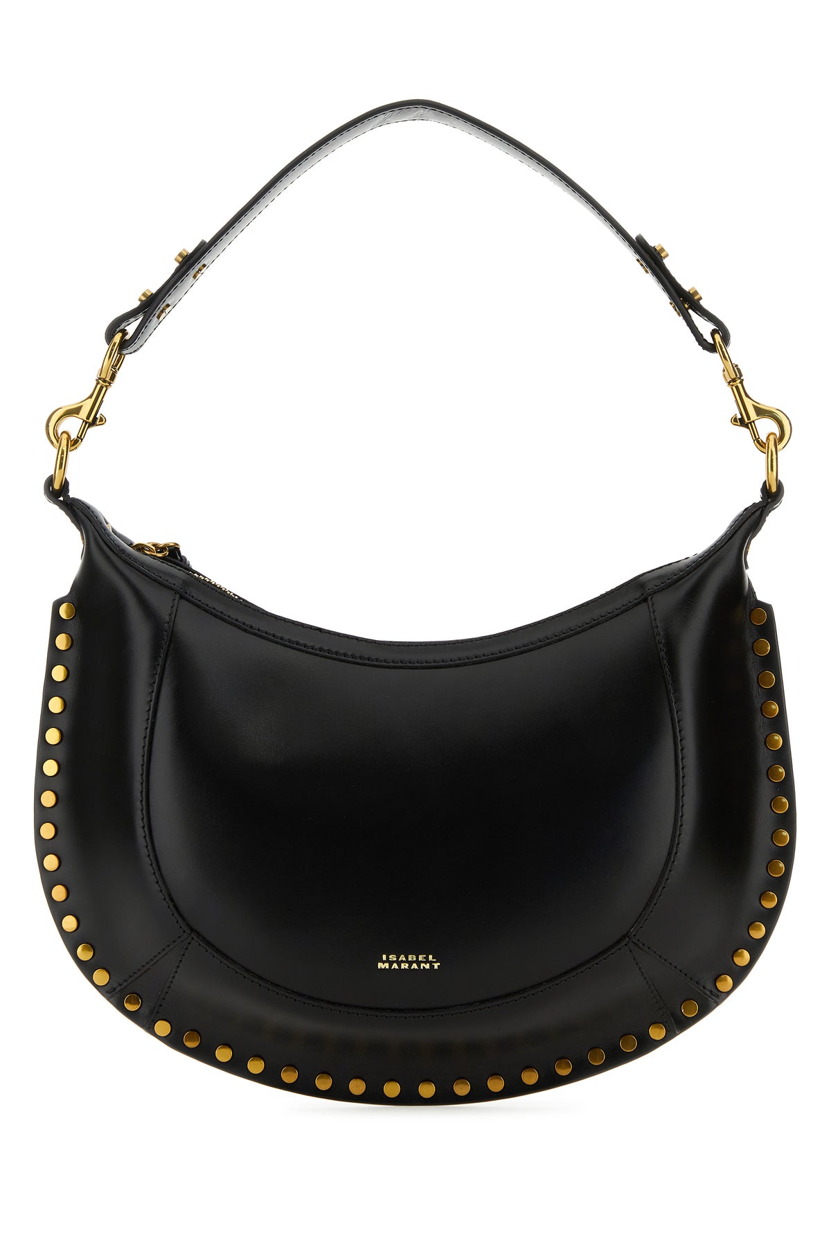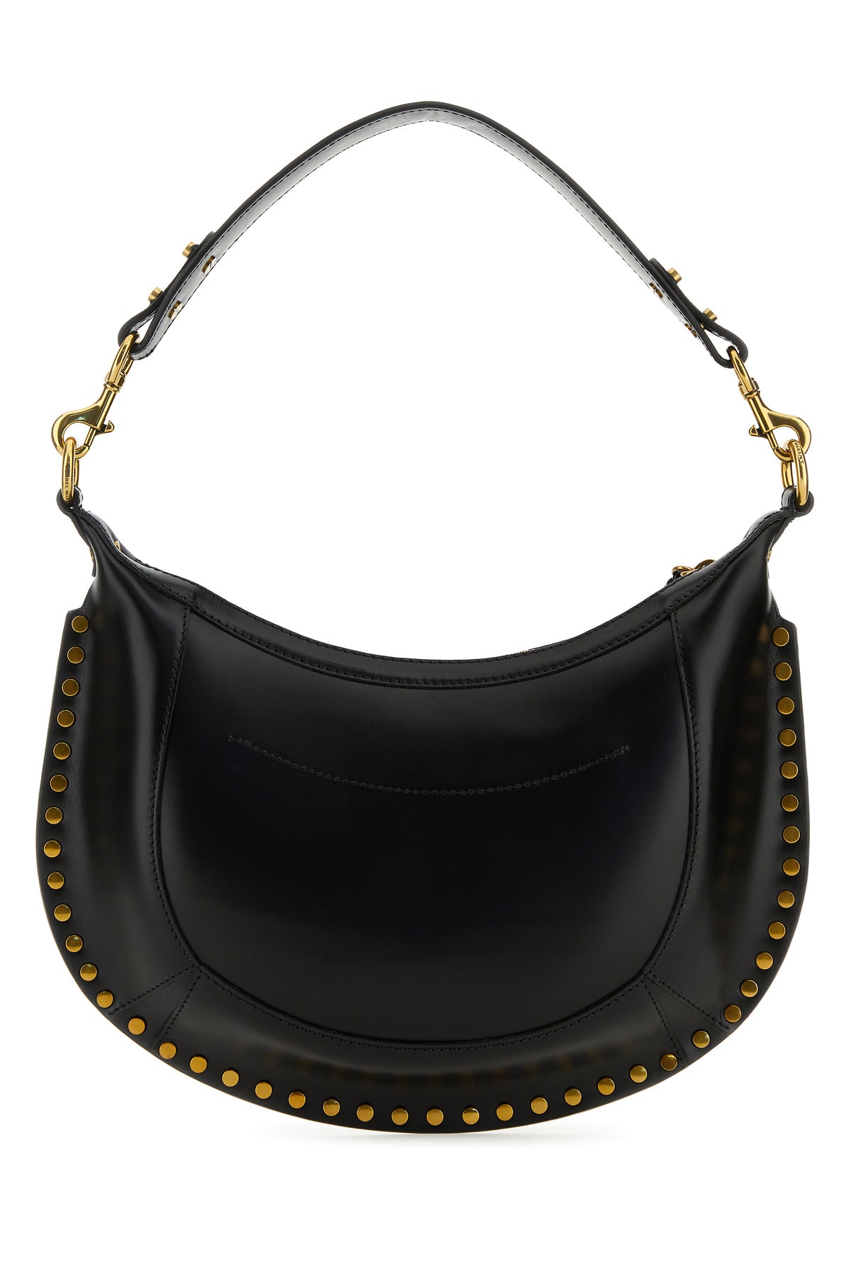 Handbag realized in smooth bovine leather characterized by contrasting printed logo at the front enriched by studs on the trimmings.
