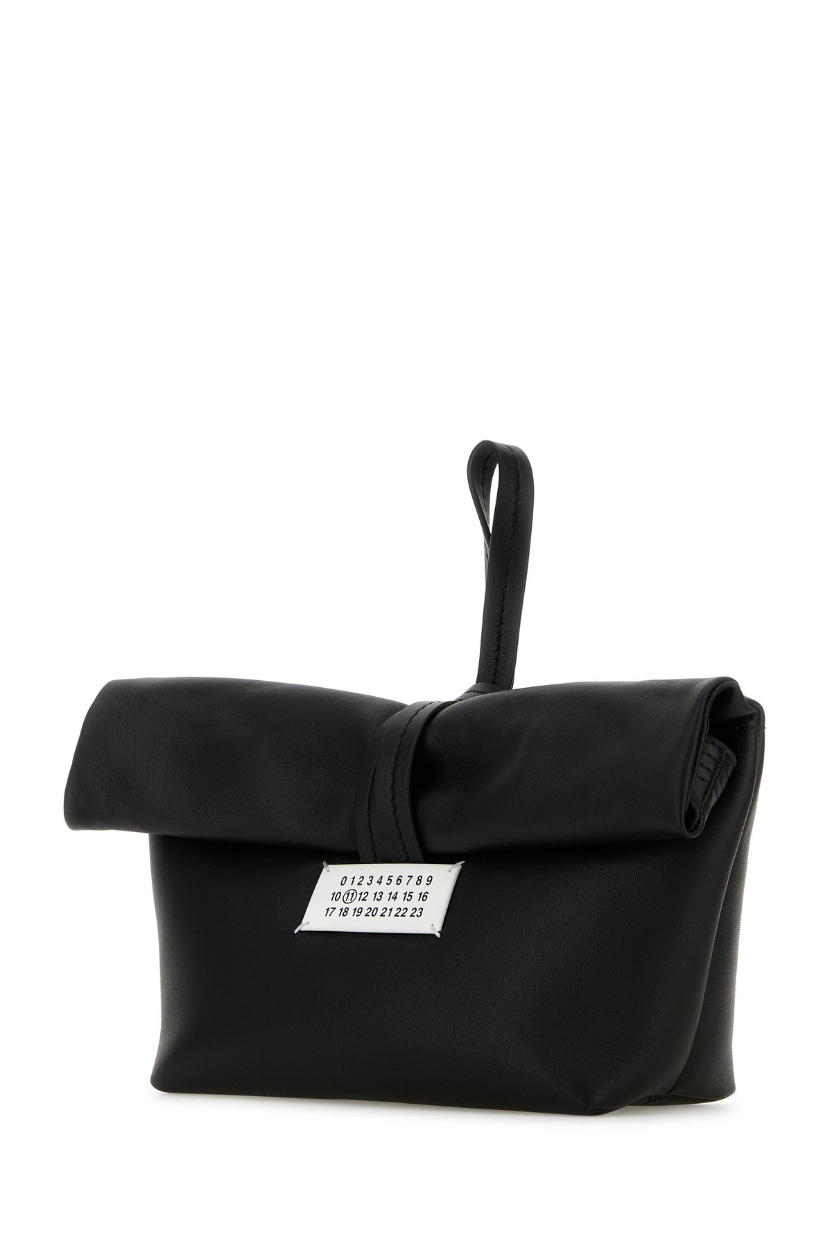 Black leather Paper Bag clutch