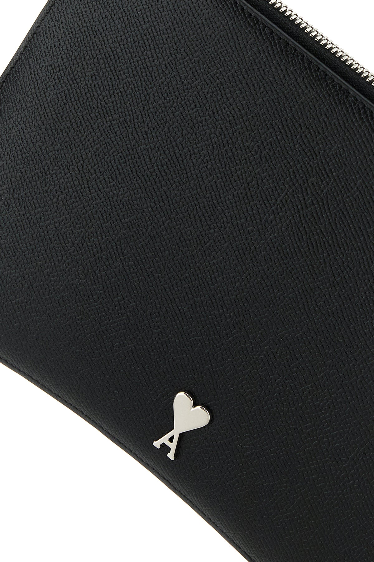 Pouch realized in pebble leather enriched by metal Ami De Coeur detail at the front.