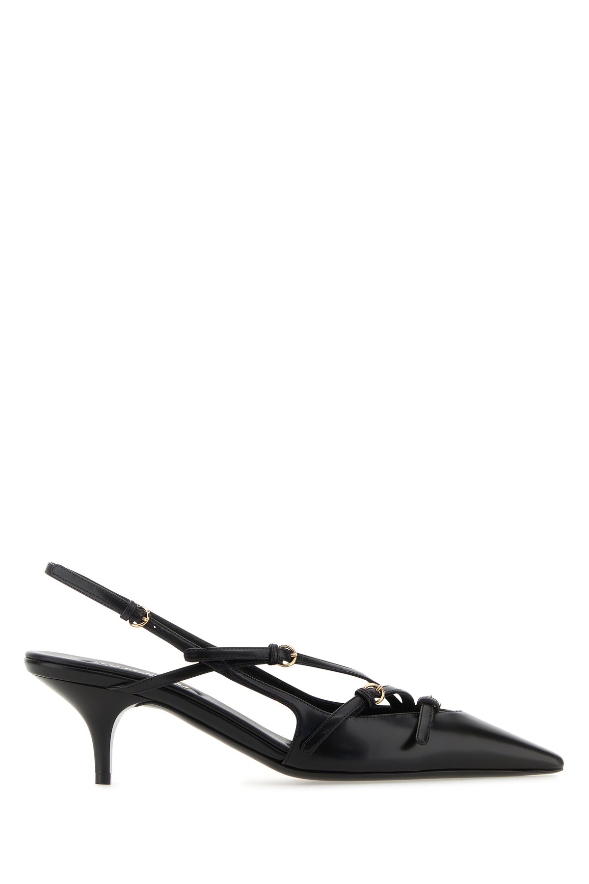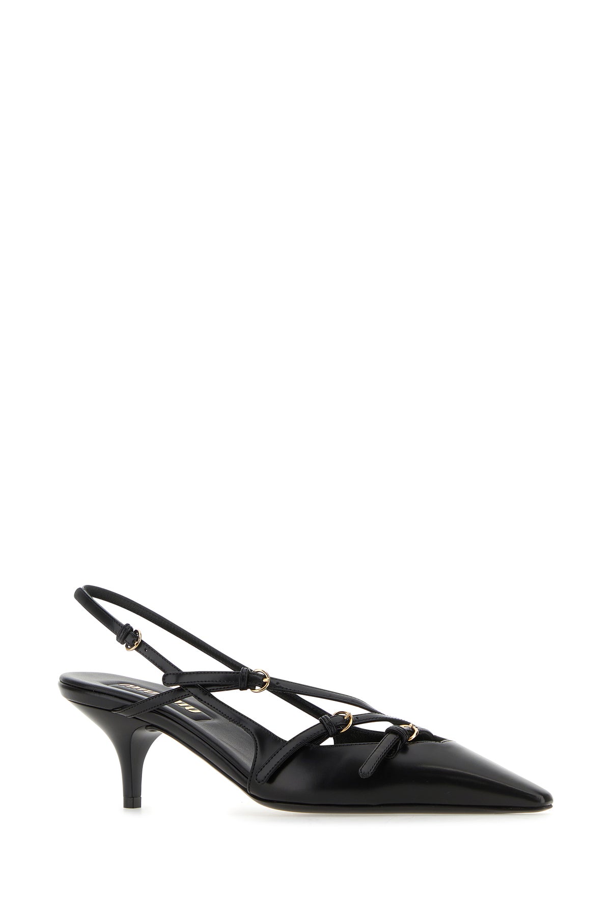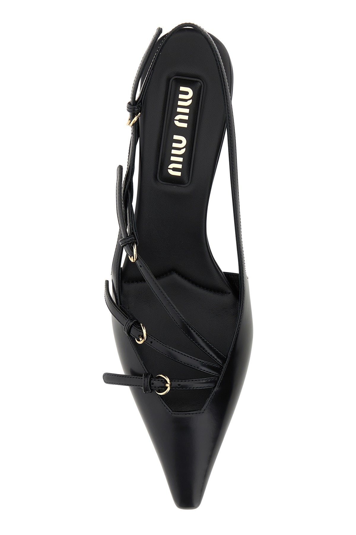 Slingback realized in smooth leather from a polished finish characterized by decorative straps on the instep.