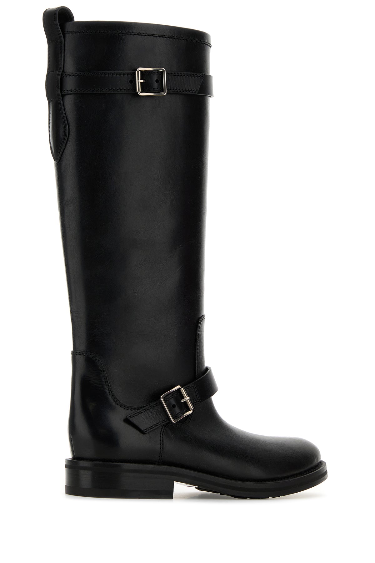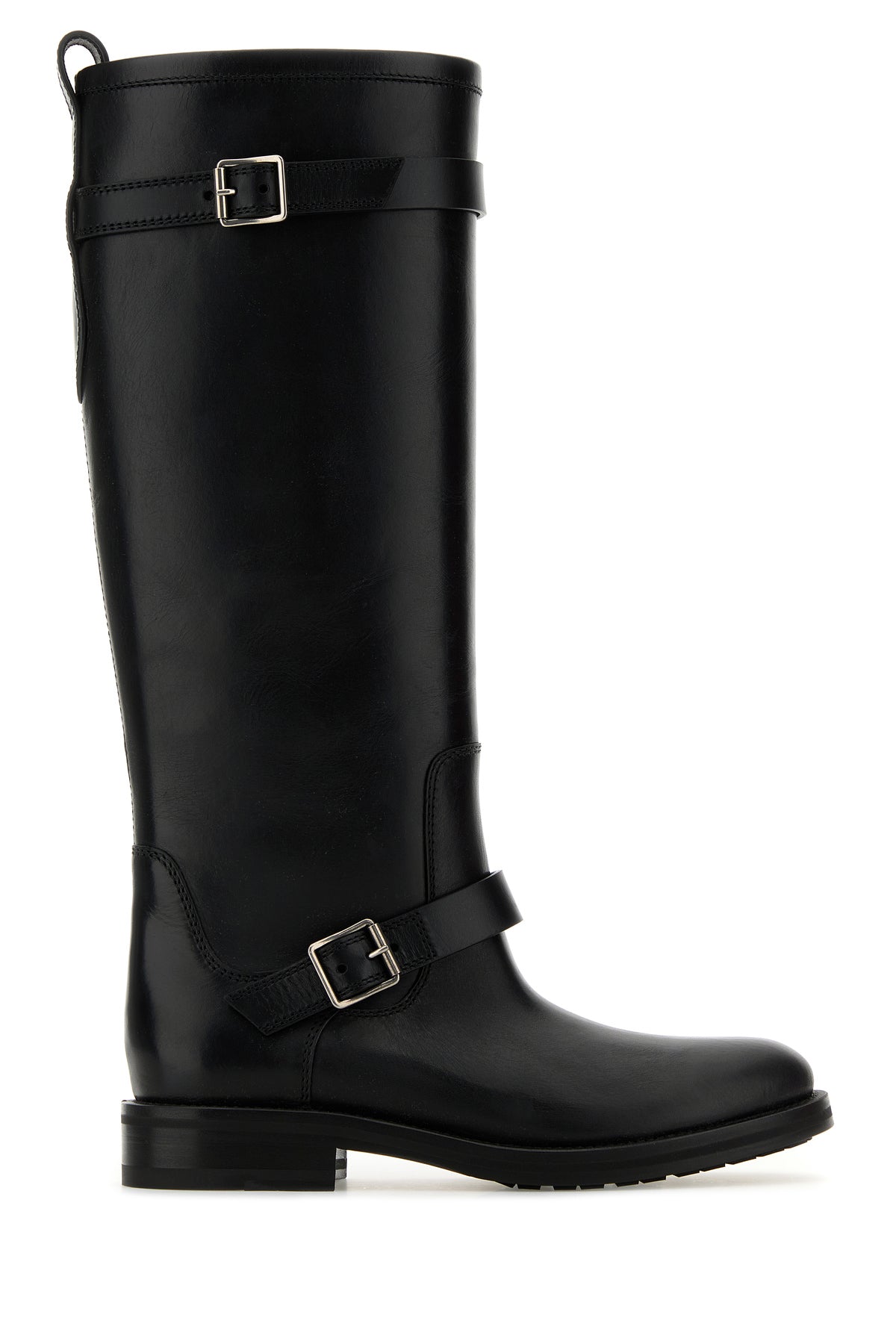 Boots realized in smooth calf leather enriched by adjustable strap with metal buckle at the top and at the front.