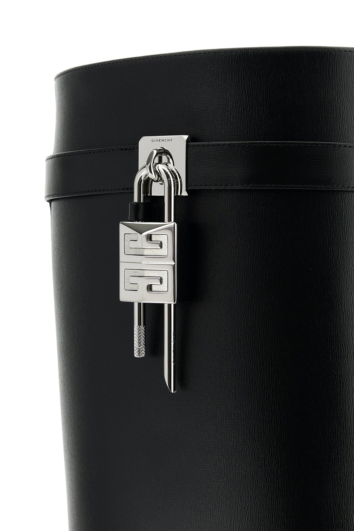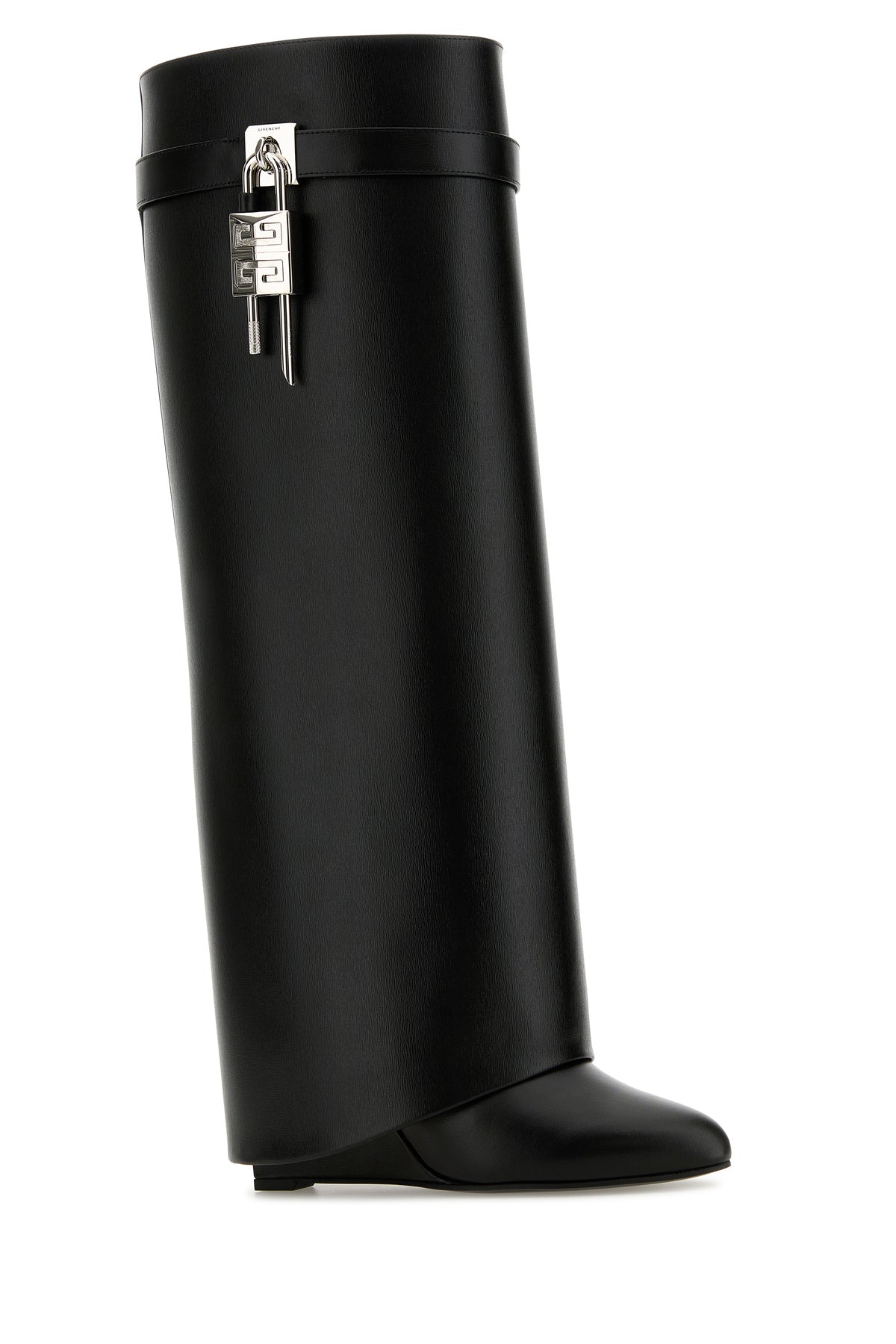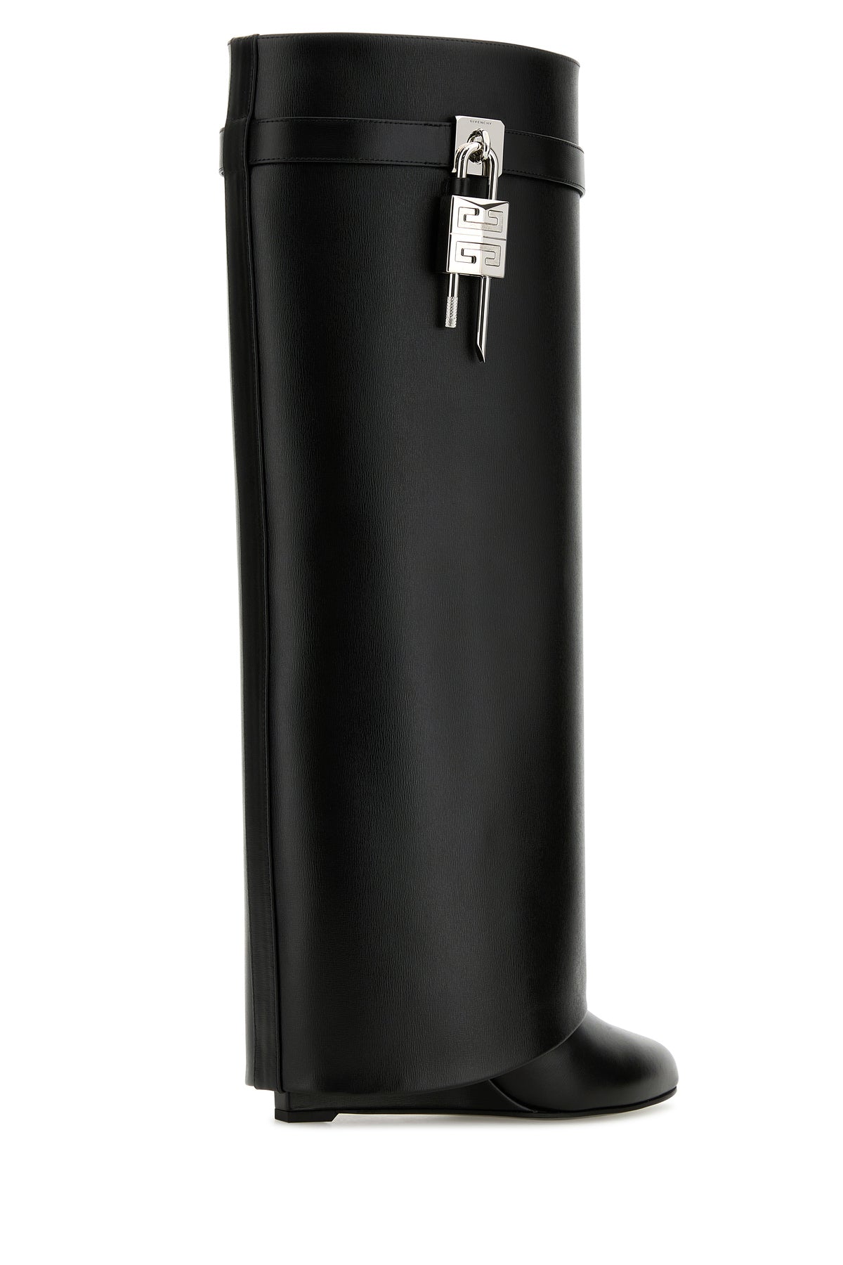 Boots realized in smooth calf leather characterized by folded leg with decorative tonal leather strap enriched by metal 4G Lock lock and metal GIVENCHY lock on the sides.
