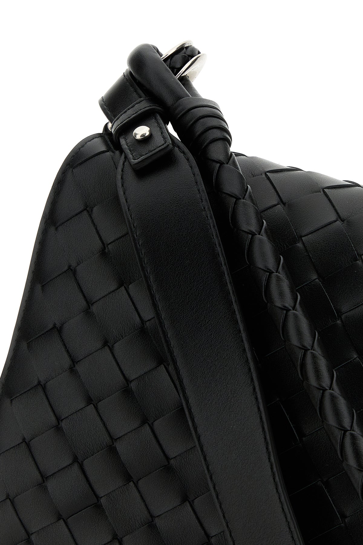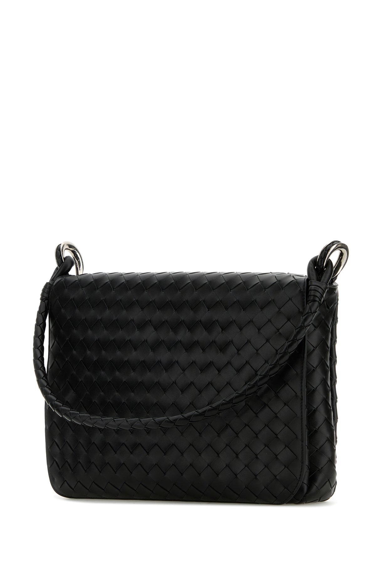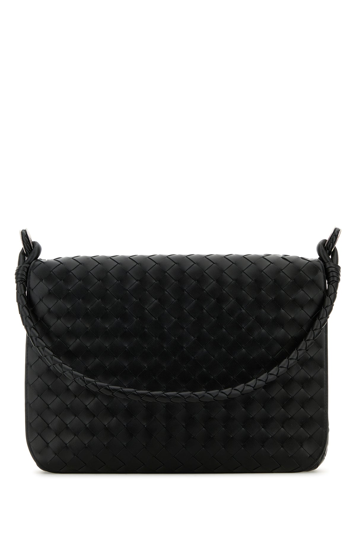 Shoulder bag realized in calf leather characterized by iconic Intrecciato motif on the entire surface.
